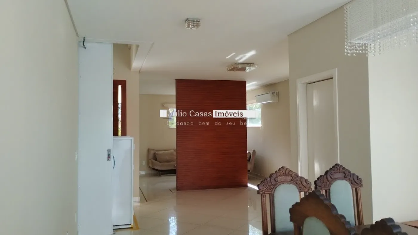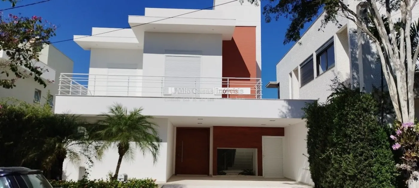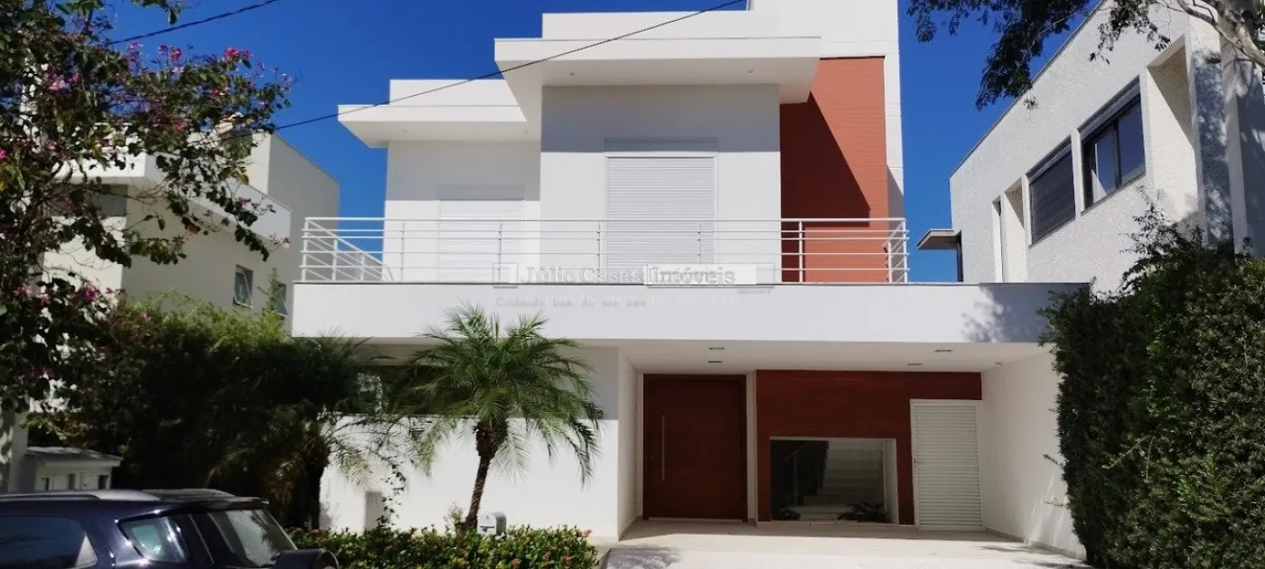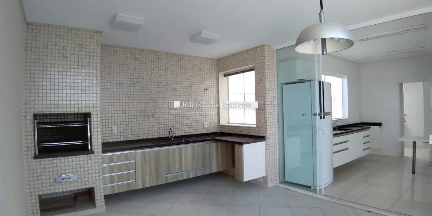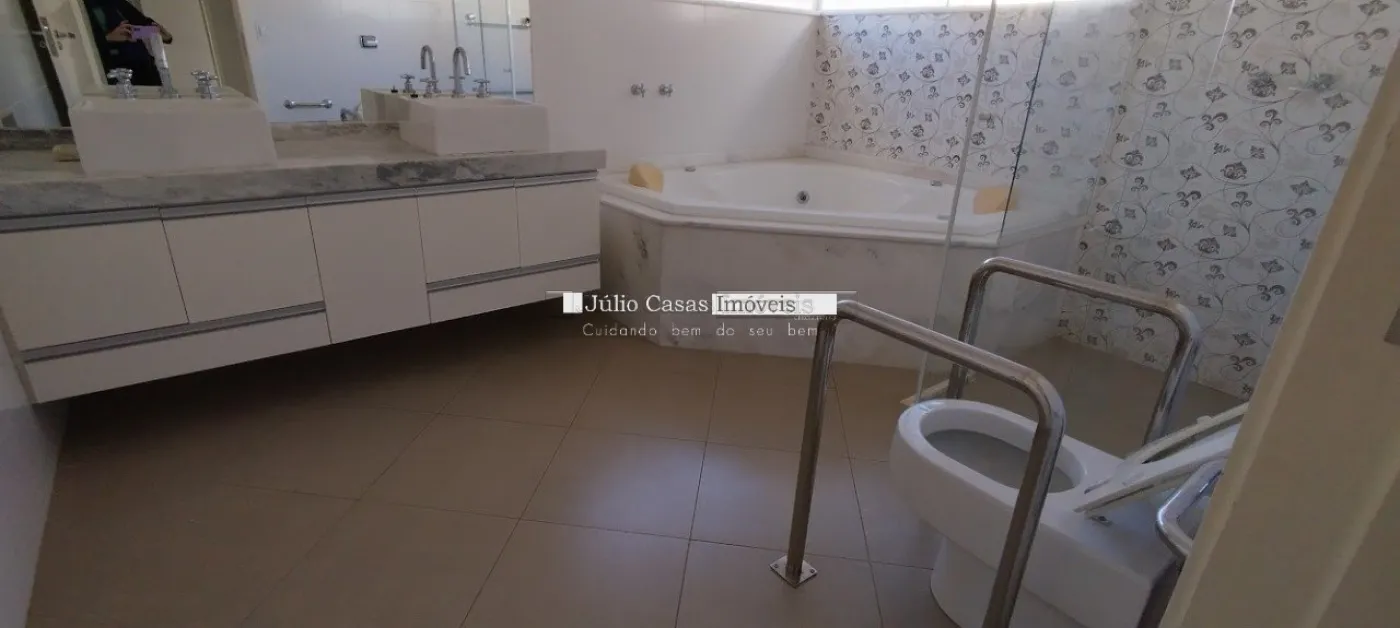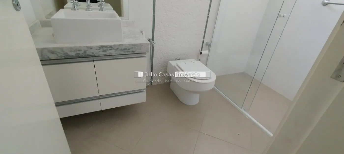 Sobrado em condomínio de alto padrão, com uma ampla sala de estar e uma cozinha integrada à área gourmet, ideal para momentos de confraternização. Conta com uma despensa, lavabo e um banheiro que atende a área gourmet. No piso superior, há três suítes, incluindo uma suíte máster com banheira, duas cubas, box de vidro temperado e armário planejado. Todos os banheiros possuem gabinetes.
