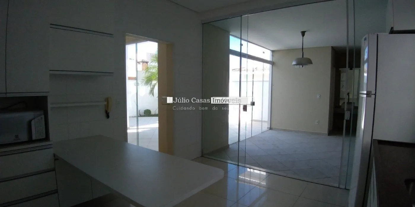 A cozinha e a área gourmet são equipadas com armários planejados e uma bancada em porcelanato. O quintal espaçoso oferece um ótimo espaço ao ar livre. A escada possui um guarda-corpo de vidro temperado, proporcionando segurança e sofisticação. Além disso, a casa foi adaptada para acessibilidade, com a instalação de um elevador e barras de apoio, que podem ser removidos conforme a necessidade.