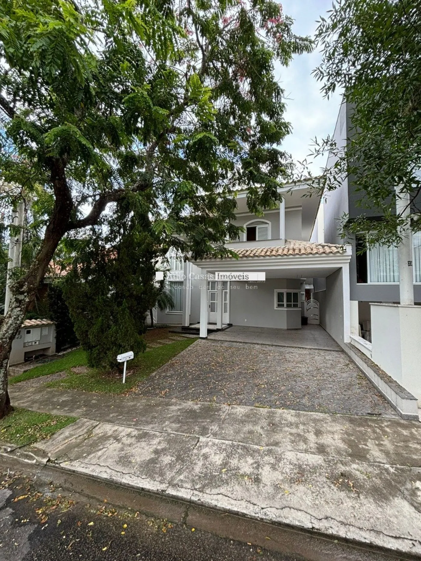 A garagem tem capacidade para 4 veículos, sendo 2 vagas cobertas. O jardim na frente do imóvel adiciona um toque de verde e beleza ao ambiente. Este sobrado é perfeito para quem busca um lar moderno, confortável e sofisticado.