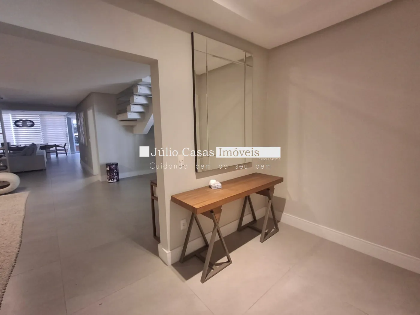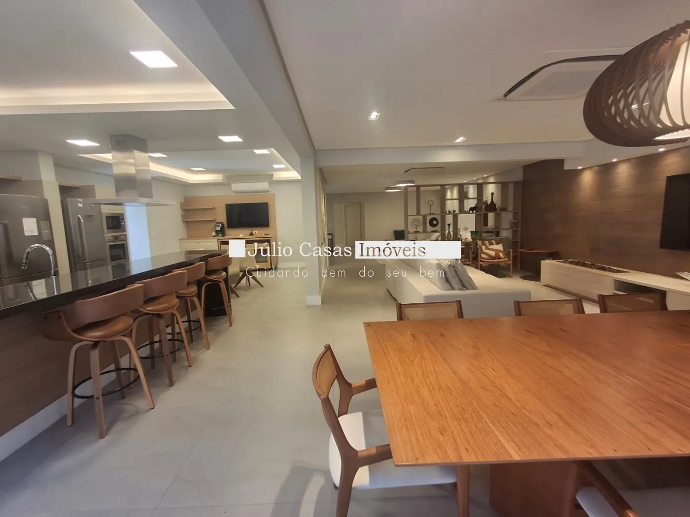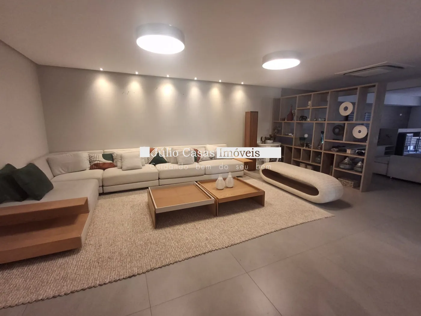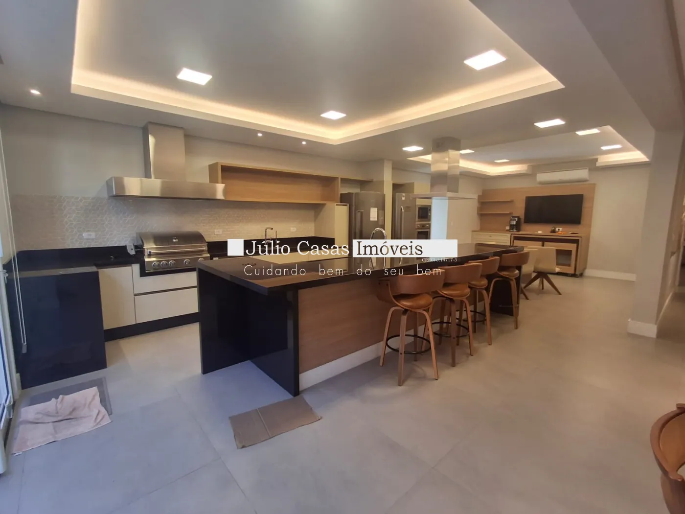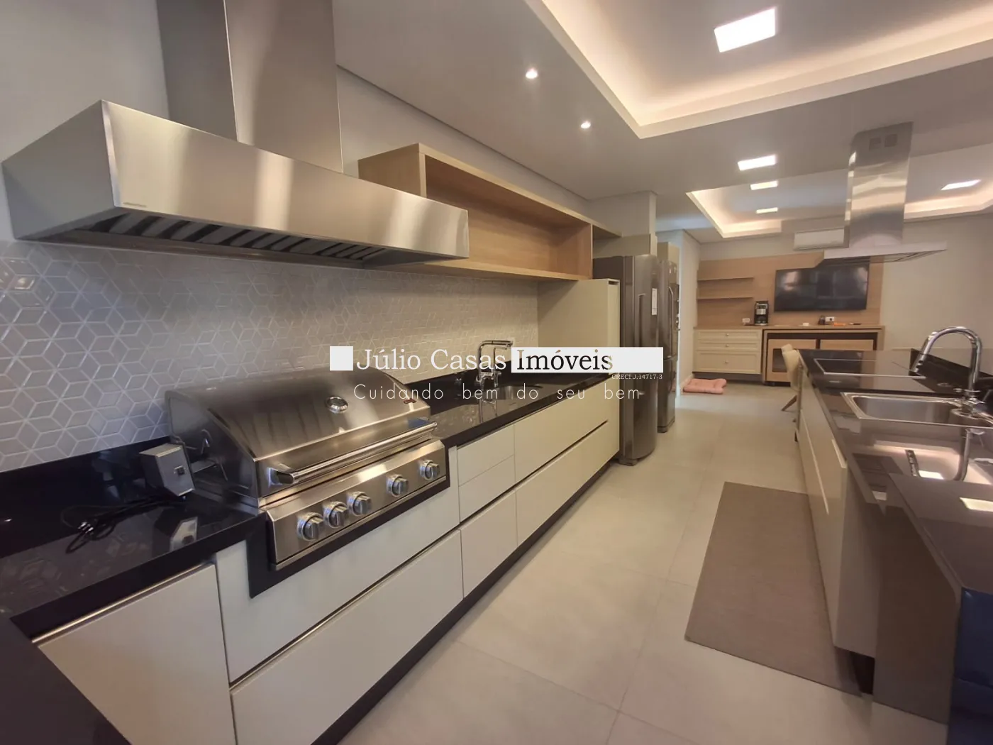 No pavimento inferior, o imóvel dispõe de amplos e integrados ambientes, com sala de estar, sala de TV, escritório, copa e uma cozinha totalmente equipada, harmoniosamente conectada às áreas sociais, proporcionando praticidade e requinte no dia a dia.