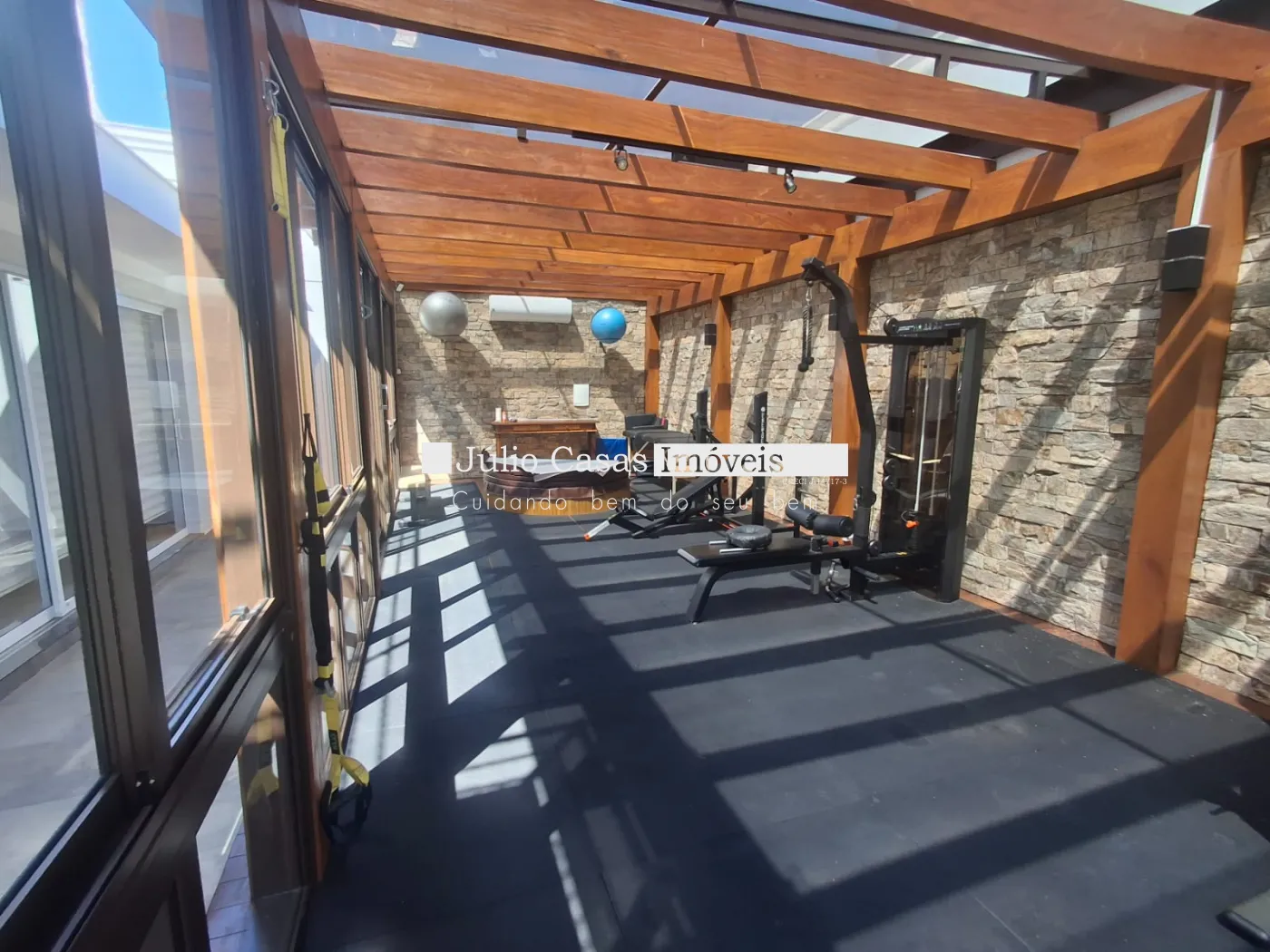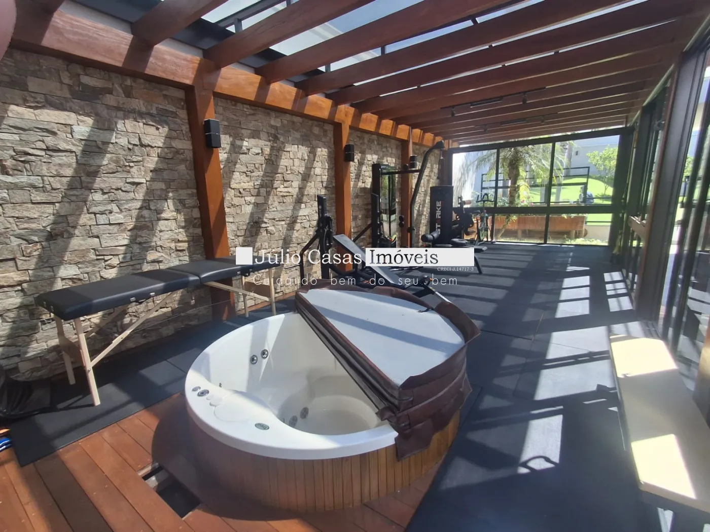 A área externa é um verdadeiro convite ao relaxamento, com um espaço coberto e climatizado de spa equipado com ofurô e academia já equipada, perfeito para momentos únicos de bem-estar.