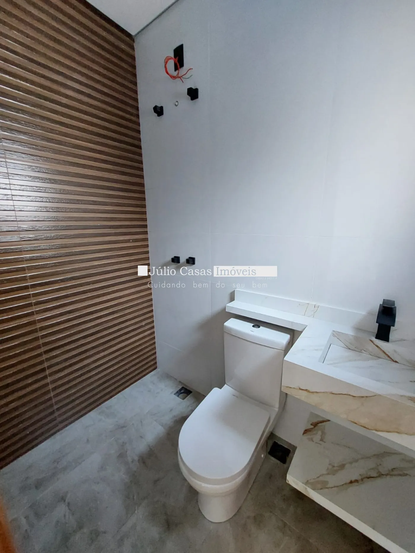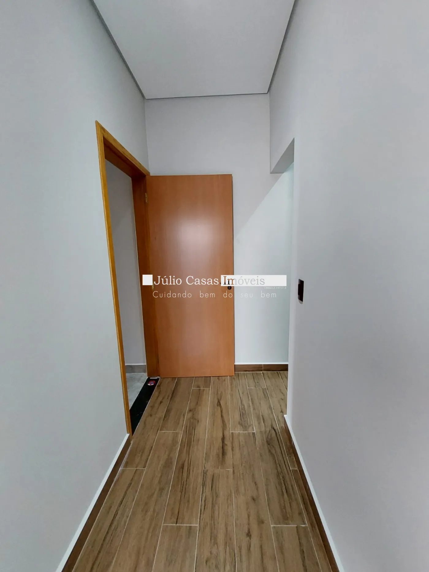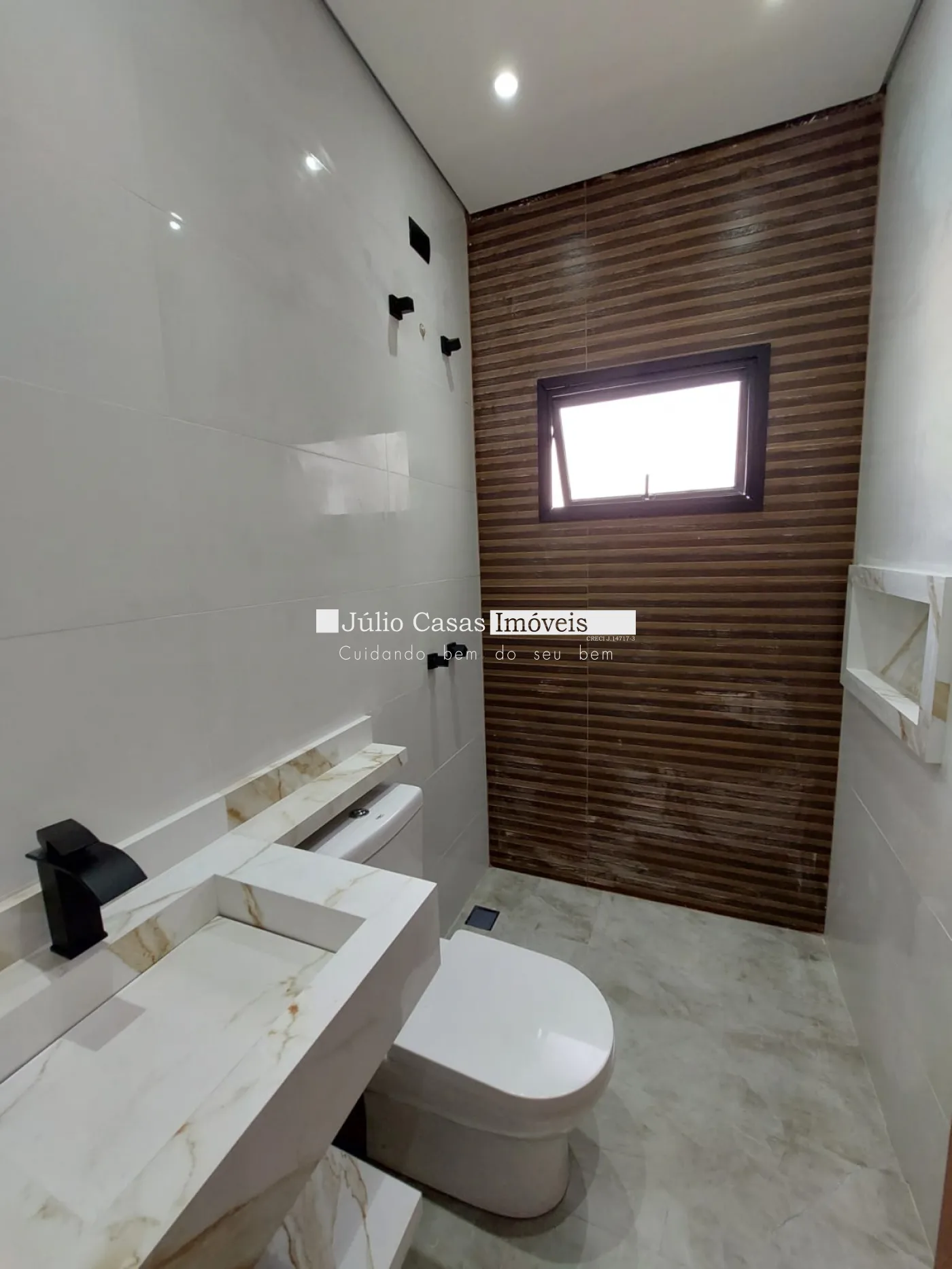O imóvel dispõe de três quartos, sendo um deles uma suíte com um banheiro que inclui nicho e pia com cuba esculpida, oferecendo conforto e estilo. As esquadrias de alumínio garantem durabilidade e segurança, enquanto a iluminação já está pronta para uso.