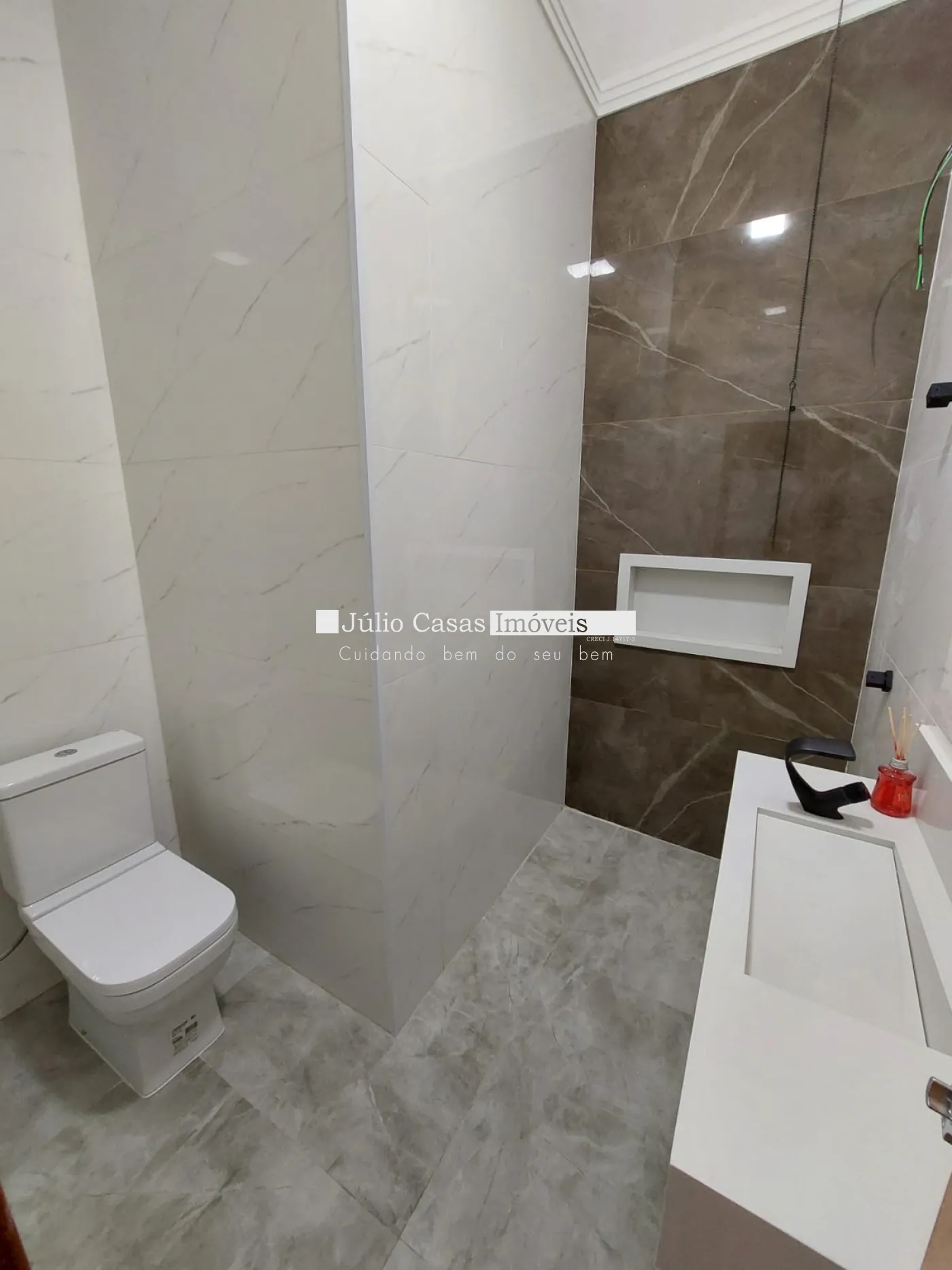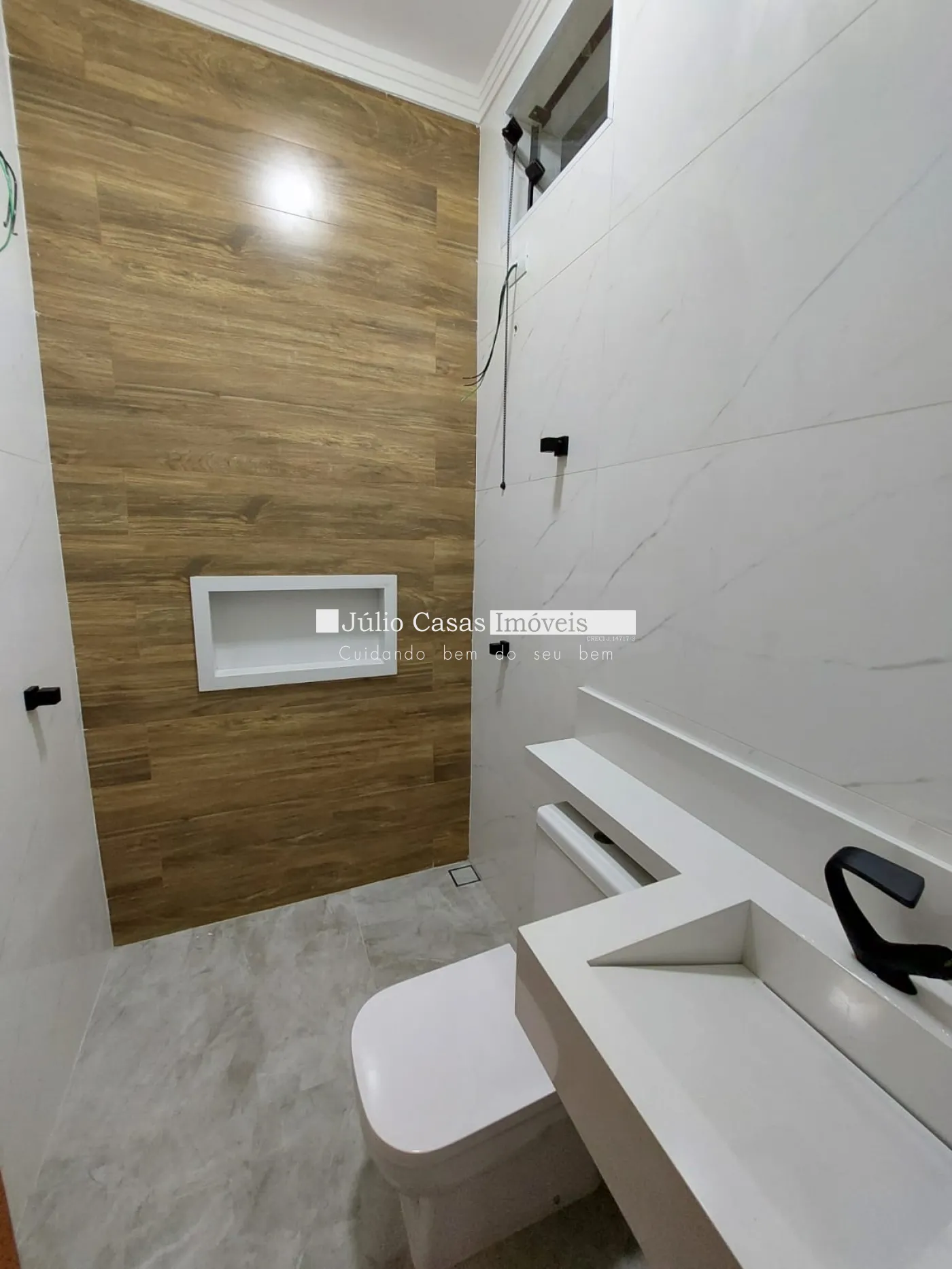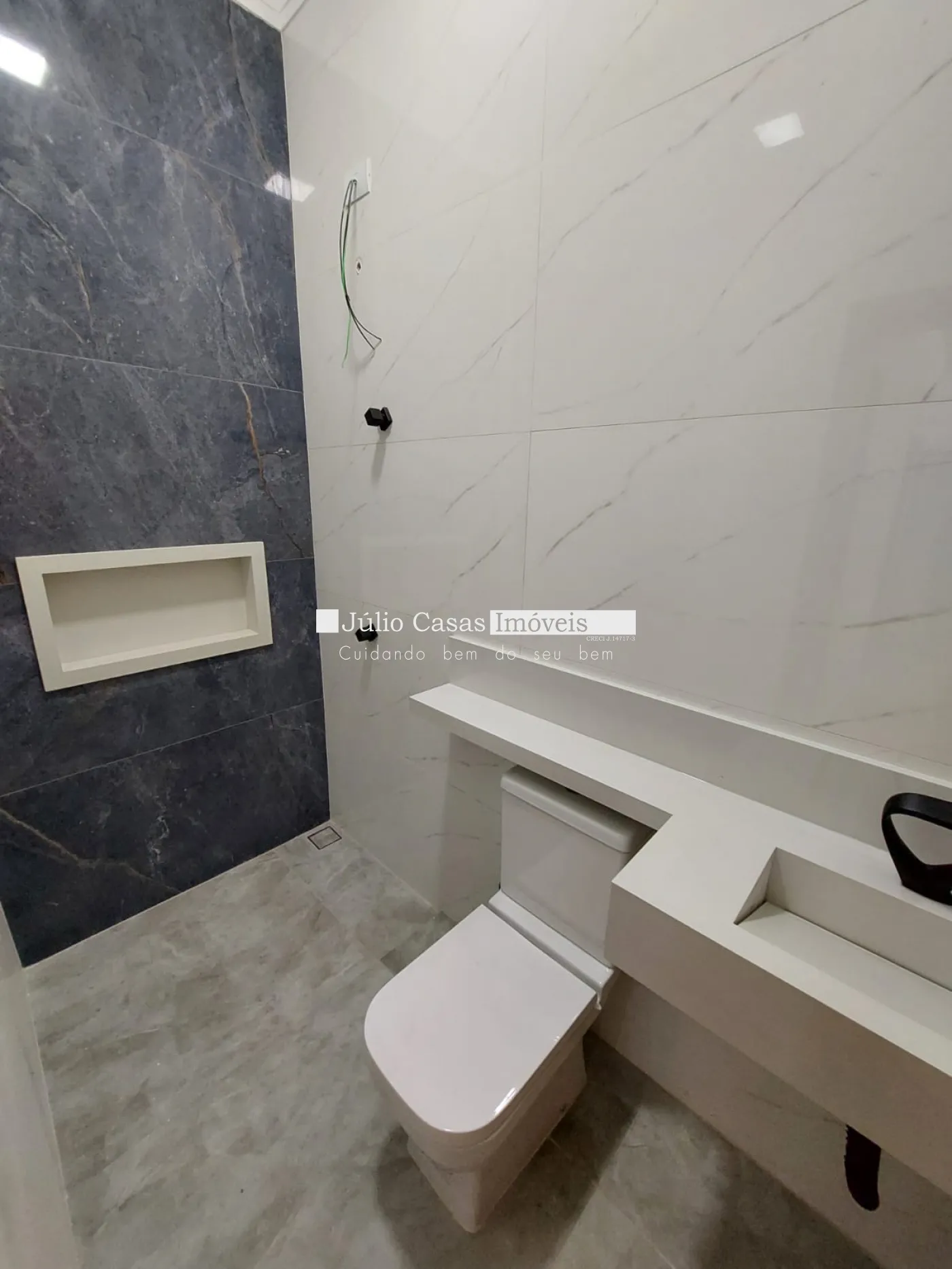 A residência possui 3 quartos, sendo 2 suítes, além de um banheiro social. Os banheiros apresentam pias e nichos em mármore branco, com torneiras aquecidas para maior conforto. Todos os ambientes já contam com pré-instalação para ar-condicionado e iluminação em LED.