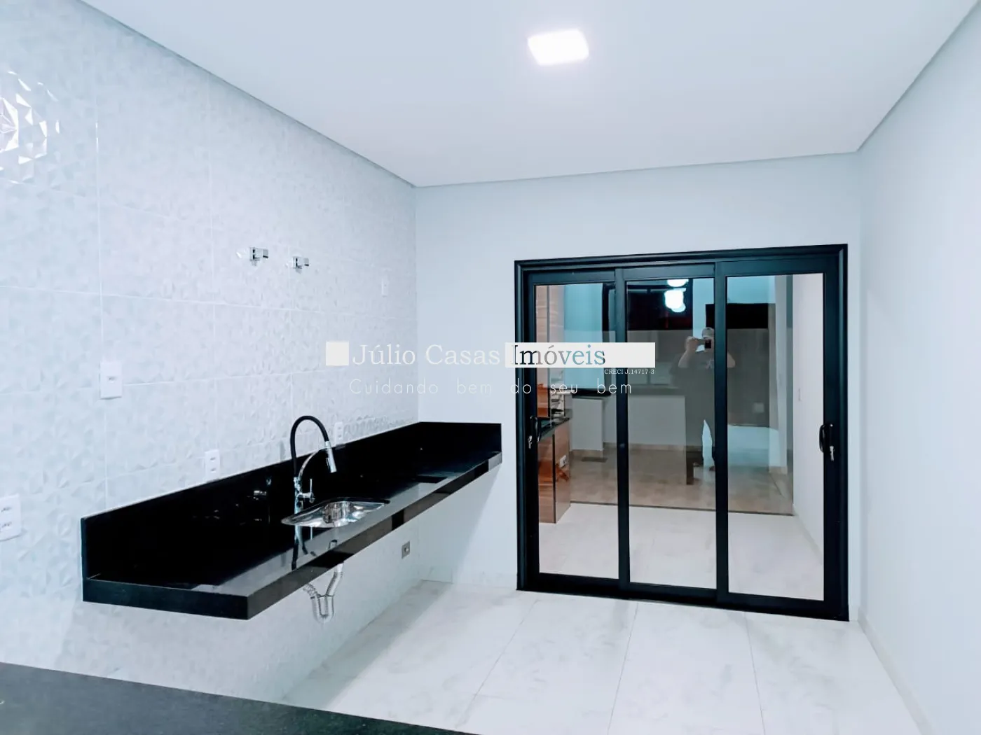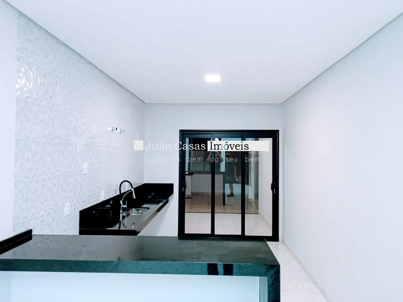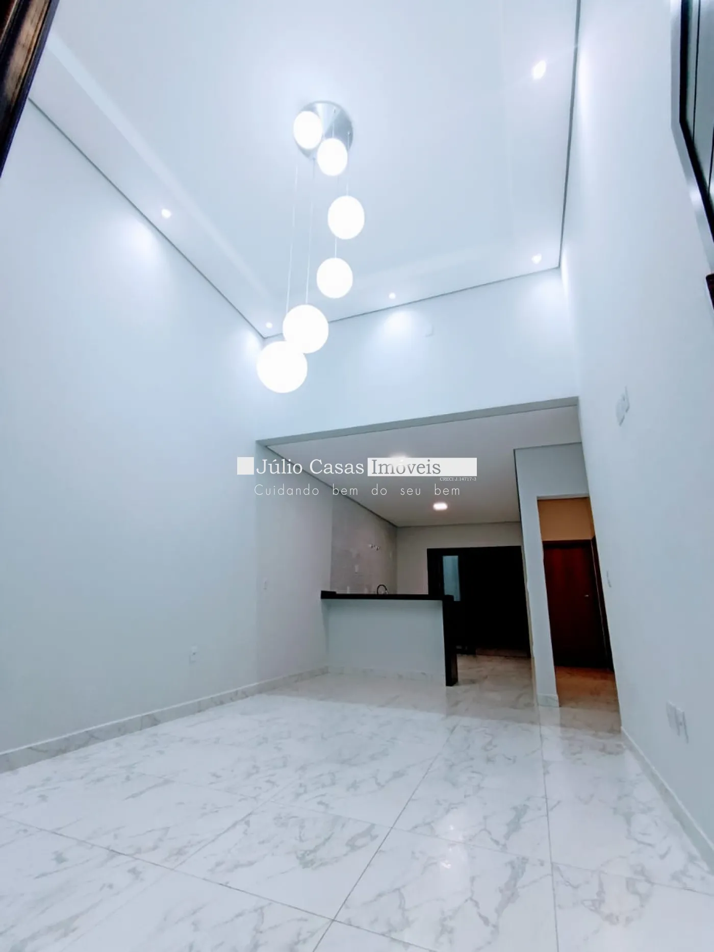 A residência dispõe de dois dormitórios, sendo uma suíte, além de um banheiro social. Todos os ambientes possuem revestimentos em porcelanato de alta qualidade, garantindo durabilidade, elegância e facilidade de manutenção. O acabamento em gesso, com sancas e luminárias embutidas, confere um toque de requinte, enquanto as esquadrias de alumínio asseguram resistência e segurança. A garagem comporta até duas vagas, oferecendo comodidade para você e sua família.