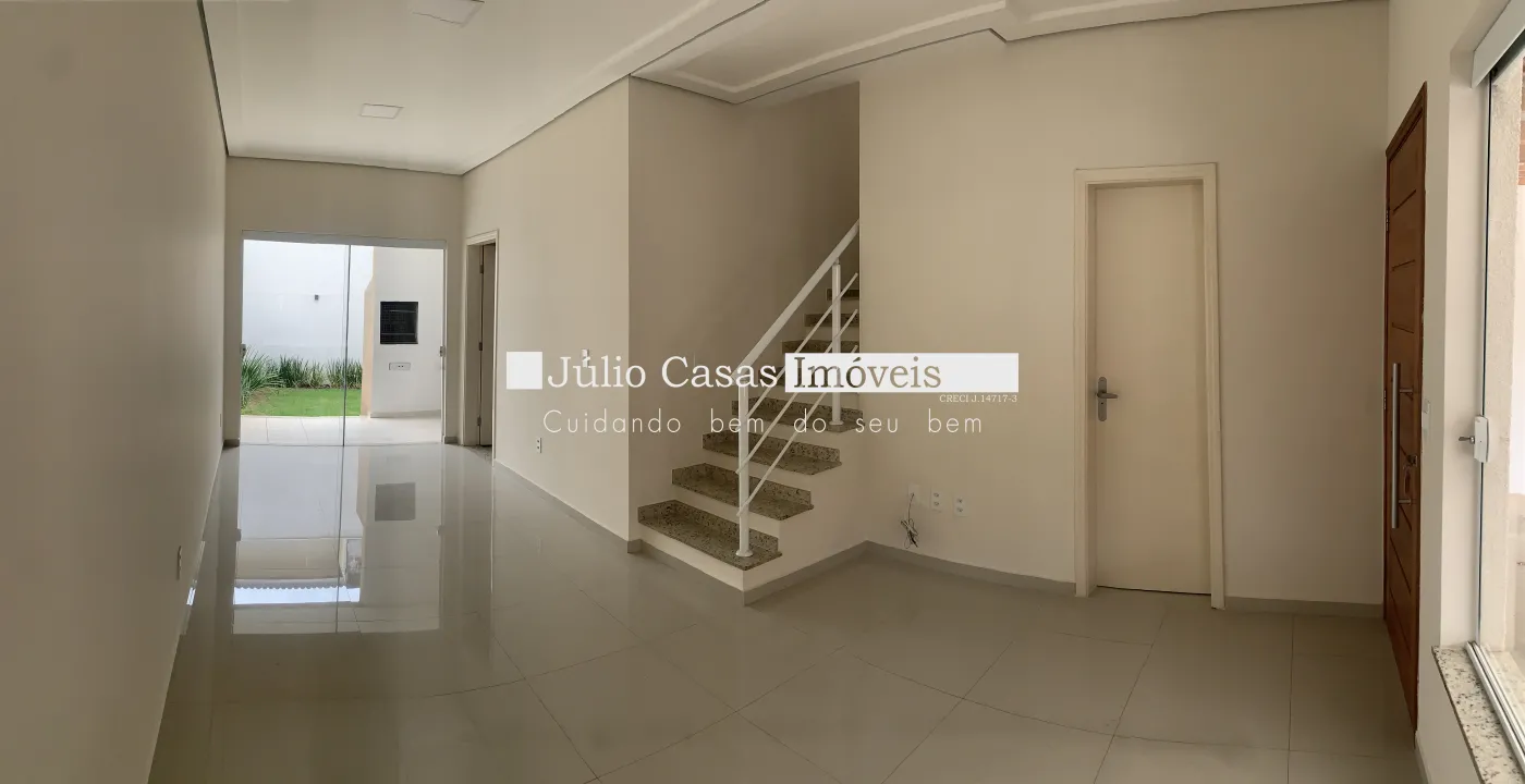 O piso superior conta com 03 dormitórios, sendo uma suíte com sacada, e um banheiro social. No piso inferior, você encontra uma sala de dois ambientes, lavabo, cozinha planejada com armários, fogão e pia em mármore São Gabriel, além de uma lavanderia bem equipada. A área gourmet é um destaque à parte, com pia e gabinete em mármore São Gabriel, churrasqueira e um quintal espaçoso para momentos de lazer. O imóvel ainda conta com entrada lateral e vaga para dois carros, oferecendo toda a comodidade e segurança que sua família precisa.