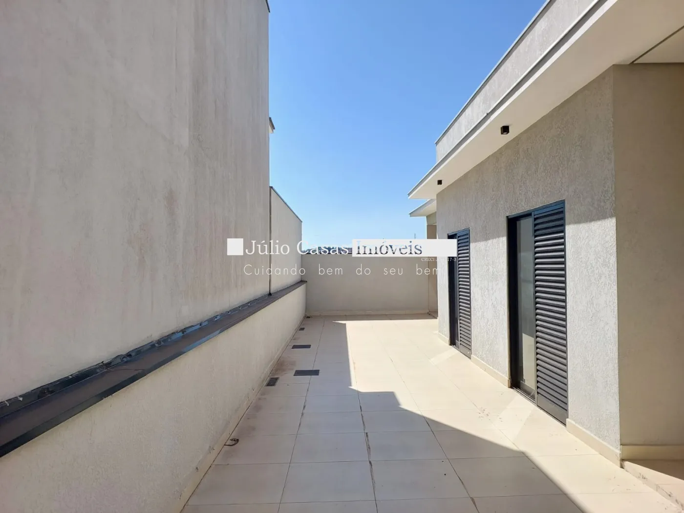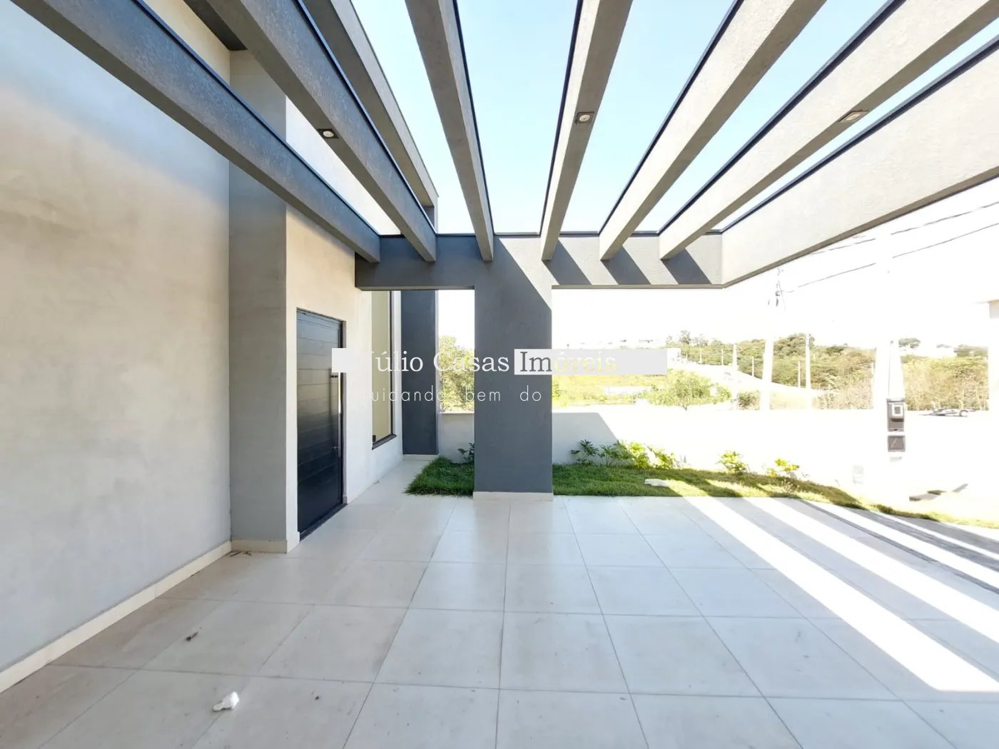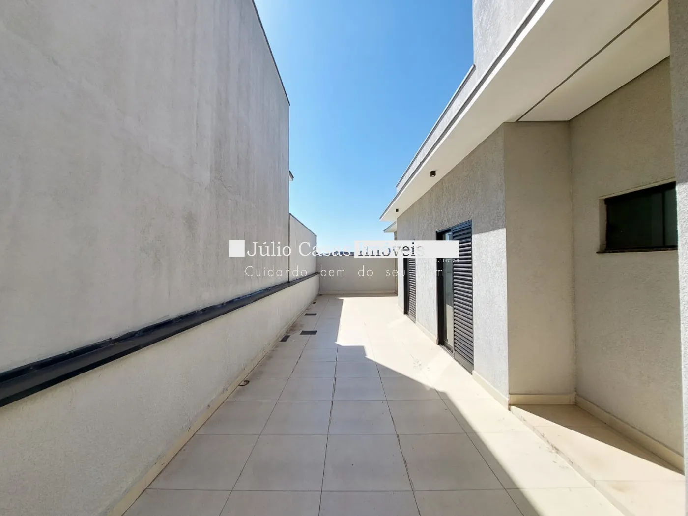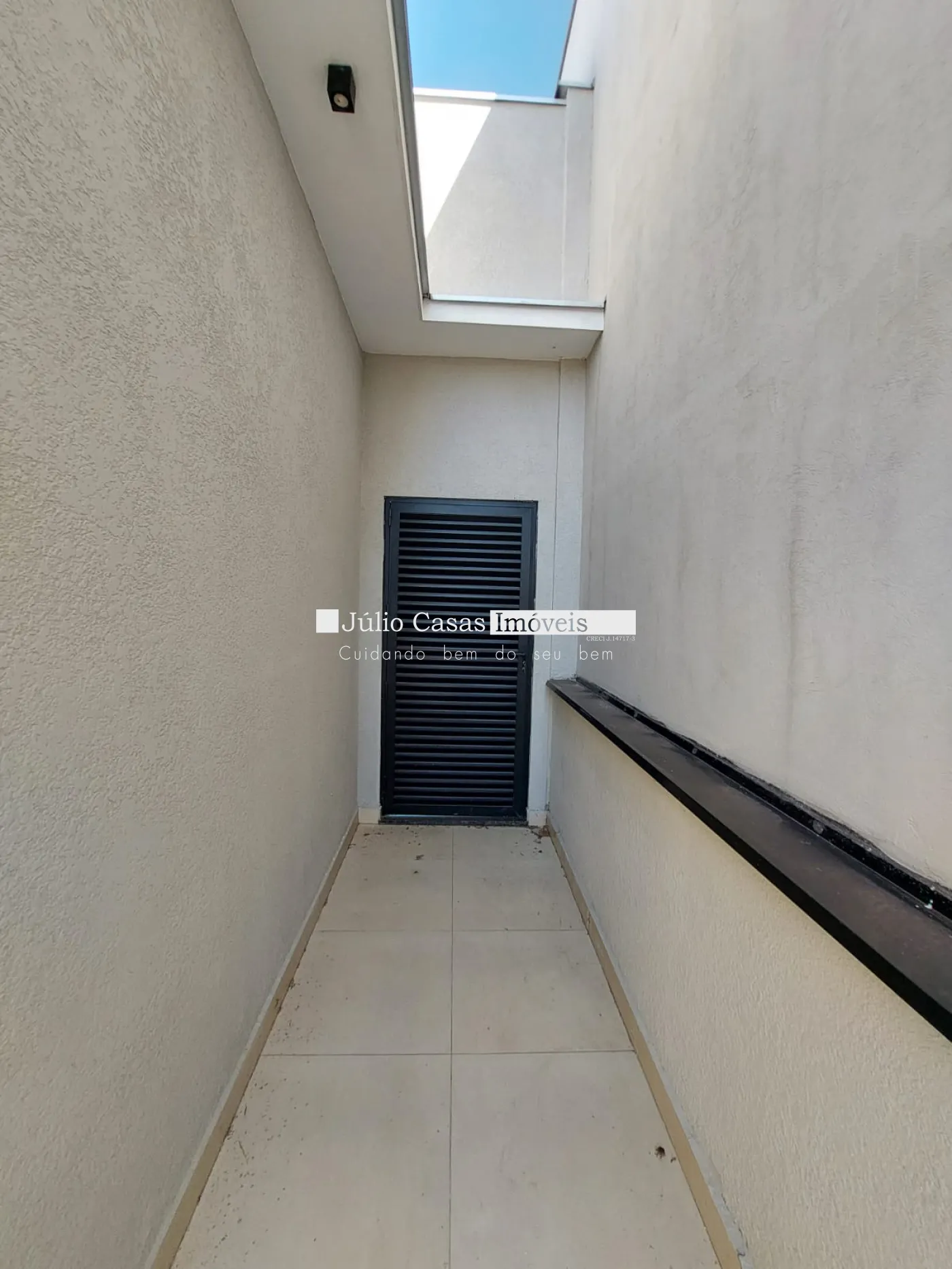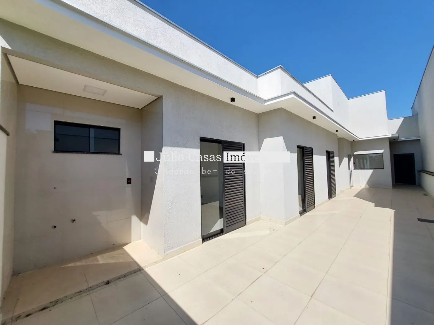 Imóvel com 3 quartos, sendo 1 suíte, e 1 banheiro social. A casa possui uma sala ampla com dois ambientes integrados à cozinha em estilo aberto, que conta com bancada em granito e armários planejados. Todos os ambientes são revestidos com porcelanato de alta qualidade.