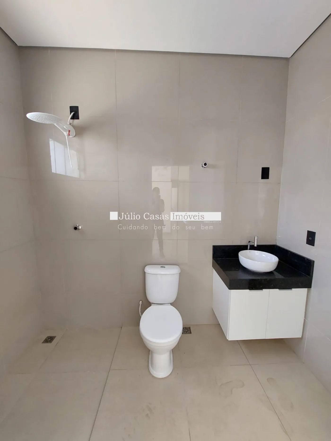 Detalhes dos Banheiros: Banheiros equipados com gabinete e pia em granito.