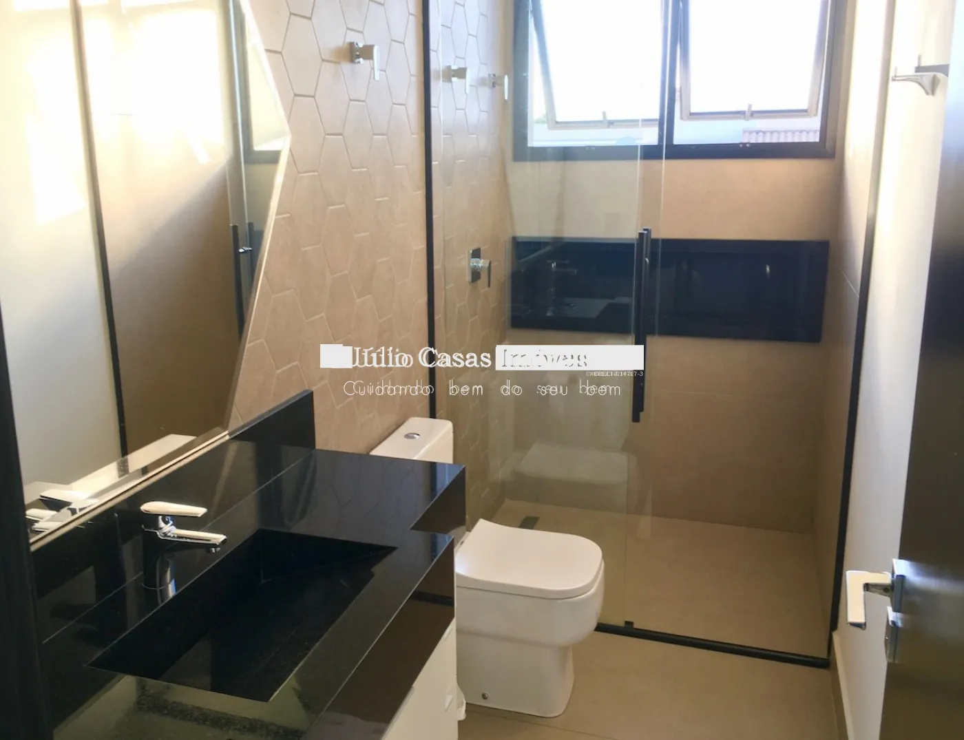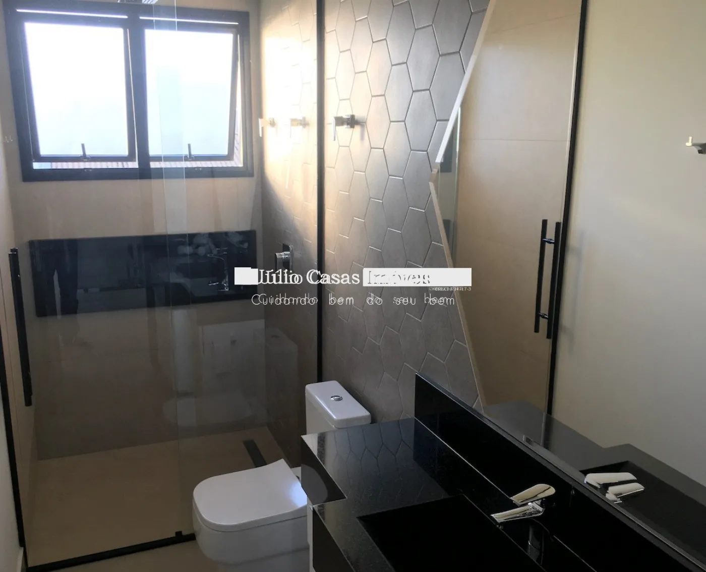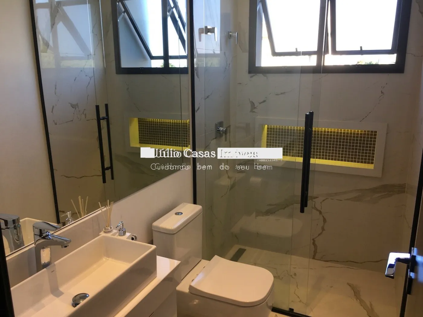 Quatro suítes sendo 3 no piso superior e uma no térreo. Todas com móveis sob medida da Todeschini, e os banheiros com louça Deca .