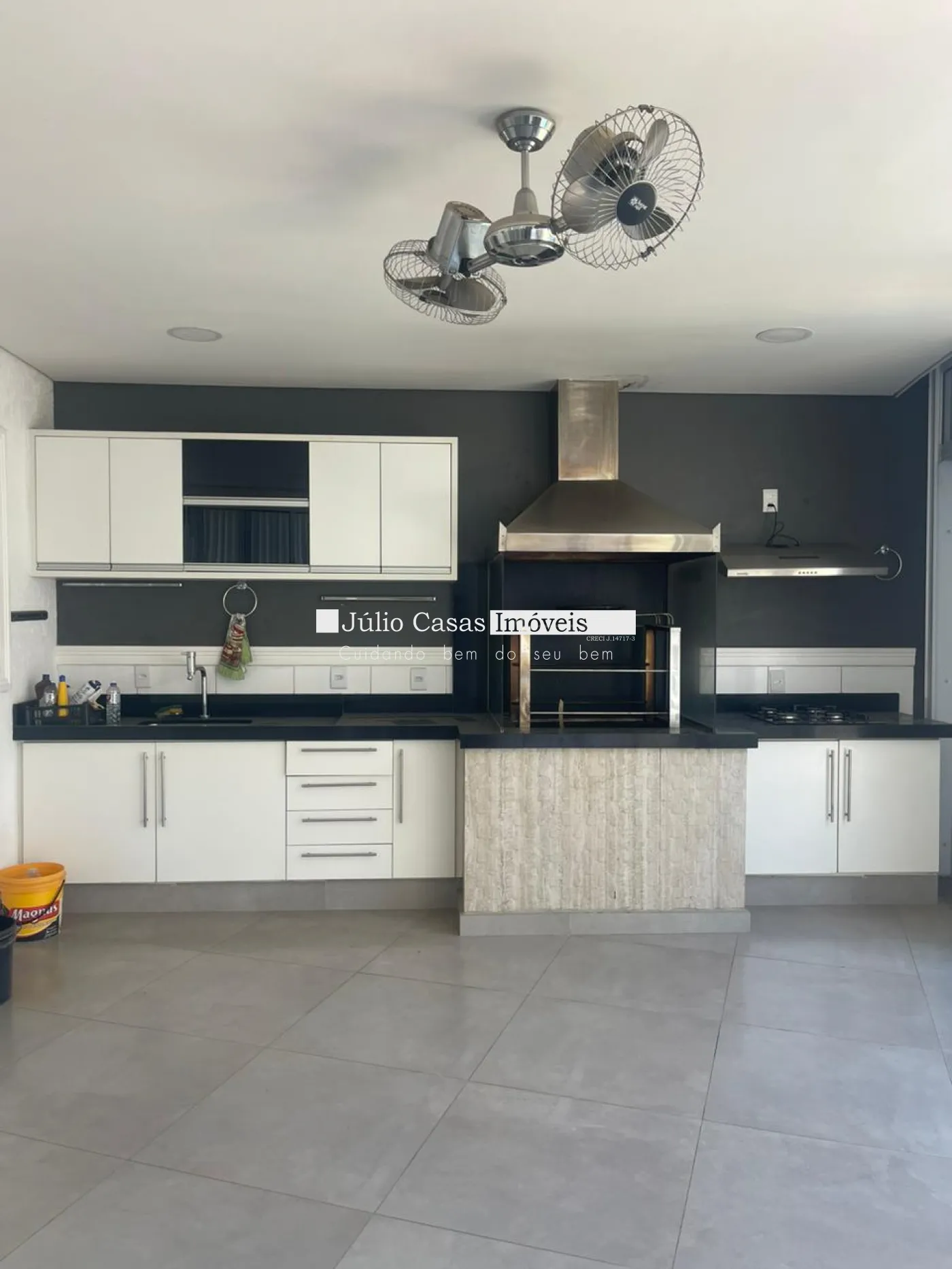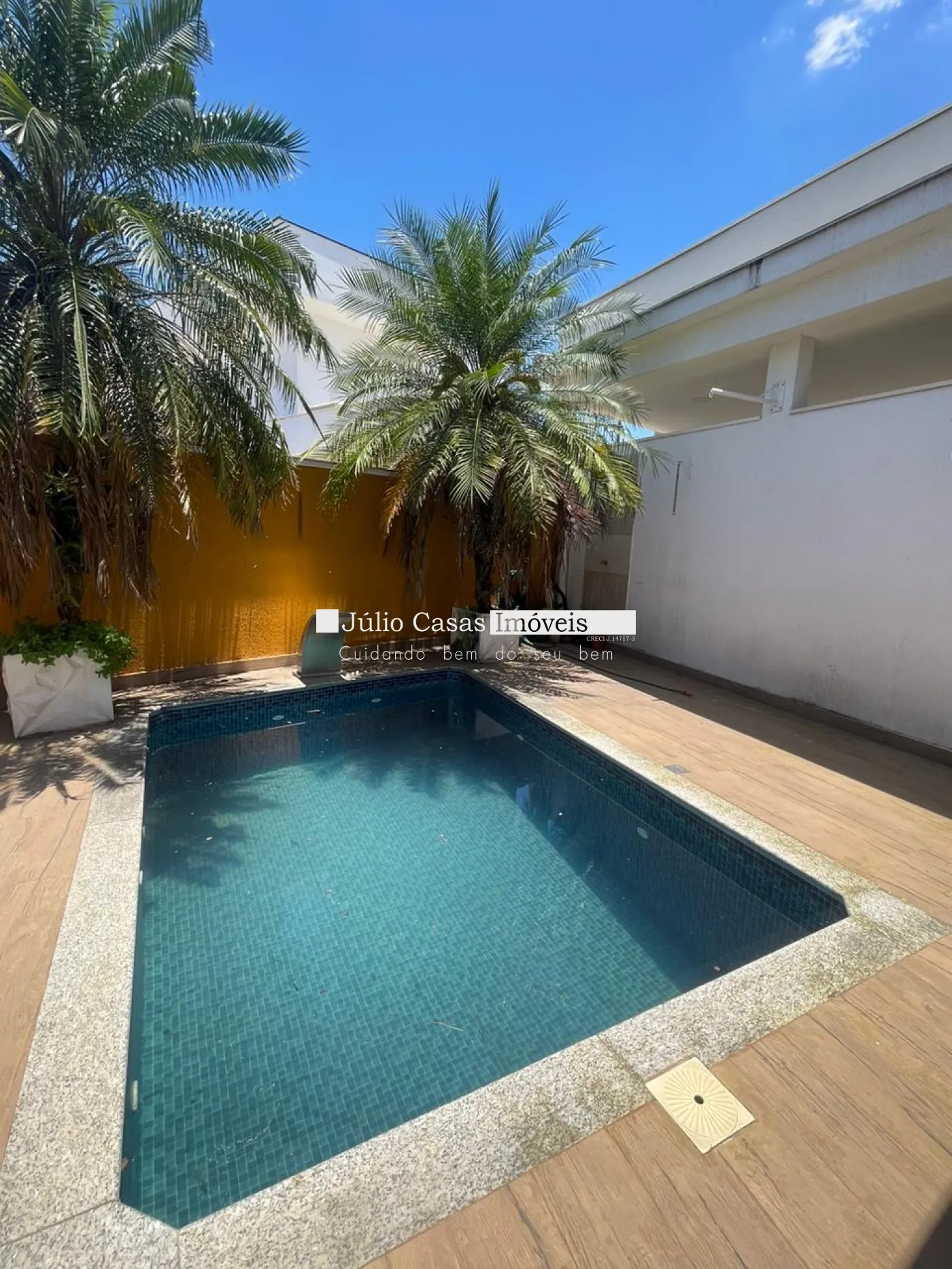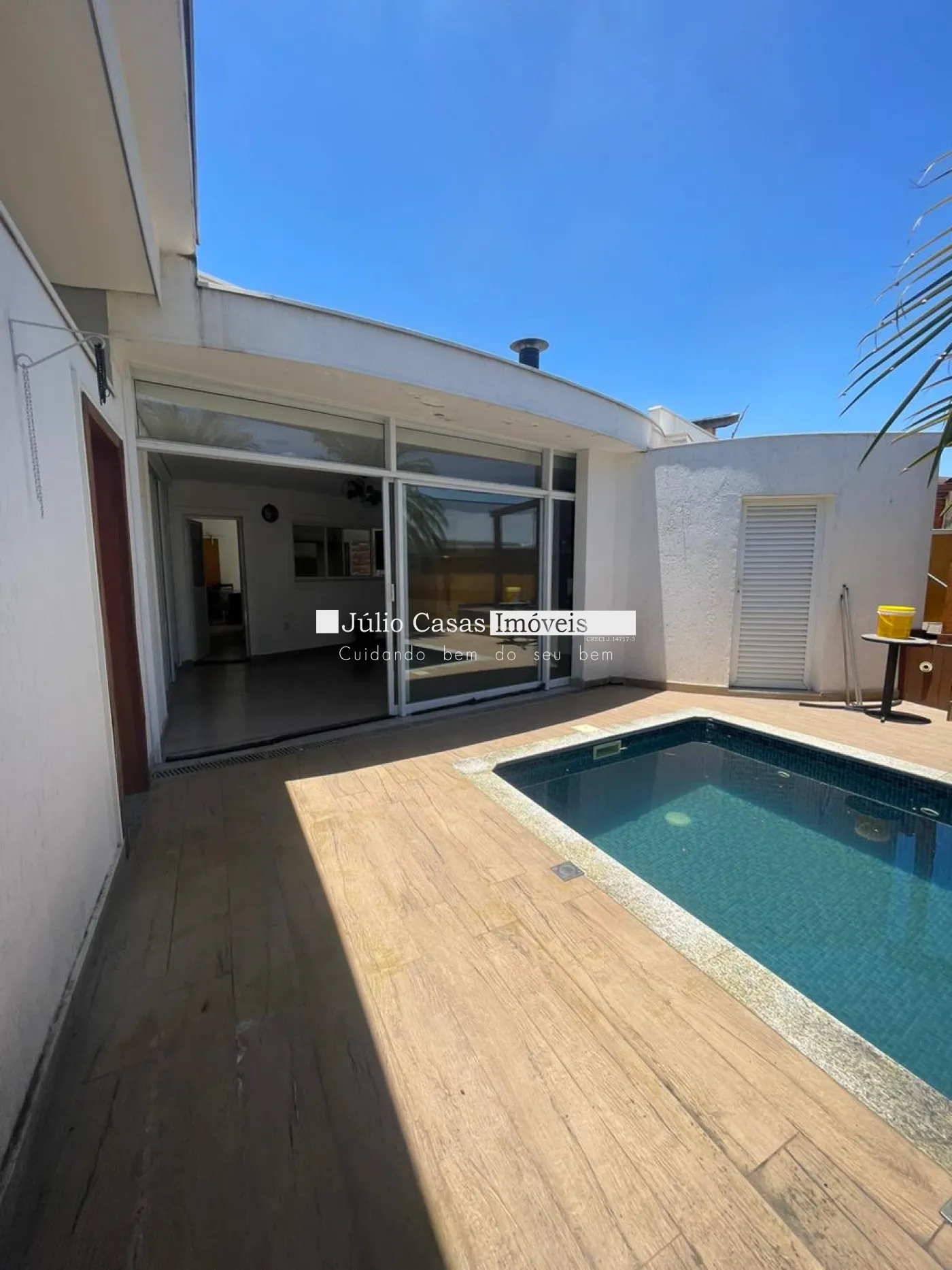 Área gourmet com churrasqueira, wc e piscina.