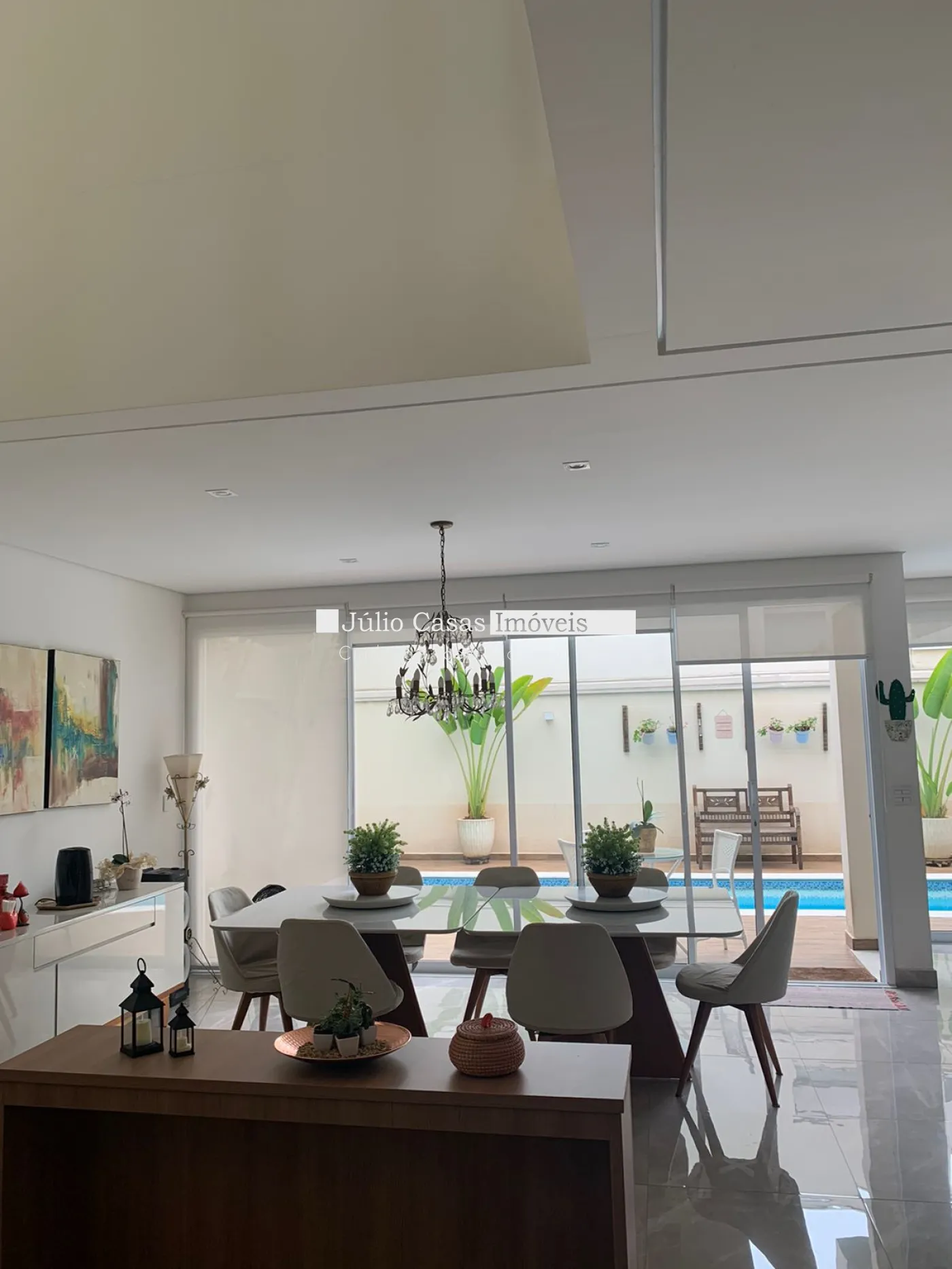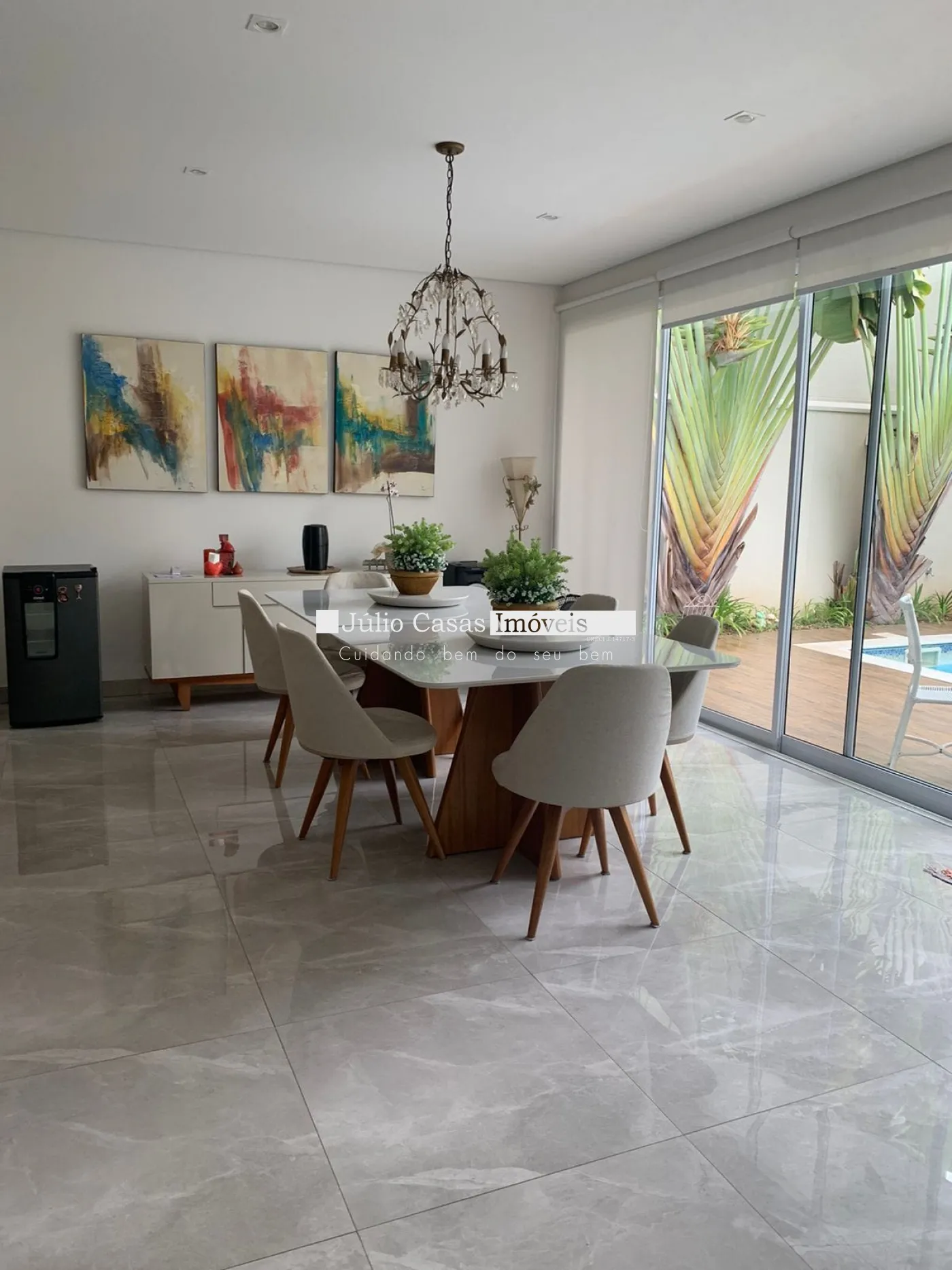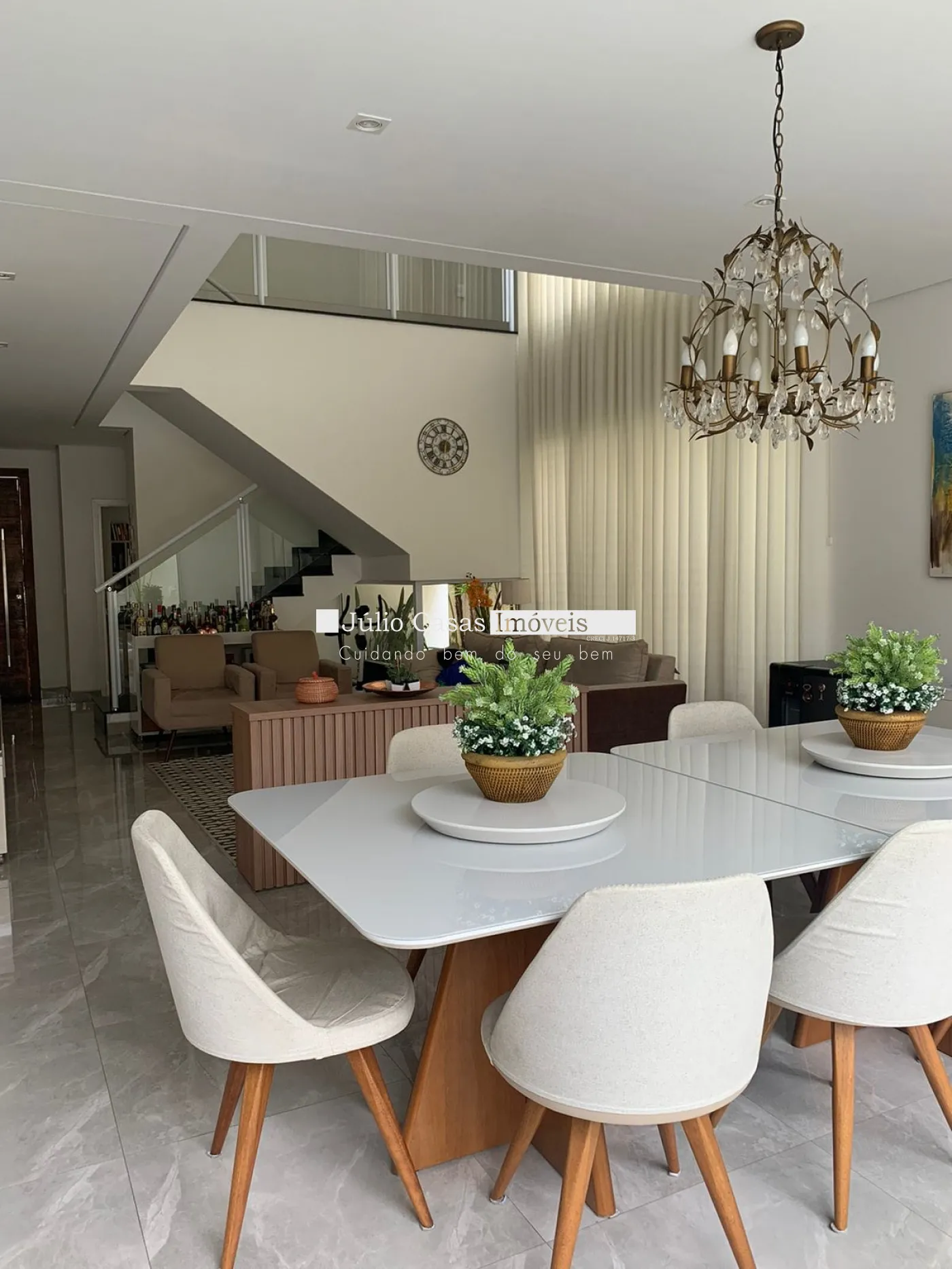Casa à venda e aluguel em condomínio fechado Residência com ambientes amplos e bem distribuídos: sala de estar, sala de jantar, lavabo, cozinha modulada, despensa, lavanderia e área gourmet com churrasqueira integrada ao quintal. Conta com 3 suítes espaçosas, todas com pisos e revestimentos em porcelanato, banheiros equipados com box de vidro e pias em mármore travertino. A casa oferece 4 vagas de garagem, sendo 2 cobertas.