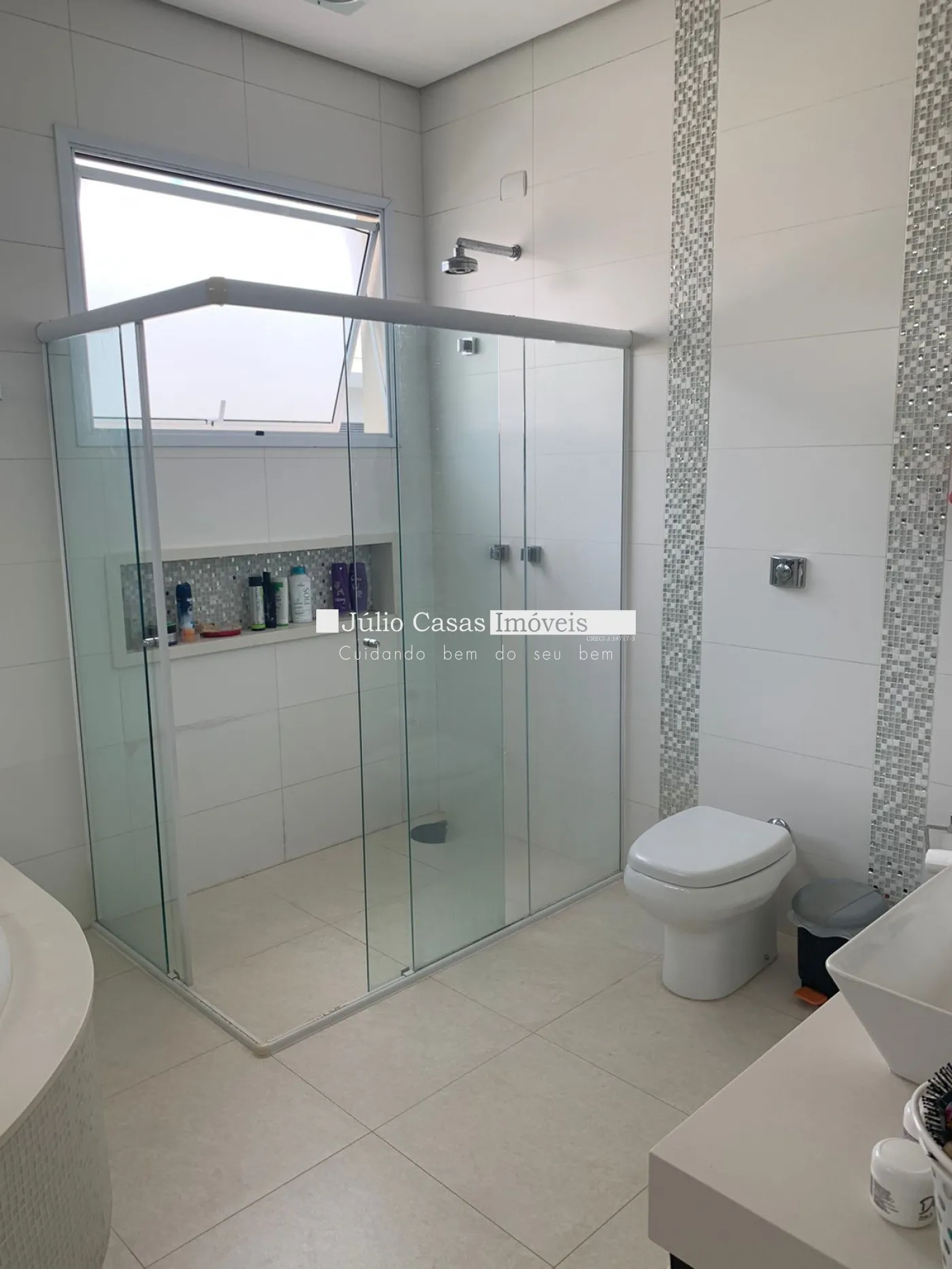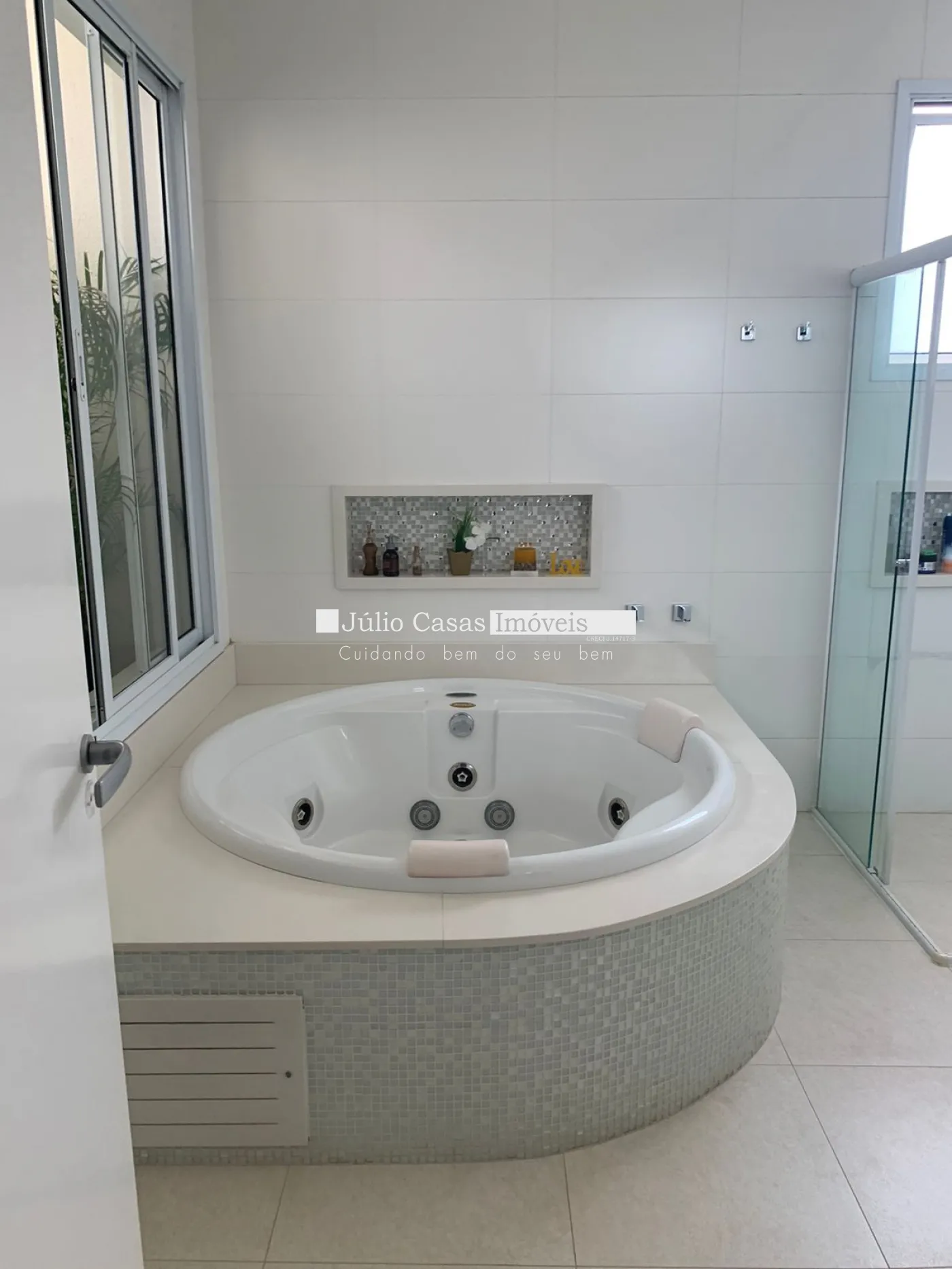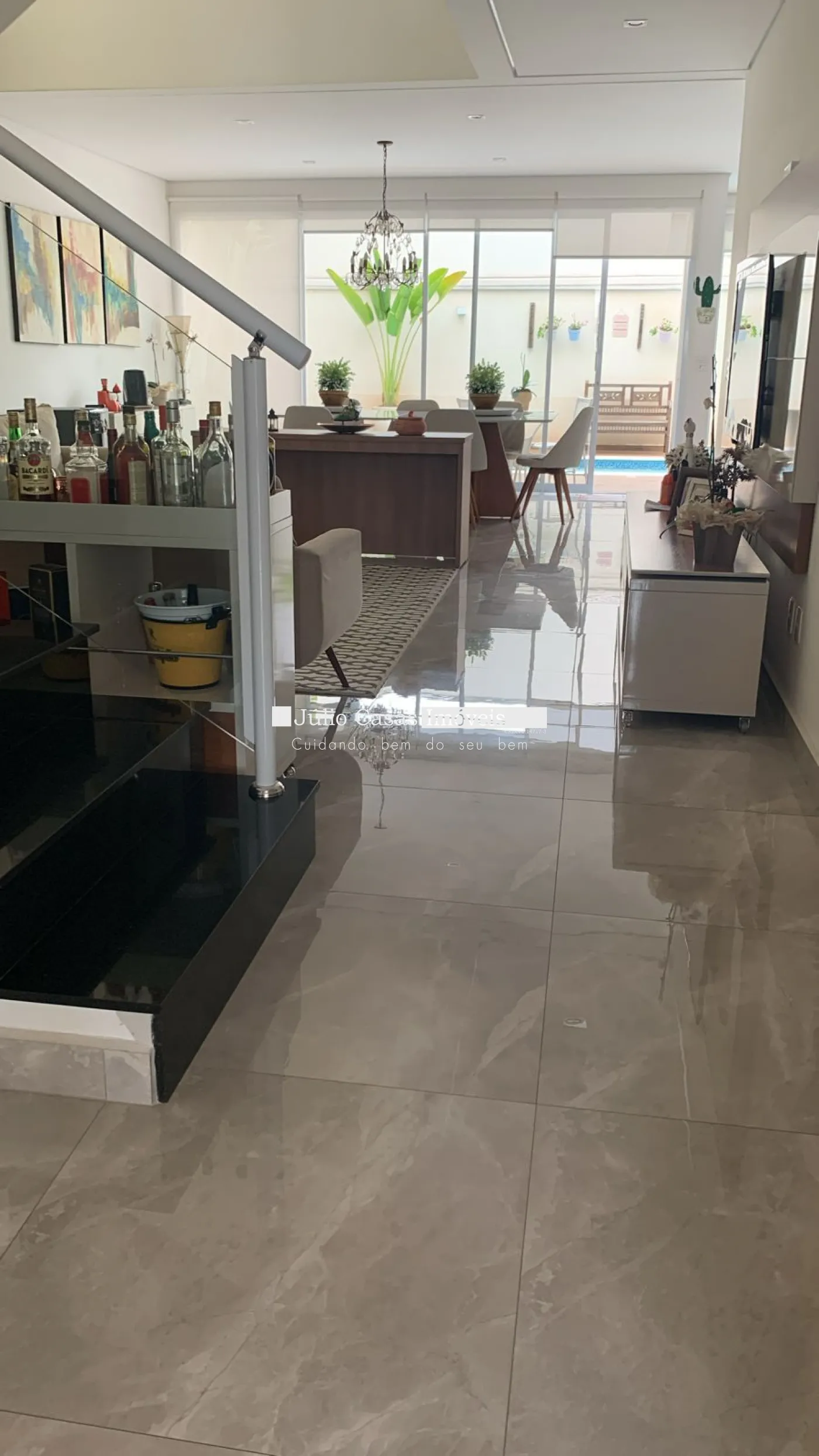 Casa à venda em condomínio fechado ? conforto, sofisticação e segurança! Linda residência com excelente padrão de acabamento, ideal para quem busca qualidade de vida em um ambiente seguro e bem localizado. O imóvel conta com salas de estar e jantar integradas, escritório, lavabo, cozinha com modulados e despensa. A área gourmet é um verdadeiro destaque, equipada com churrasqueira, modulados e uma jacuzzi para 5 pessoas ? perfeita para momentos de lazer e relaxamento. Possui ainda lavanderia funcional e quarto de despejo para apoio. No pavimento superior, são 3 suítes amplas, sendo uma delas com closet. Todos os ambientes foram planejados com móveis modulados de alta qualidade, presentes no closet, cozinha, despensa e área gourmet. Acabamentos de alto padrão, com pisos e revestimentos em porcelanato de primeira linha, conferem sofisticação a todos os espaços. A casa oferece 4 vagas de garagem, sendo 2 cobertas.