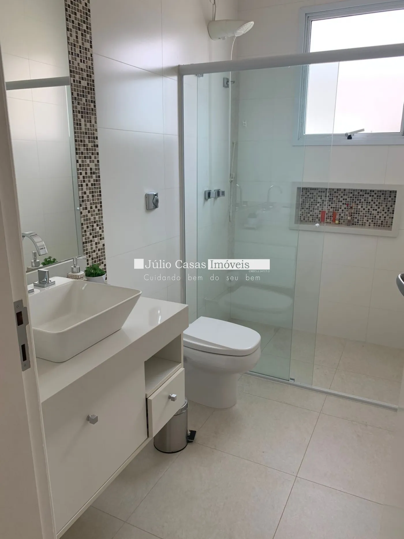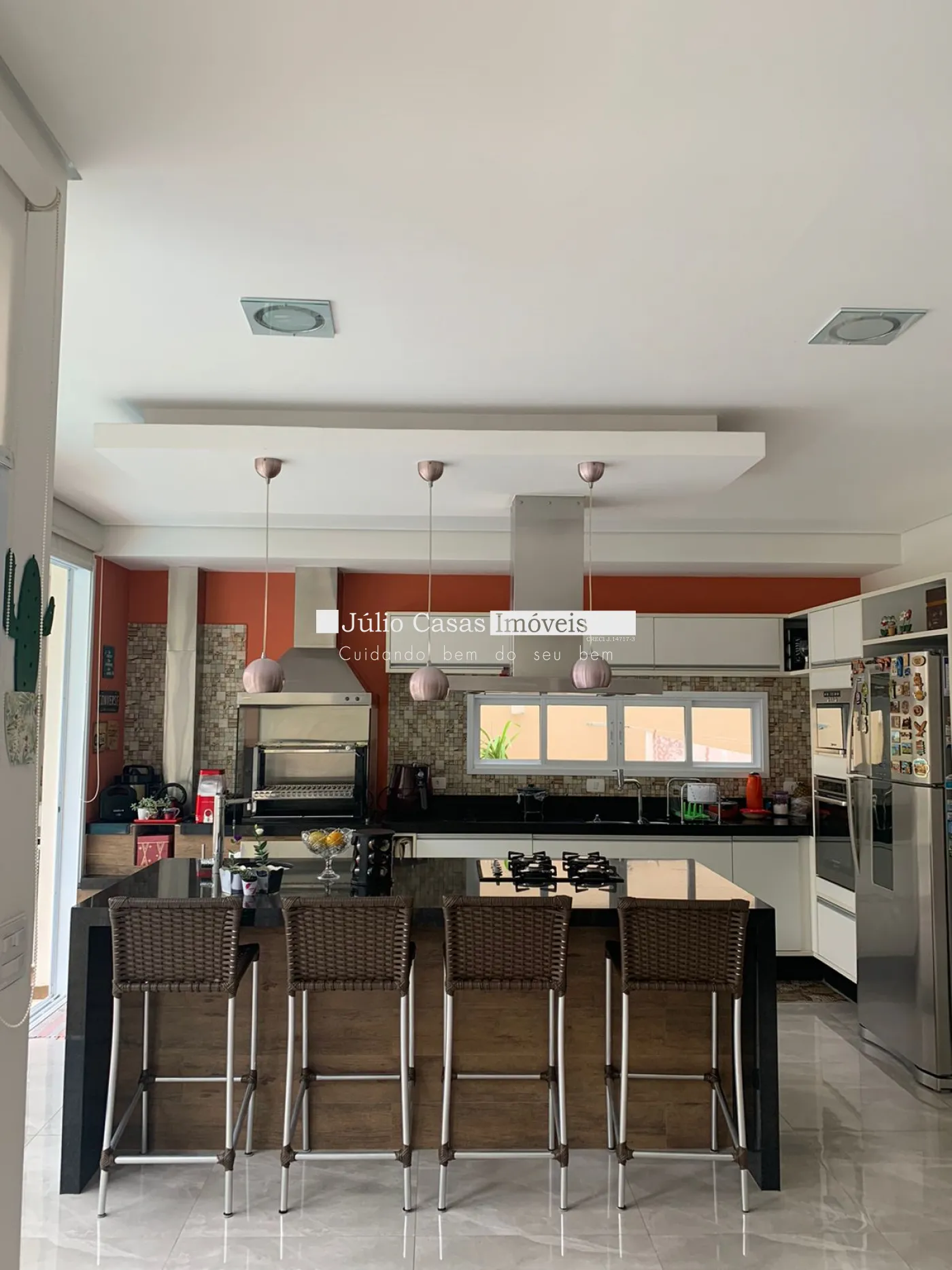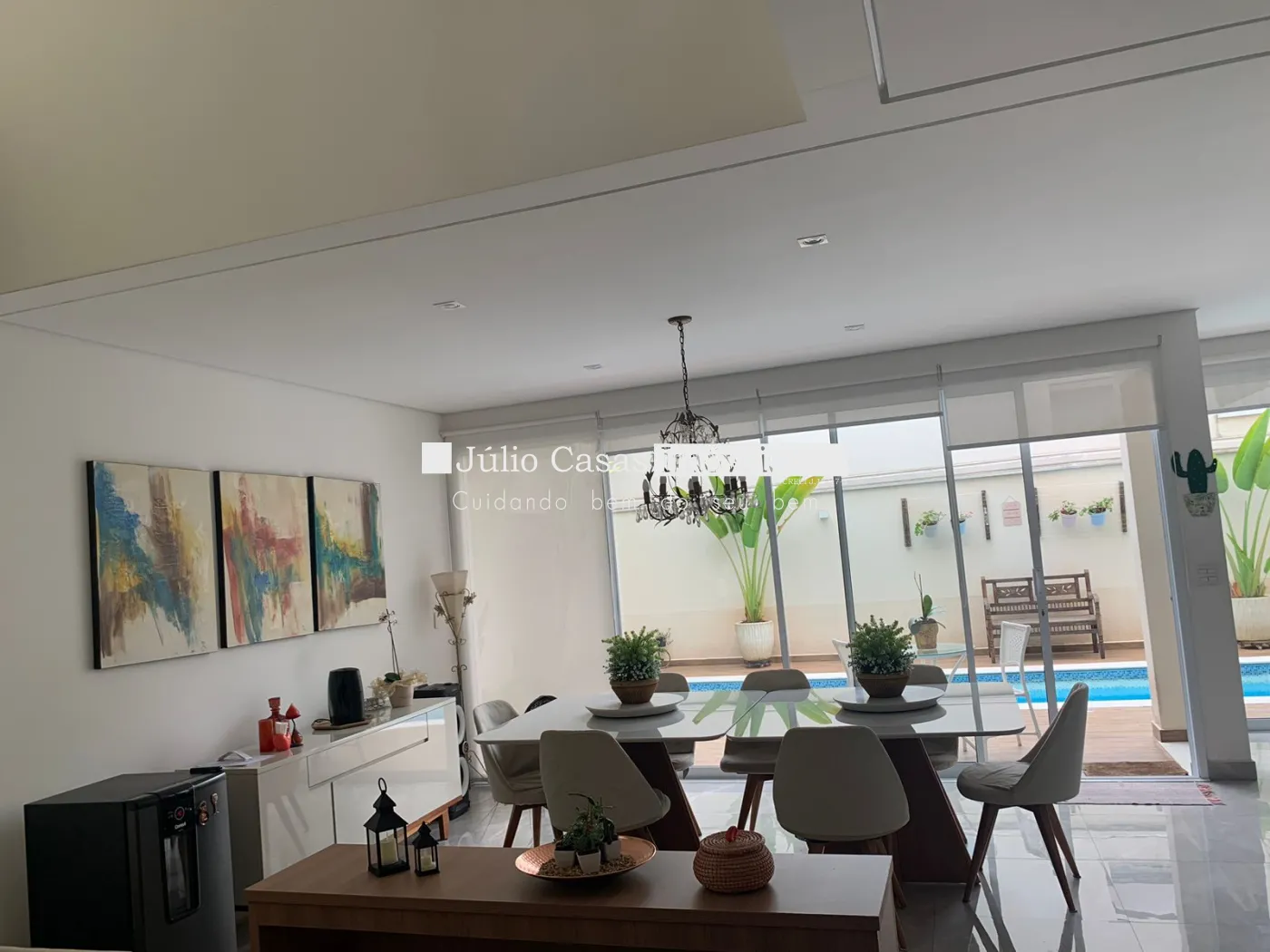 Casa à venda em condomínio fechado ? conforto, sofisticação e segurança! Linda residência com excelente padrão de acabamento, ideal para quem busca qualidade de vida em um ambiente seguro e bem localizado. O imóvel conta com salas de estar e jantar integradas, escritório, lavabo, cozinha com modulados e despensa. A área gourmet é um verdadeiro destaque, equipada com churrasqueira, modulados e uma jacuzzi para 5 pessoas ? perfeita para momentos de lazer e relaxamento. Possui ainda lavanderia funcional e quarto de despejo para apoio. No pavimento superior, são 3 suítes amplas, sendo uma delas com closet. Todos os ambientes foram planejados com móveis modulados de alta qualidade, presentes no closet, cozinha, despensa e área gourmet. Acabamentos de alto padrão, com pisos e revestimentos em porcelanato de primeira linha, conferem sofisticação a todos os espaços. A casa oferece 4 vagas de garagem, sendo 2 cobertas.