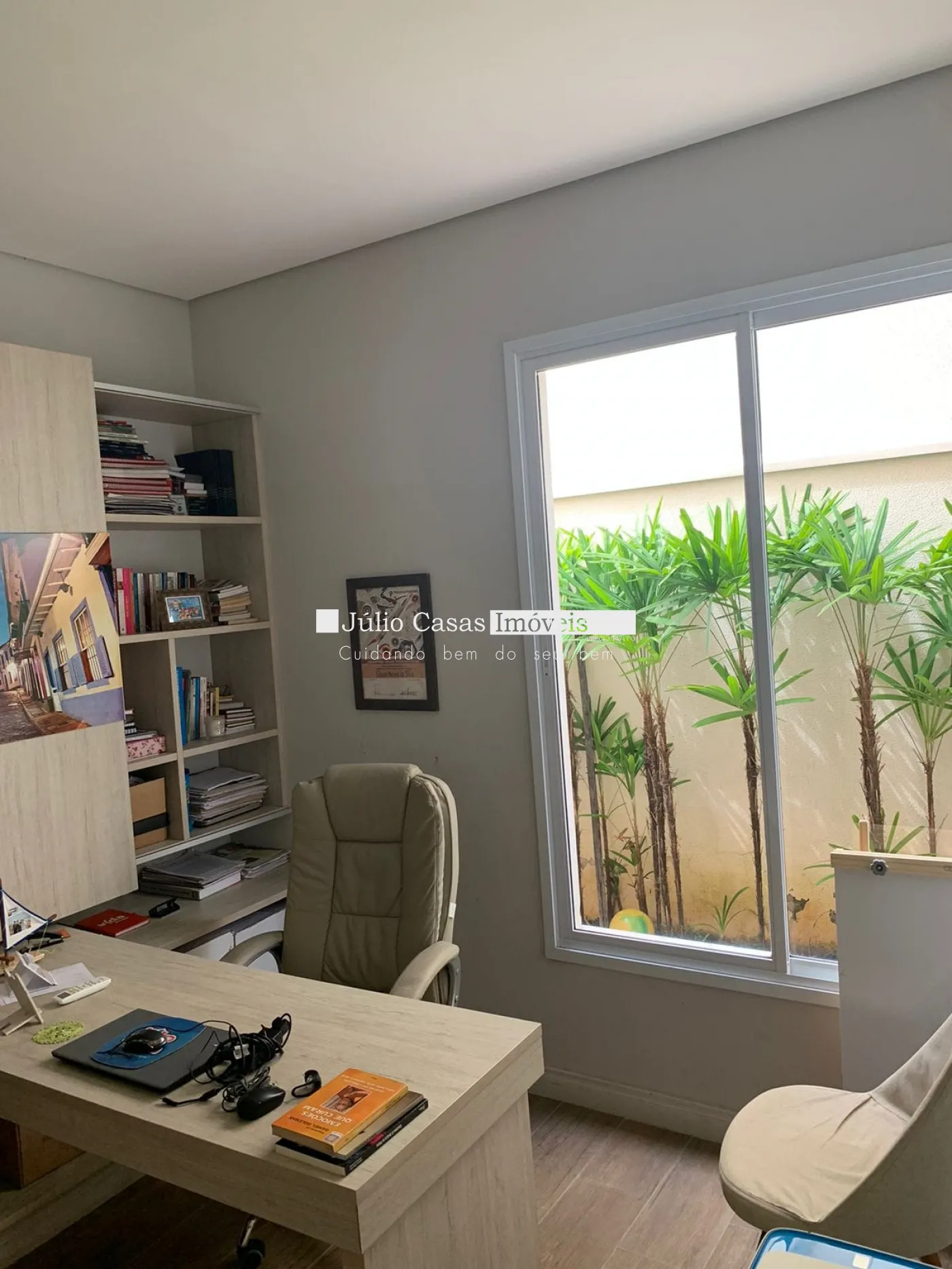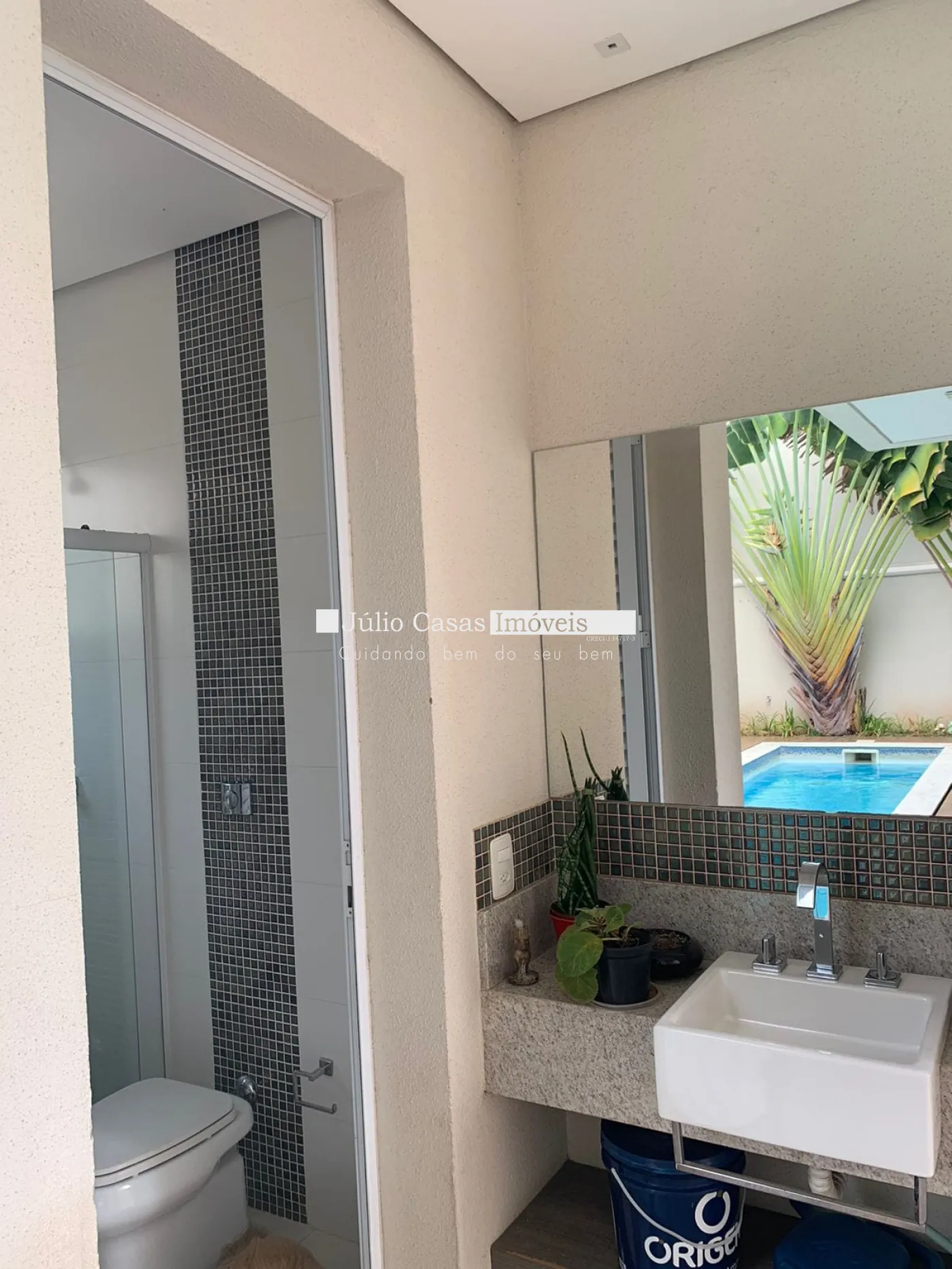 Esta casa térrea, localizada em um belo condomínio, destaca-se pela excelente construção e acabamentos de qualidade. O imóvel possui três suítes, todas com piso laminado, portas balcão e preparação para ar-condicionado tipo split, garantindo conforto e praticidade. A ampla sala de estar e jantar, também preparada para split, oferece um ambiente espaçoso e agradável, revestido com piso em porcelanato, que confere um toque de modernidade e elegância. A cozinha é ampla e funcional, com bancadas em mármore, e integra-se harmoniosamente à área gourmet, criando um espaço perfeito para receber amigos e familiares. A área externa é complementada por uma piscina, proporcionando um ambiente de lazer ideal, e um banheiro auxiliar para maior comodidade. A casa também conta com uma lavanderia prática e um lavabo. Para quem trabalha ou estuda em casa, o escritório independente oferece um espaço tranquilo e privado. Com sua combinação de espaços bem distribuídos, acabamentos de alta qualidade e a praticidade de estar em um condomínio seguro e bem estruturado, esta casa é uma excelente opção para quem busca conforto e estilo. Gostaria de saber mais informações ou agendar uma visita?