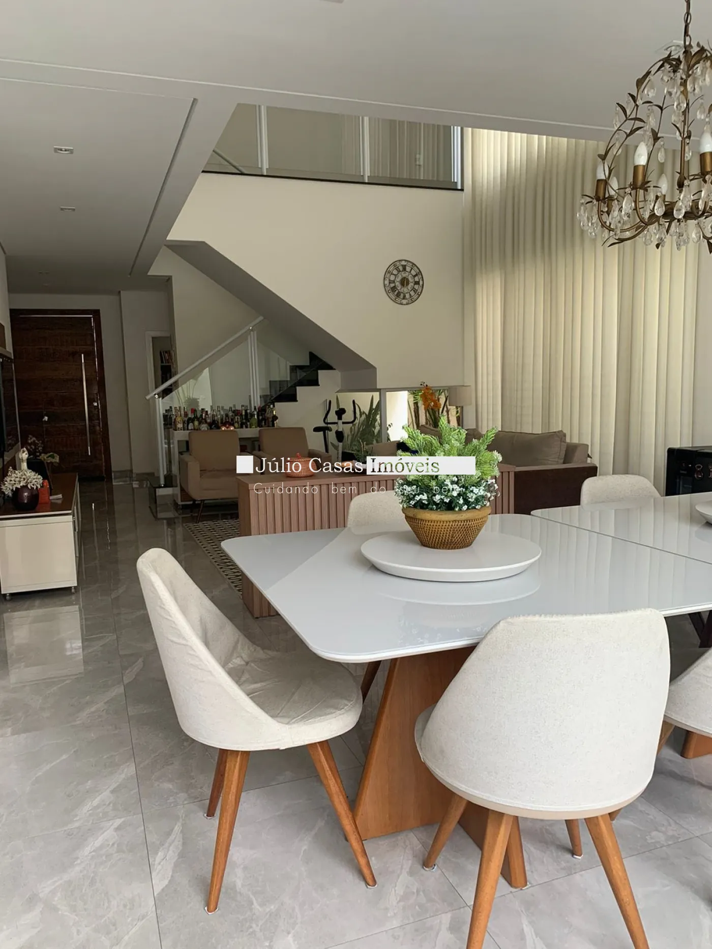 Casa à venda em condomínio tranquilo, ideal para toda a família, com excelente estrutura e conforto. No térreo, a casa oferece uma sala de estar e jantar em dois ambientes, equipada com painel e rack para TV, lavabo, cozinha modulada com ampla bancada em granito e despensa espaçosa. A área de serviço conta com armários planejados, banheiro e depósito. O quintal grande dispõe de um corredor lateral com acesso independente para a entrada de serviço e uma área gourmet com churrasqueira e pia de apoio, perfeita para momentos de lazer. No andar superior, uma elegante escada em granito leva à sala íntima entre os quartos. São três suítes amplas, todas com varanda, sendo uma delas suíte master com closet. Todos os quartos possuem piso porcelanato imitando madeira, trazendo sofisticação ao ambiente. O bar modulado sob a escada agrega ainda mais charme ao imóvel. A casa conta com quatro vagas de garagem, sendo duas cobertas. O condomínio oferece lazer completo e segurança para garantir tranquilidade e bem-estar para toda a família.