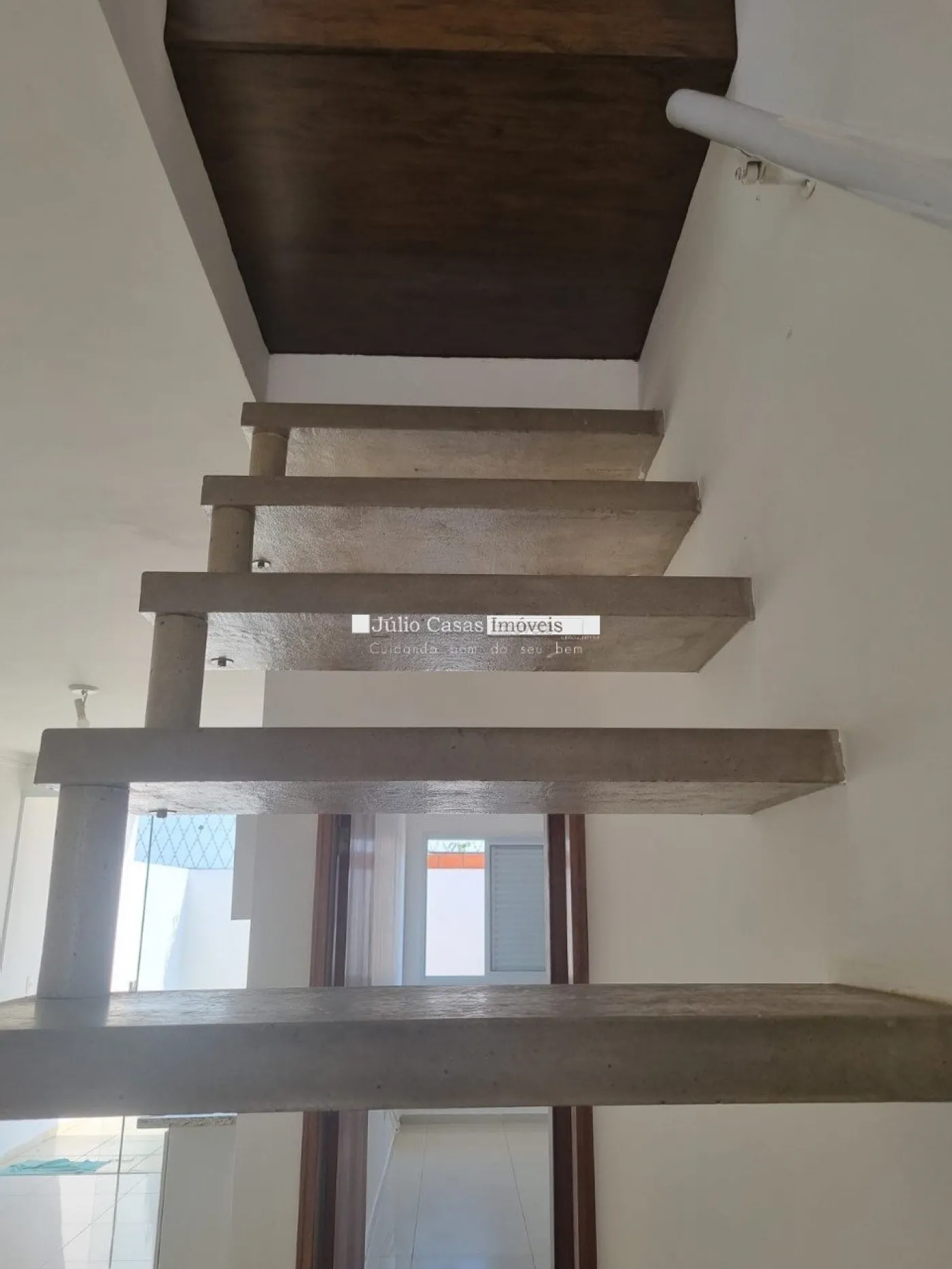 Área gourmet integrada à cozinha com churrasqueira. Três dormitórios sendo duas suítes, com piso em porcelanato, banheiros com box em vidro temperado, azulejos até o teto e detalhes em pastilhas de vidro à meia altura. Um dos dormitórios tem acesso a uma área de luz, por meio de porta balcão. Escada que leva ao sótão com aproximadamente 50m², parcialmente forrado em PVC e janelas de correr em vidro temperado. Garagem para dois veículos, sendo uma coberta.