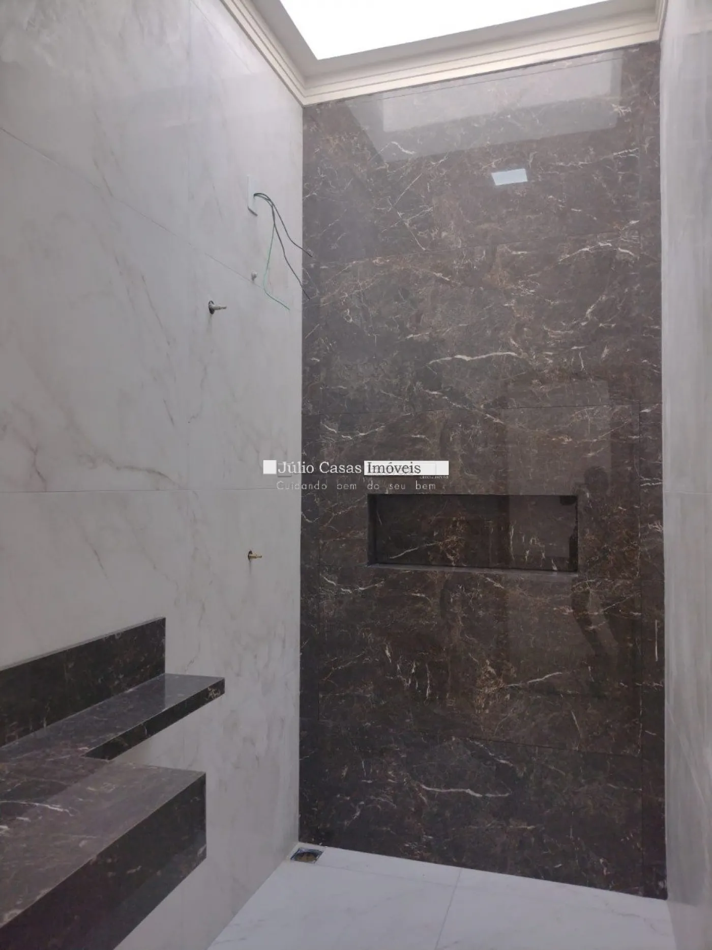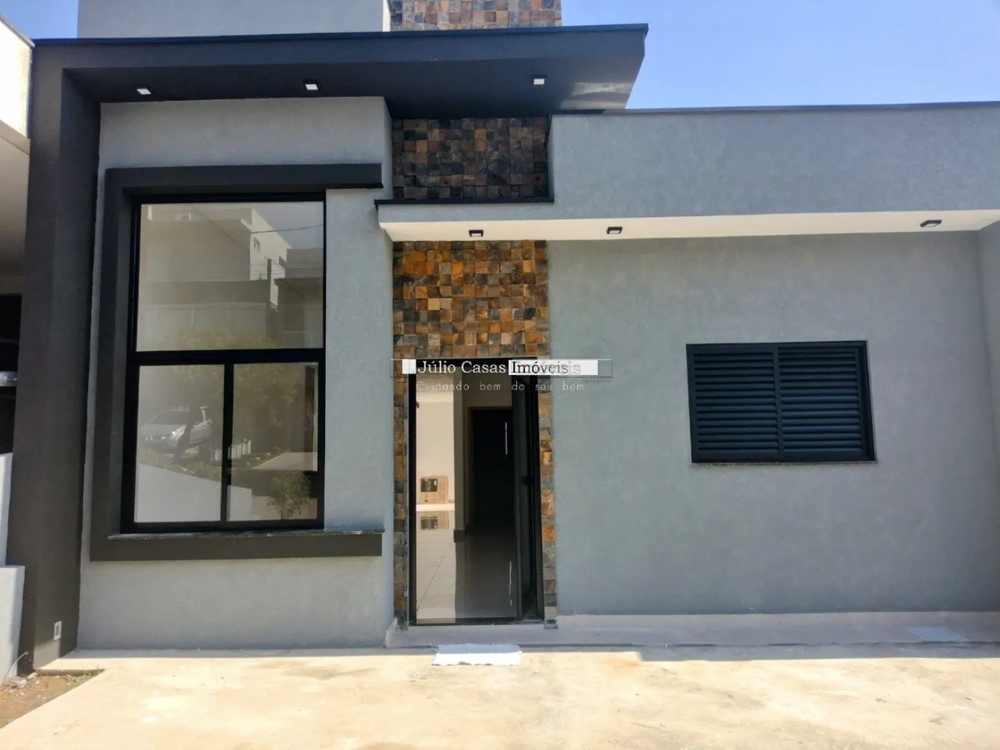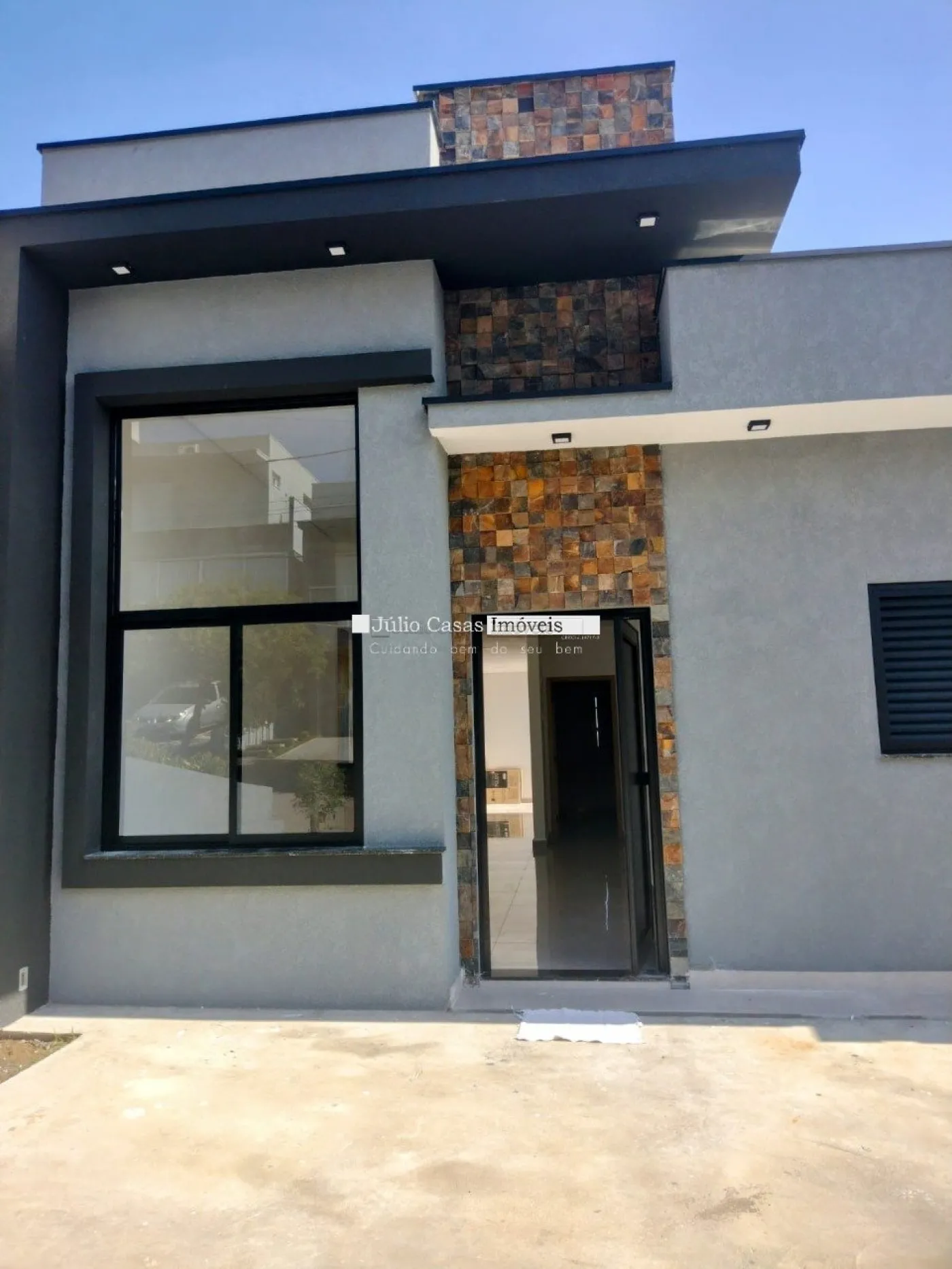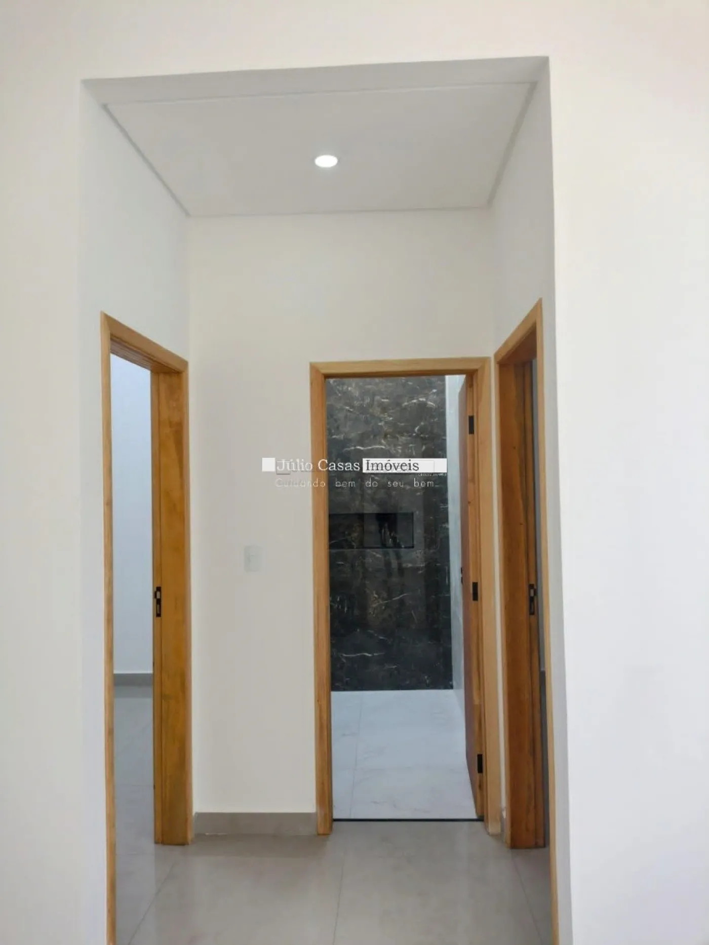 Três quartos sendo uma suíte, com piso em porcelanato e teto em gesso com luminárias em LED. Garagem descoberta para dois veículos.