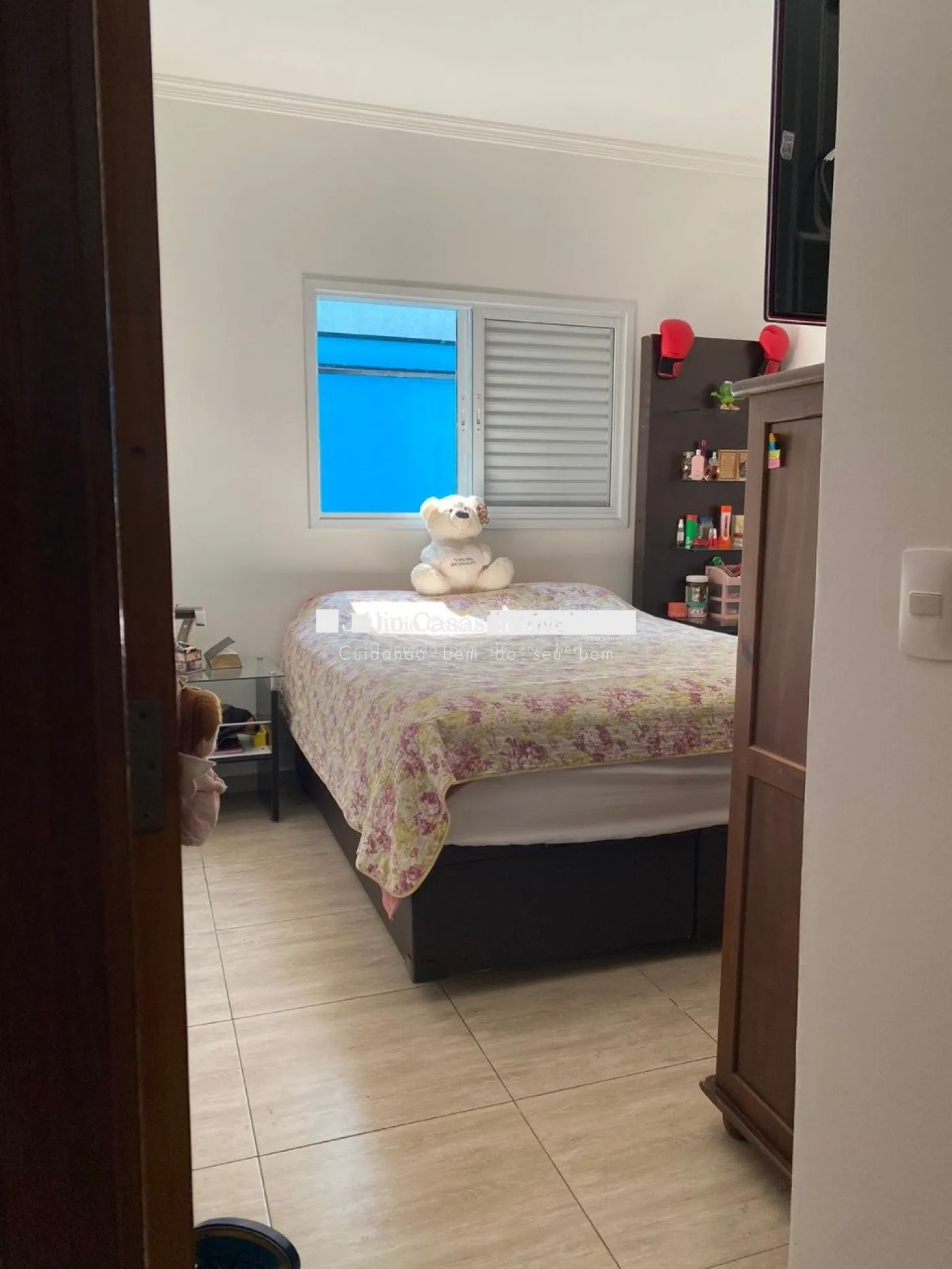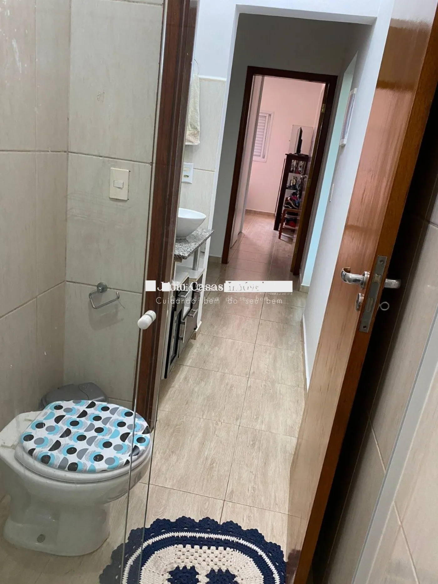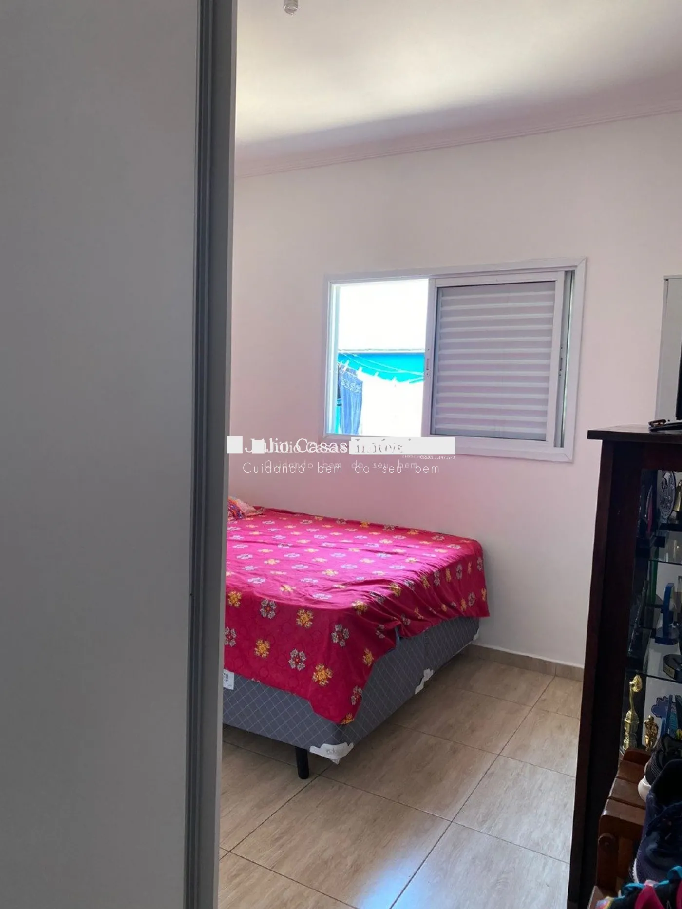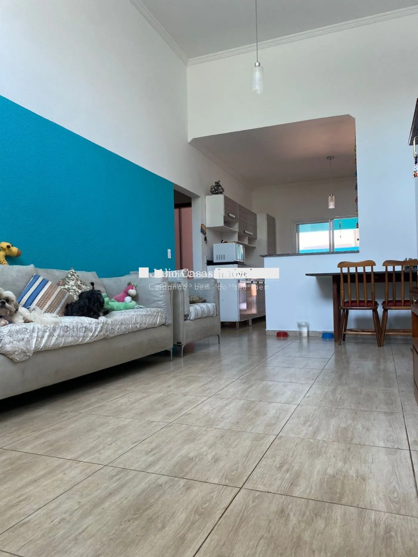 Casa térrea com 3 dormitórios, sendo 1 suíte, dormitórios com armários embutidos, 1 banheiro social, cozinha americana com modulados, sala de estar, quintal com área gourmet com pia de apoio com bancada, entrada lateral, garagem para 2 carros cobertos. Toda casa em piso cerâmico, box em vidros nos banheiros.