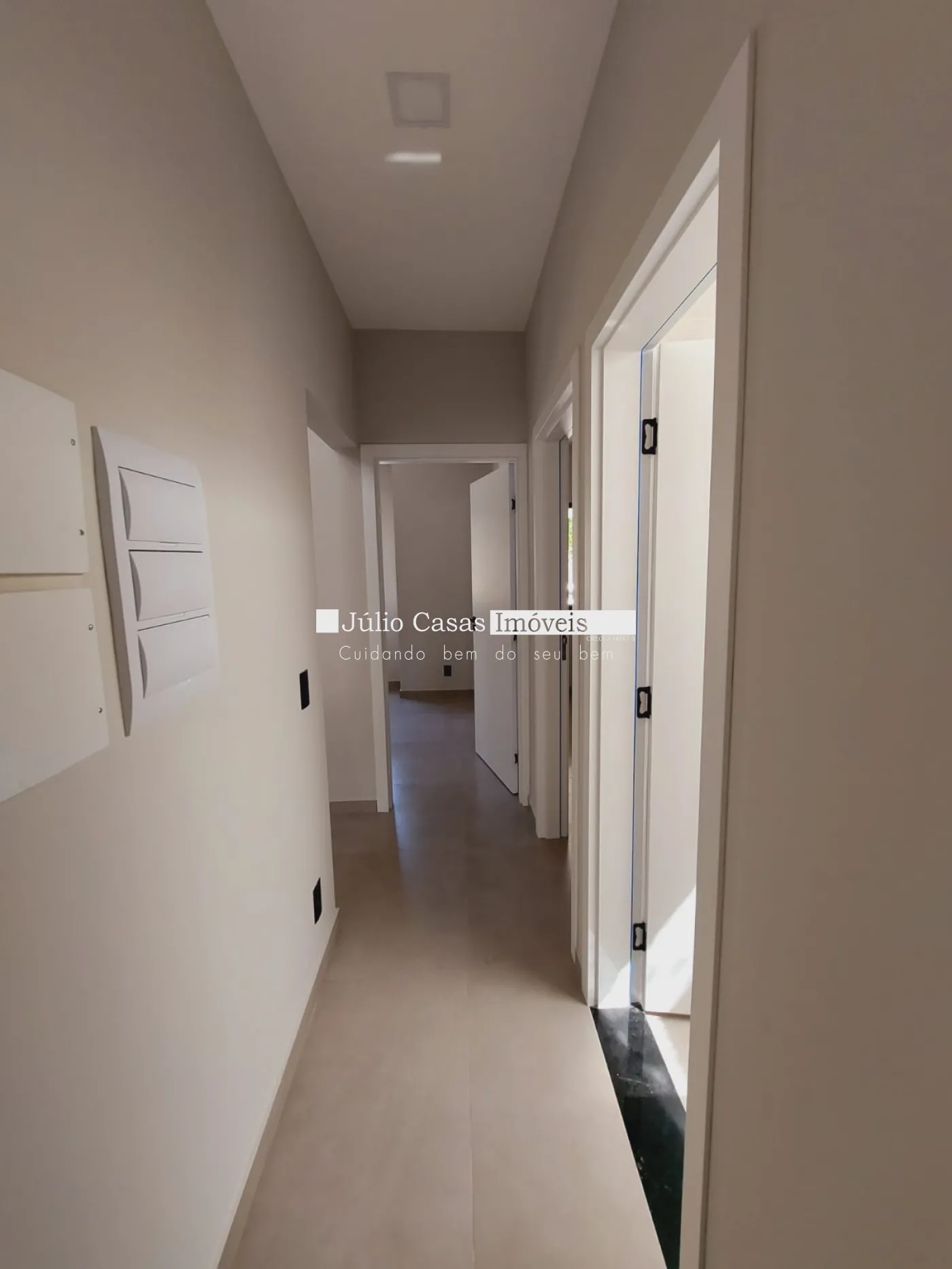 O hall com espaço para roupeiro, e o corredor íntimo proporciona acesso aos três quartos, sendo um deles suíte, com acabamentos refinados.