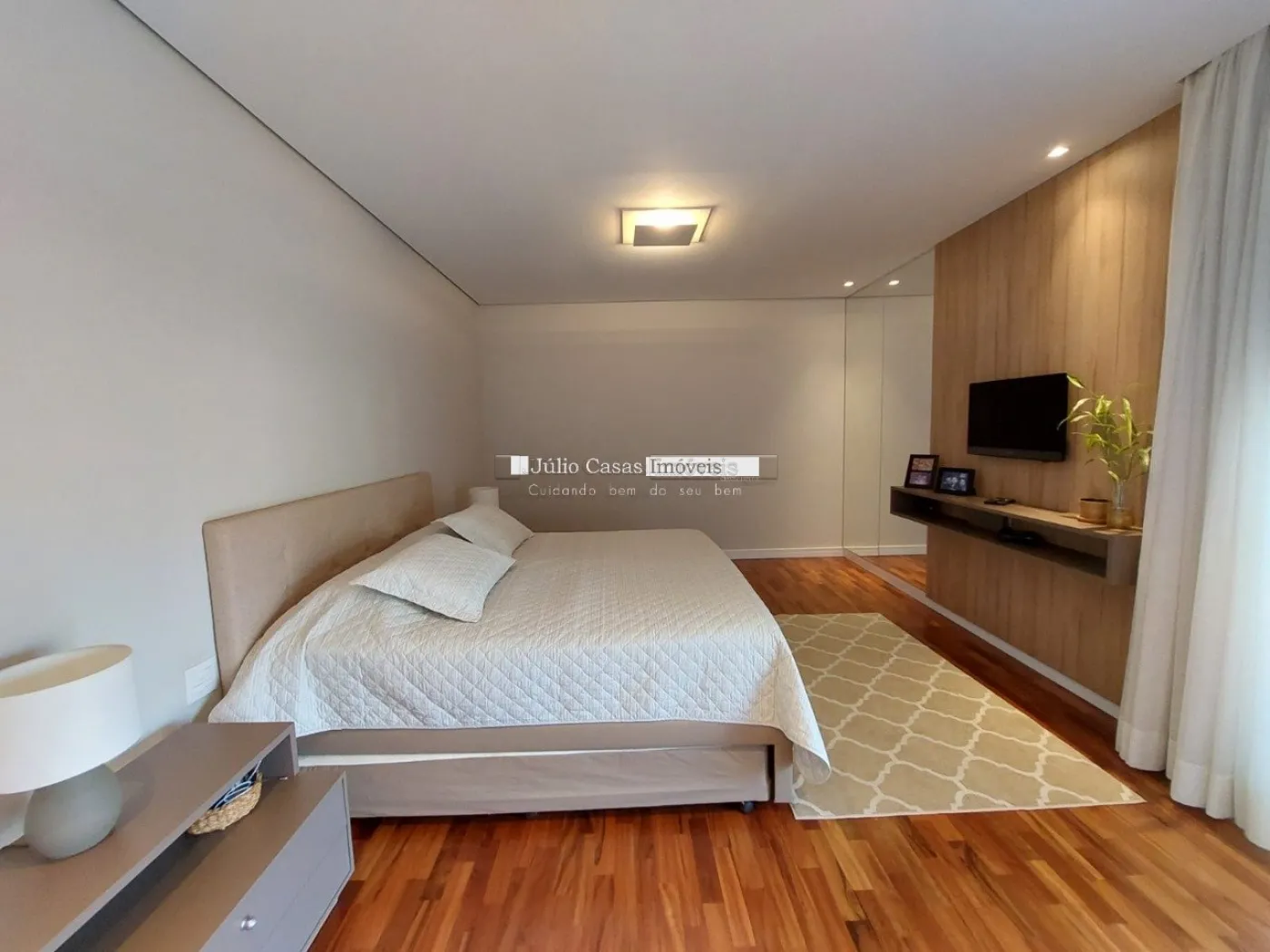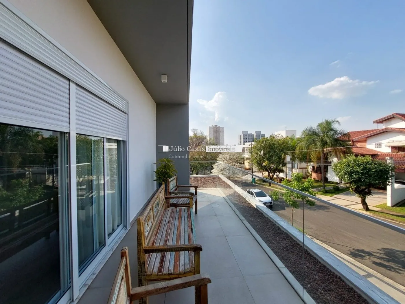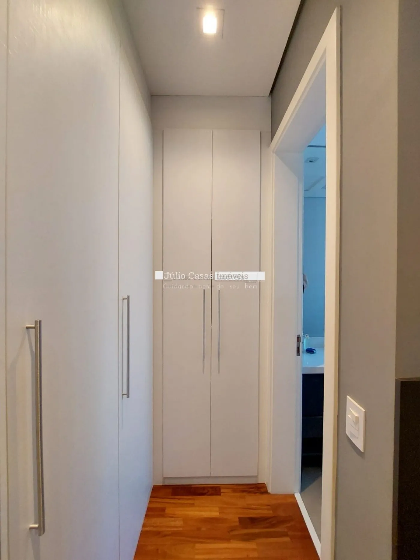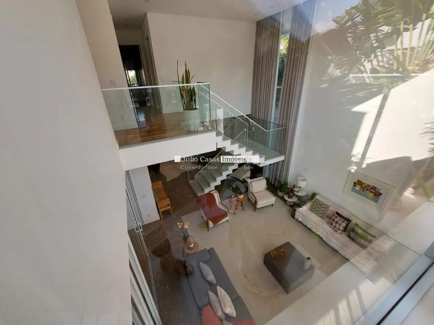 No andar superior, há três suítes amplas, sendo uma máster, além de uma ampla varanda, escritório e home theater com varanda. Todos os ambientes são modulados, com dormitórios em piso de madeira e os demais ambientes em porcelanato. A casa conta com seis vagas de garagem, sendo três cobertas.
