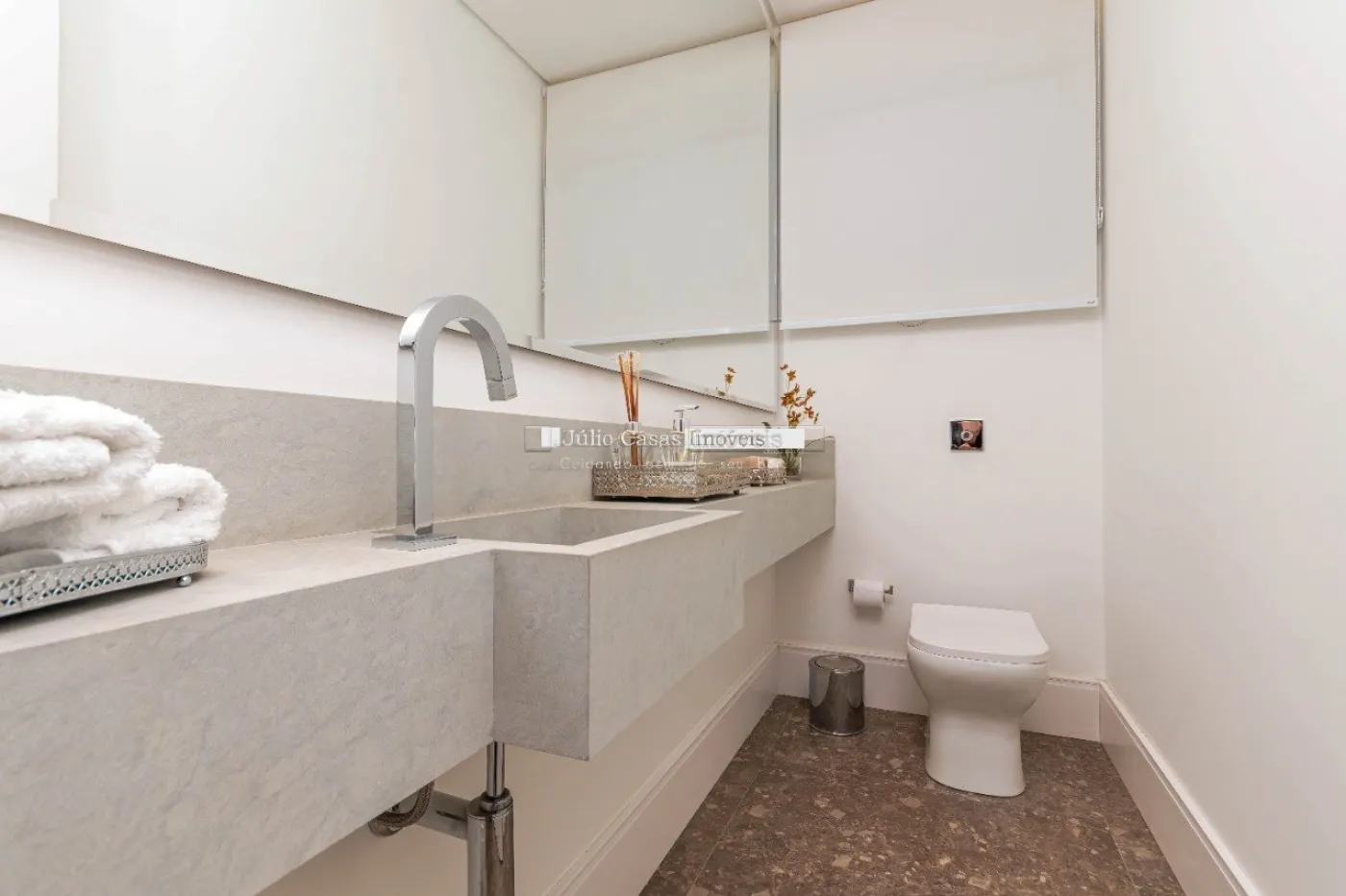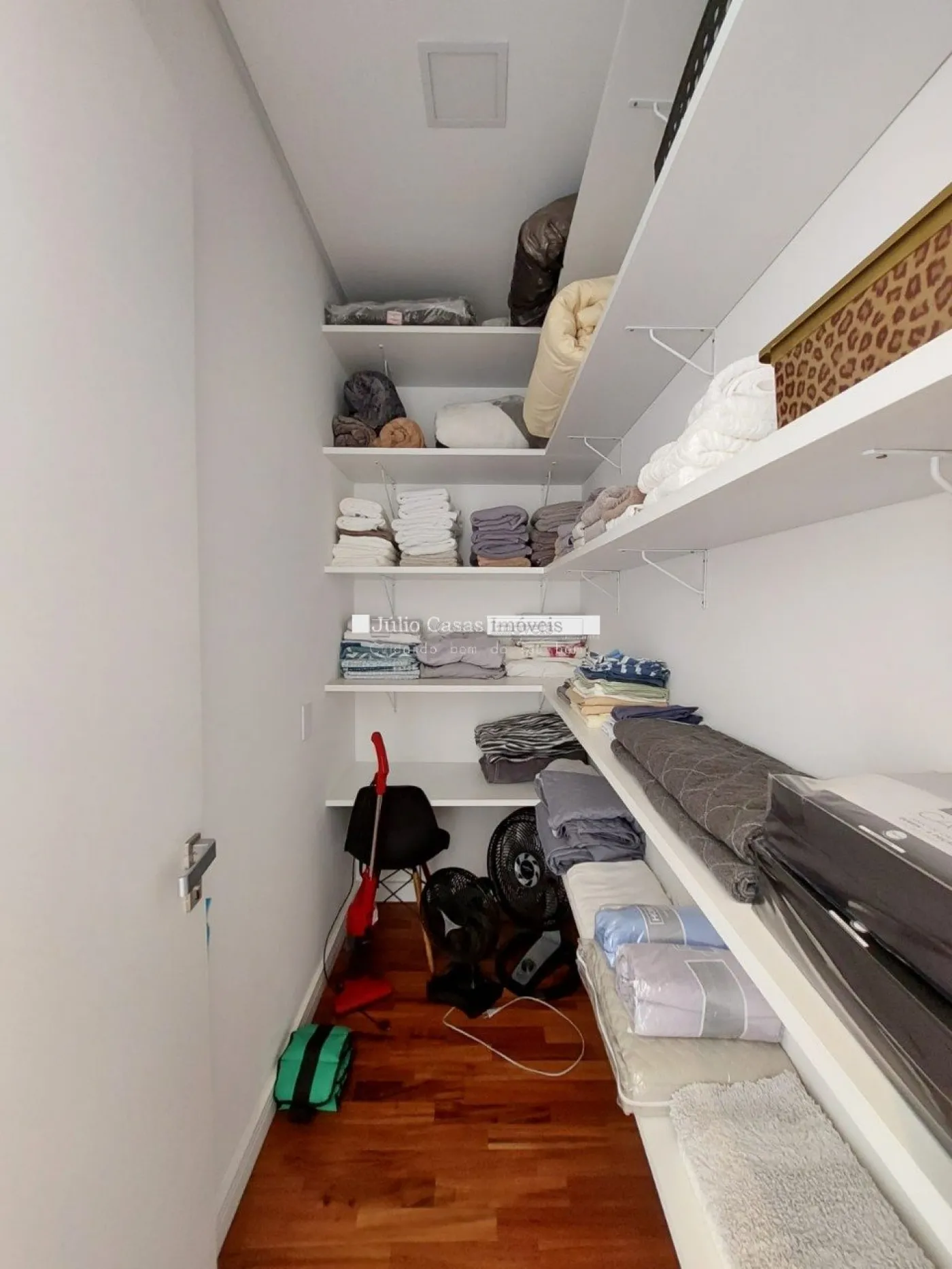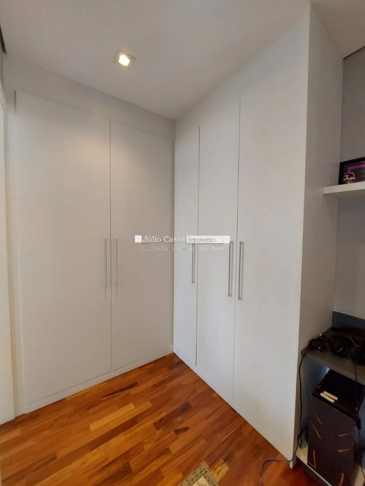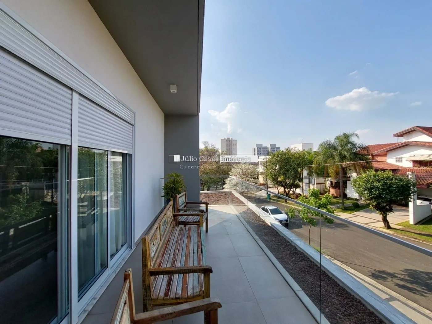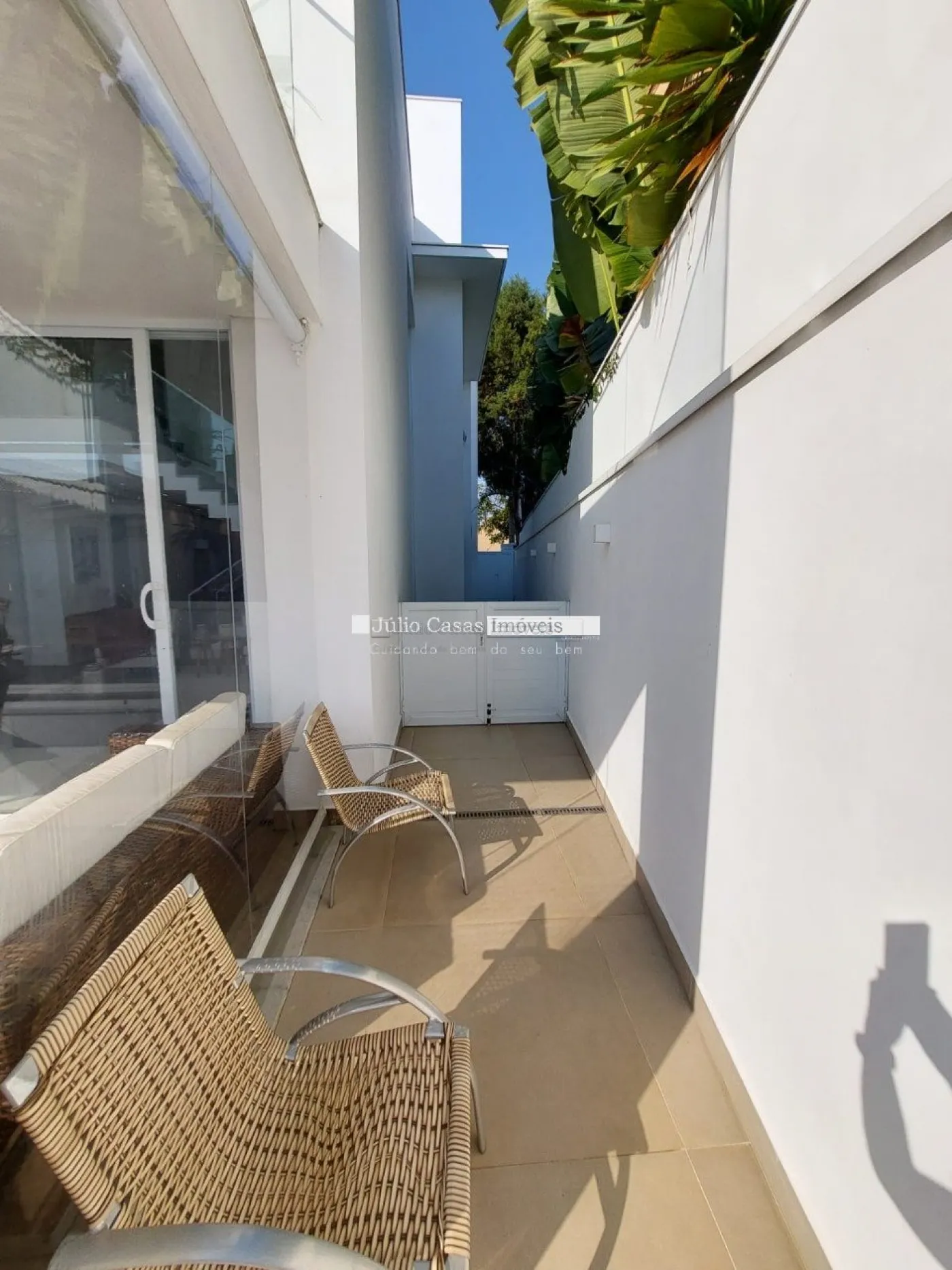 No andar superior, há três suítes amplas, sendo uma máster, além de uma ampla varanda, escritório e home theater com varanda. Todos os ambientes são modulados, com dormitórios em piso de madeira e os demais ambientes em porcelanato. A casa conta com seis vagas de garagem, sendo três cobertas.