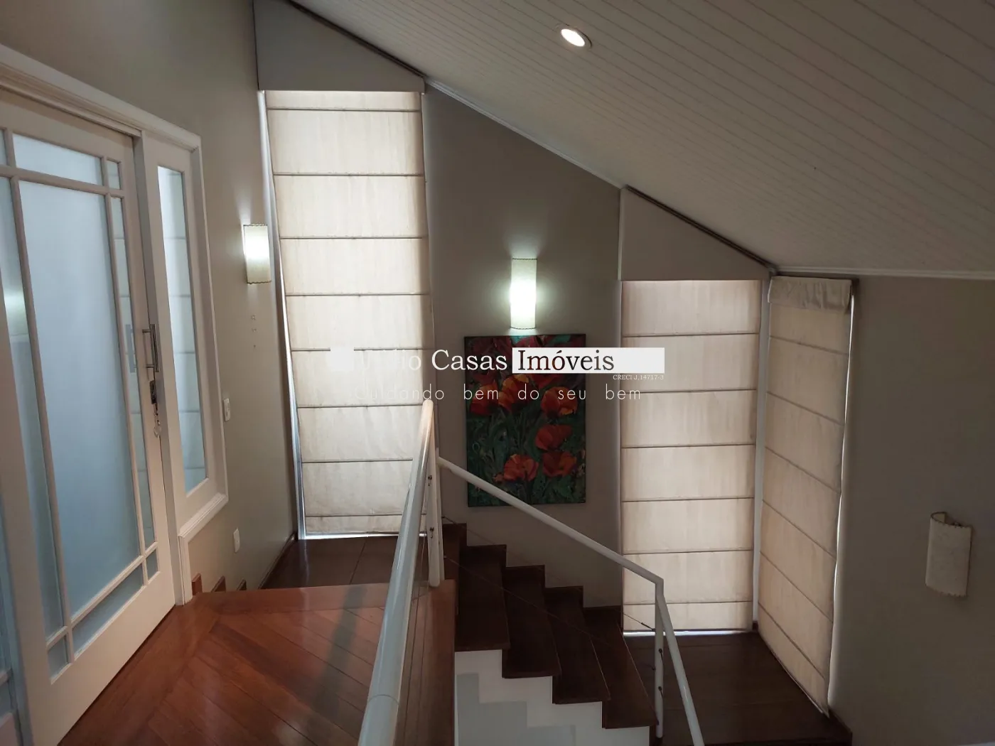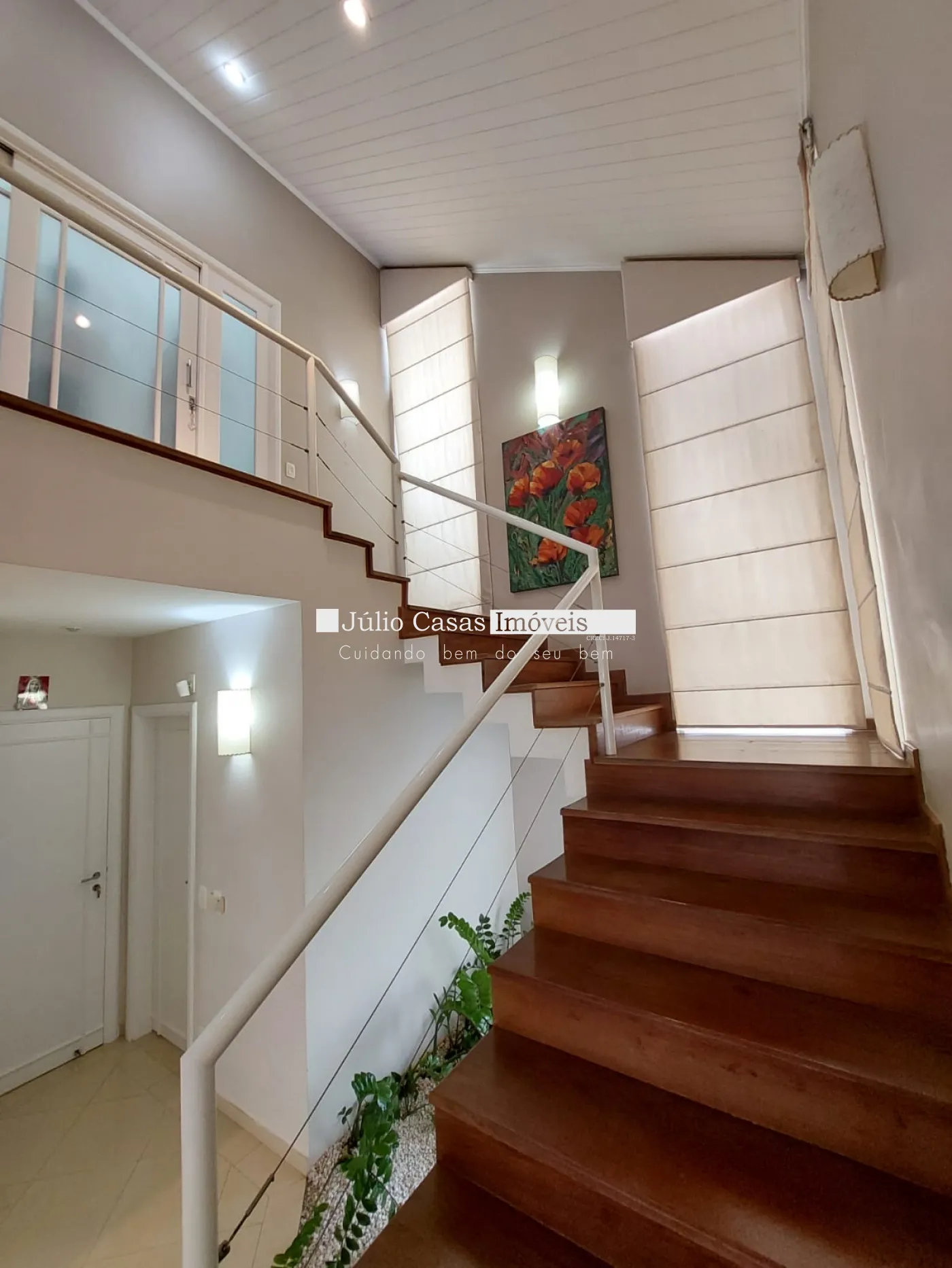 Escada de Madeira: Leva ao andar superior com uma sala íntima entre os quartos.
