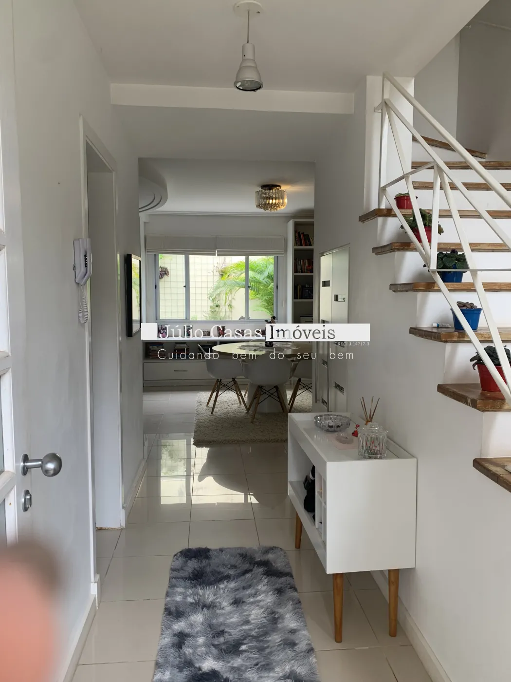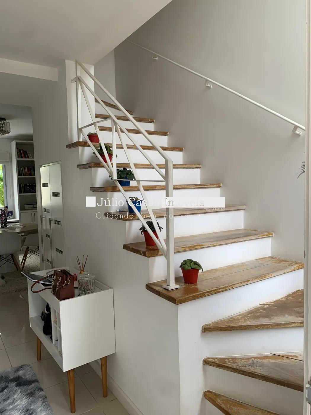 No andar superior, um hall íntimo com armários dá acesso a três suítes confortáveis, todas com modulados que otimizam o espaço.