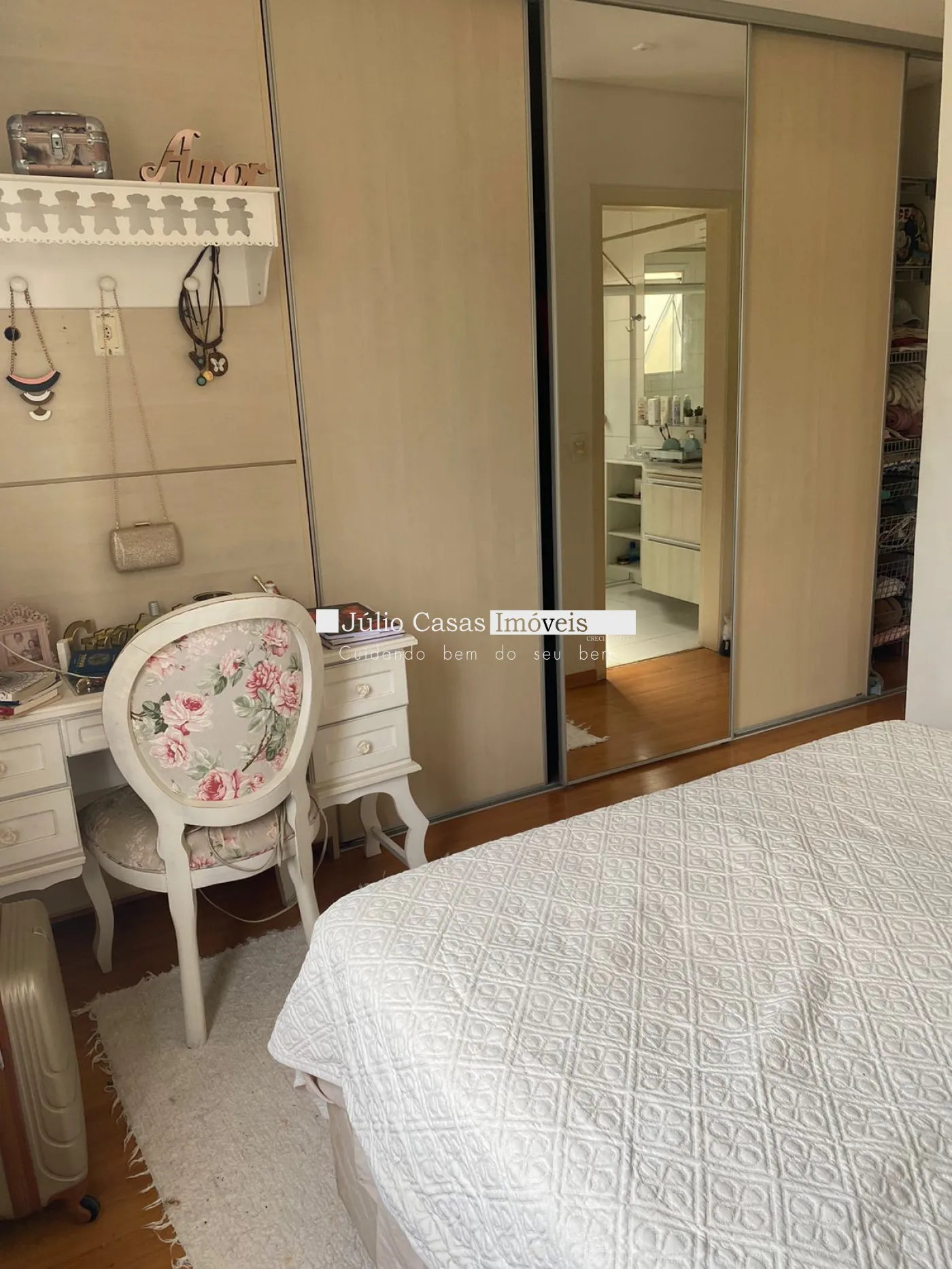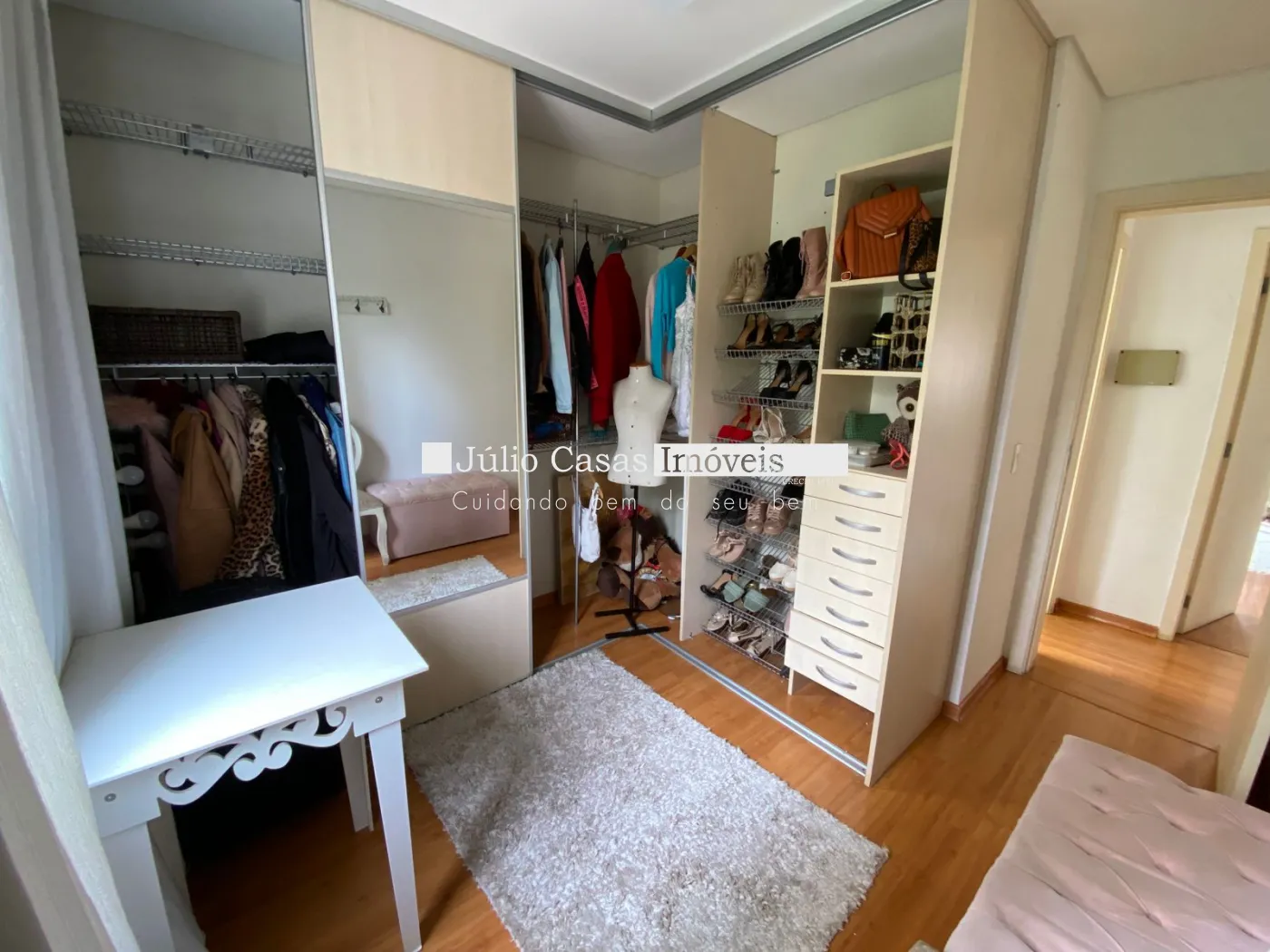 3 dormitórios modulados, 1 sendo suíte, e wc social com box em vidro. Dormitórios em pisos laminados.
