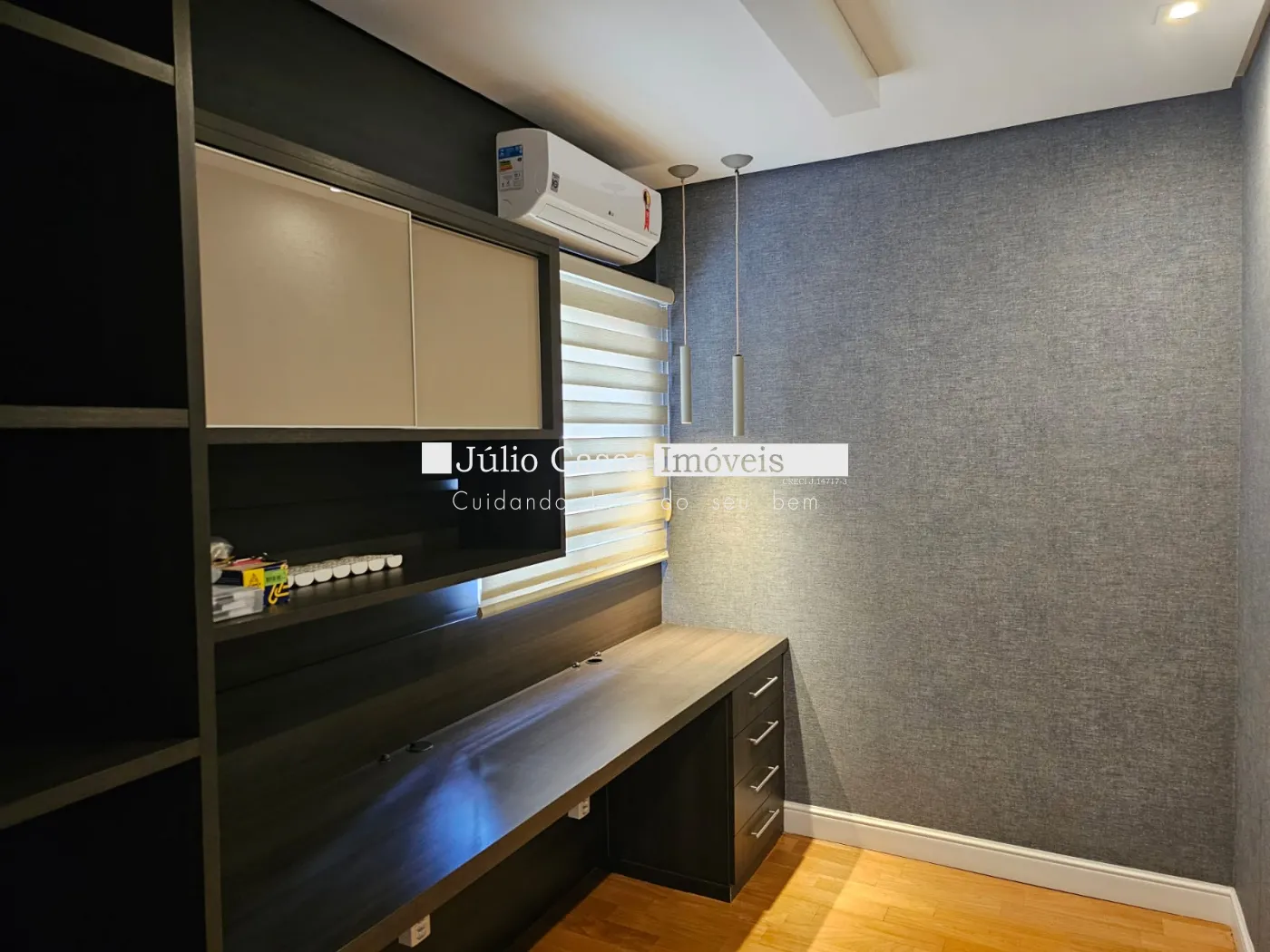 - Ampla Sala: Ambiente em três espaços integrados, com piso em porcelanato de alta qualidade, teto com gesso e luminárias embutidas, além de portas em vidro temperado que conectam a sala de jantar à área gourmet.