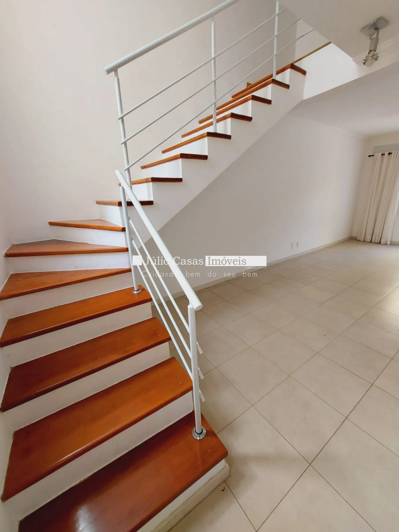 Andar superior com 3 quartos 1 sendo suíte e wc social.
