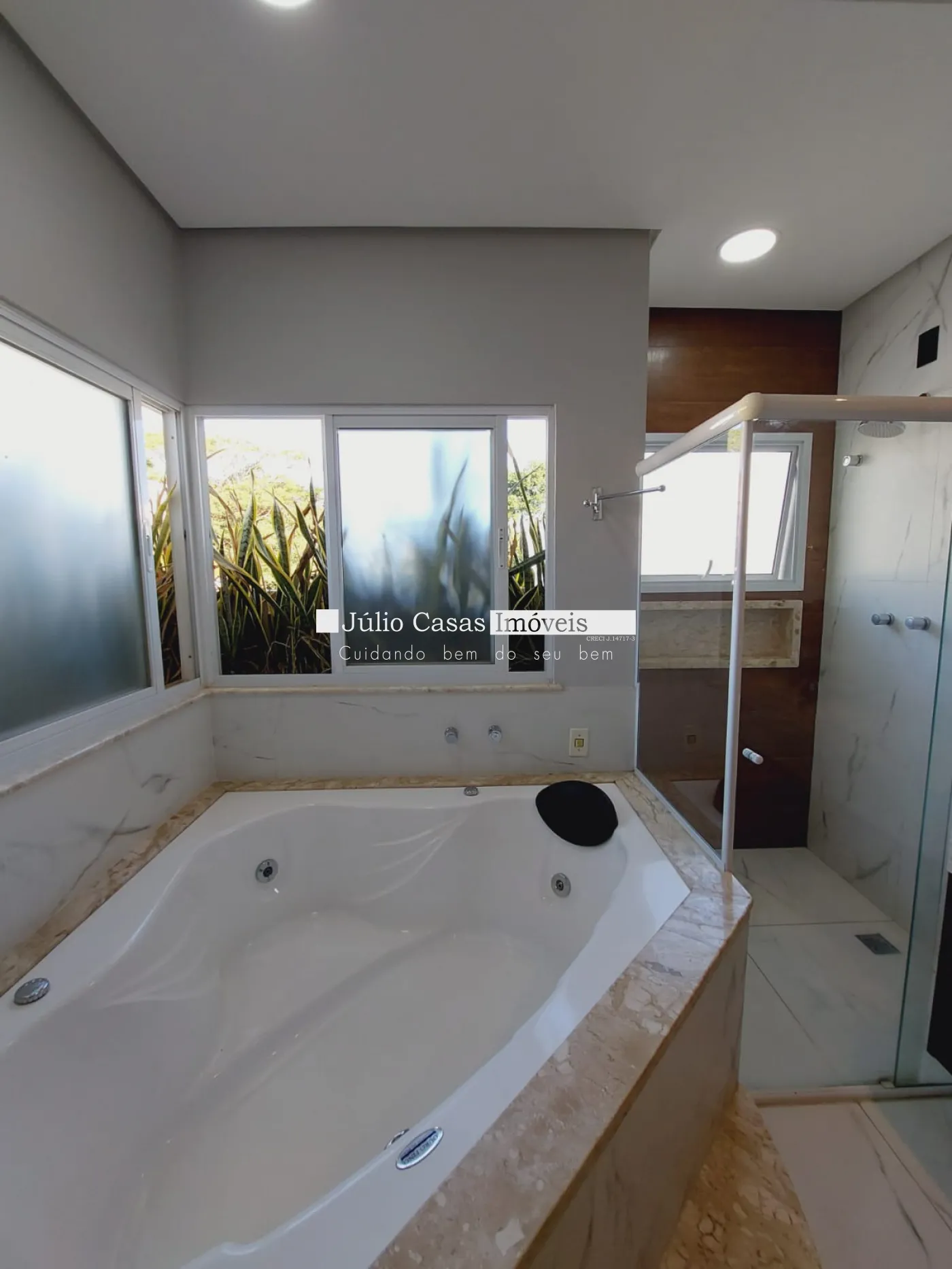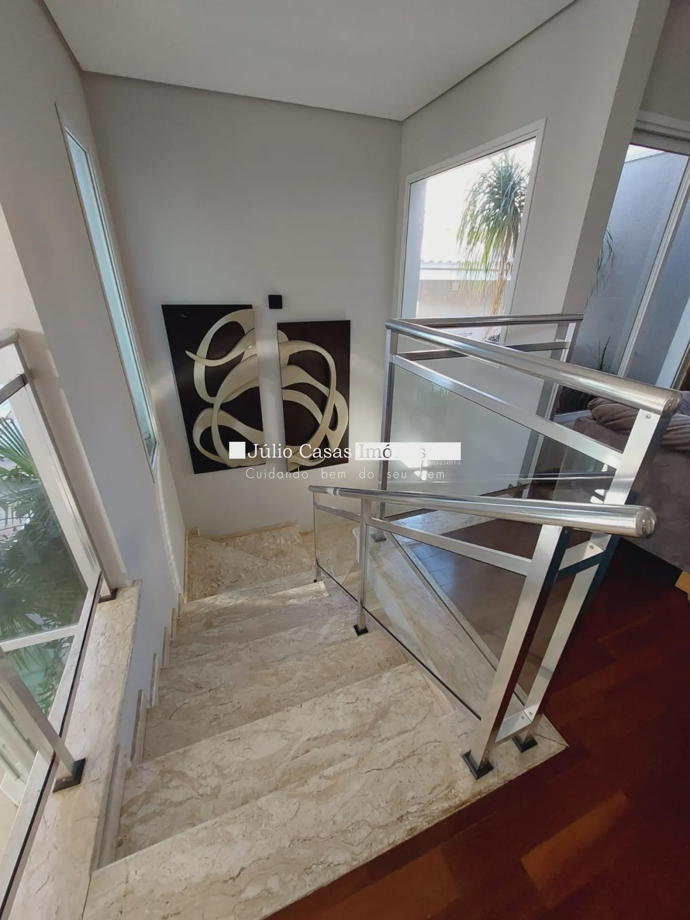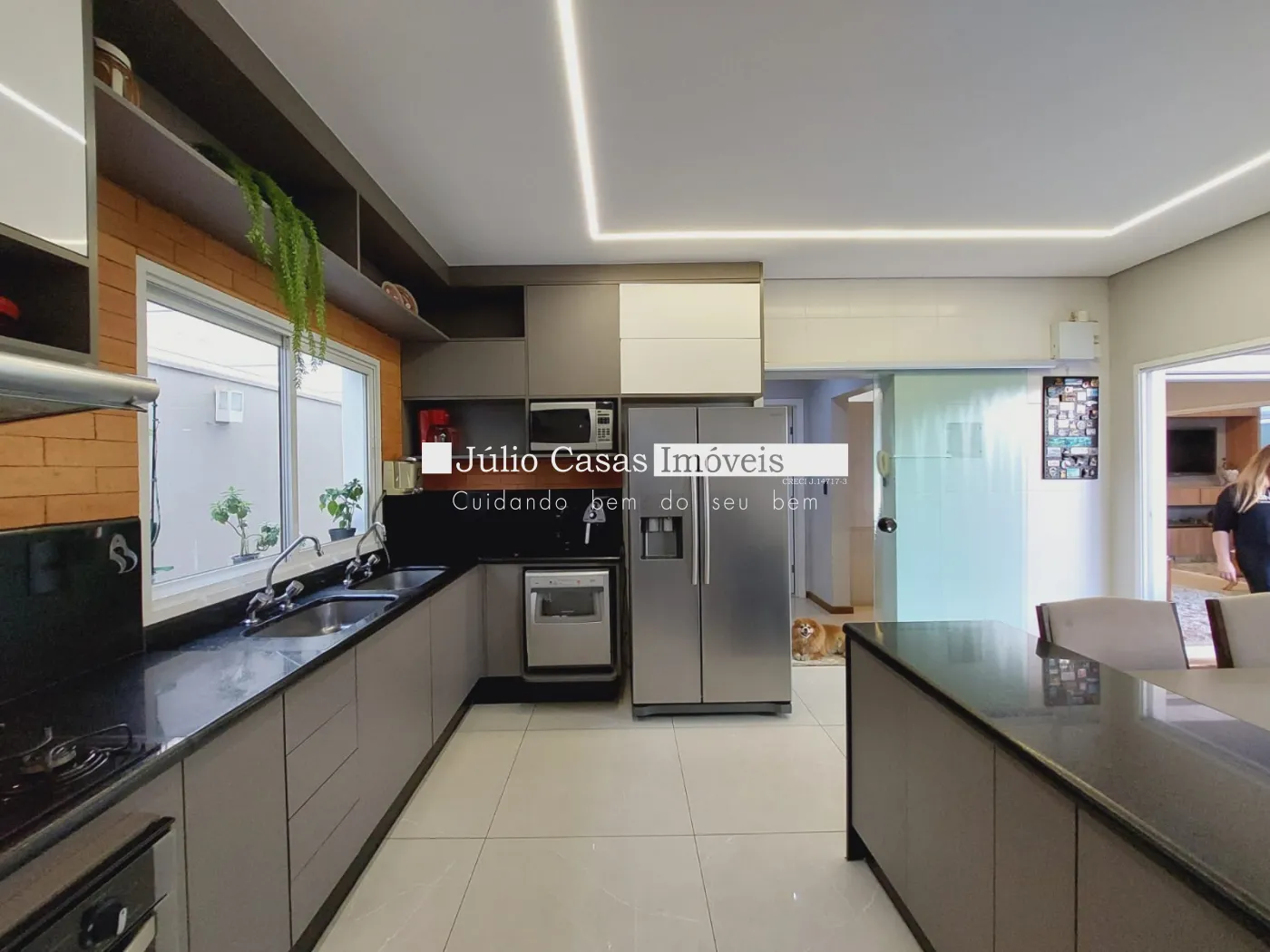 Casa sobrado em ótima localização no condomínio, excelente projeto. Na parte térrea, sala 03 ambientes sendo 01 com pd duplo, salas integradas porém bem divididas em sala de estar, jantar e tv. Suíte completa, lavabo, a sala de jantar integra ao espaço goumert, pelos fundos e lateral esquerda no lado direito com a cozinha. Bar montada com bancada de mesa para refeições, despensa, área de serviço isolada mas de fácil acesso pela cozinha. Suíte de empregada. Acabamentos em porcelanato bege 60x60 com papel de parede, rebaixo de gesso com detalhes em sanca e iluminação embutida, esquadrias de alumínio, painéis de mof na parede, armários modulados na cozinha, despensa e suíte de empregada. Varanda goumert com porcelanato churrasqueira, pia de frente para piscina com spa Na parte superior são 03 suítes com closet e varanda, piso assoalho de madeira, forro rebaixado em gesso com detalhes, iluminação embutida, ar condicionado, armários embutidos, sala íntima de tv com painel de mdf na parede, banheiros com box em vidro, bancadas em mármore travertino, cuba de sobrepor, metais e louças deca, forro rebaixado e luminárias, escada toda revestida em mármore crema marfil com acabamento , fachada com telhado aparente, vãos de vidro grande, casa recém reformada.