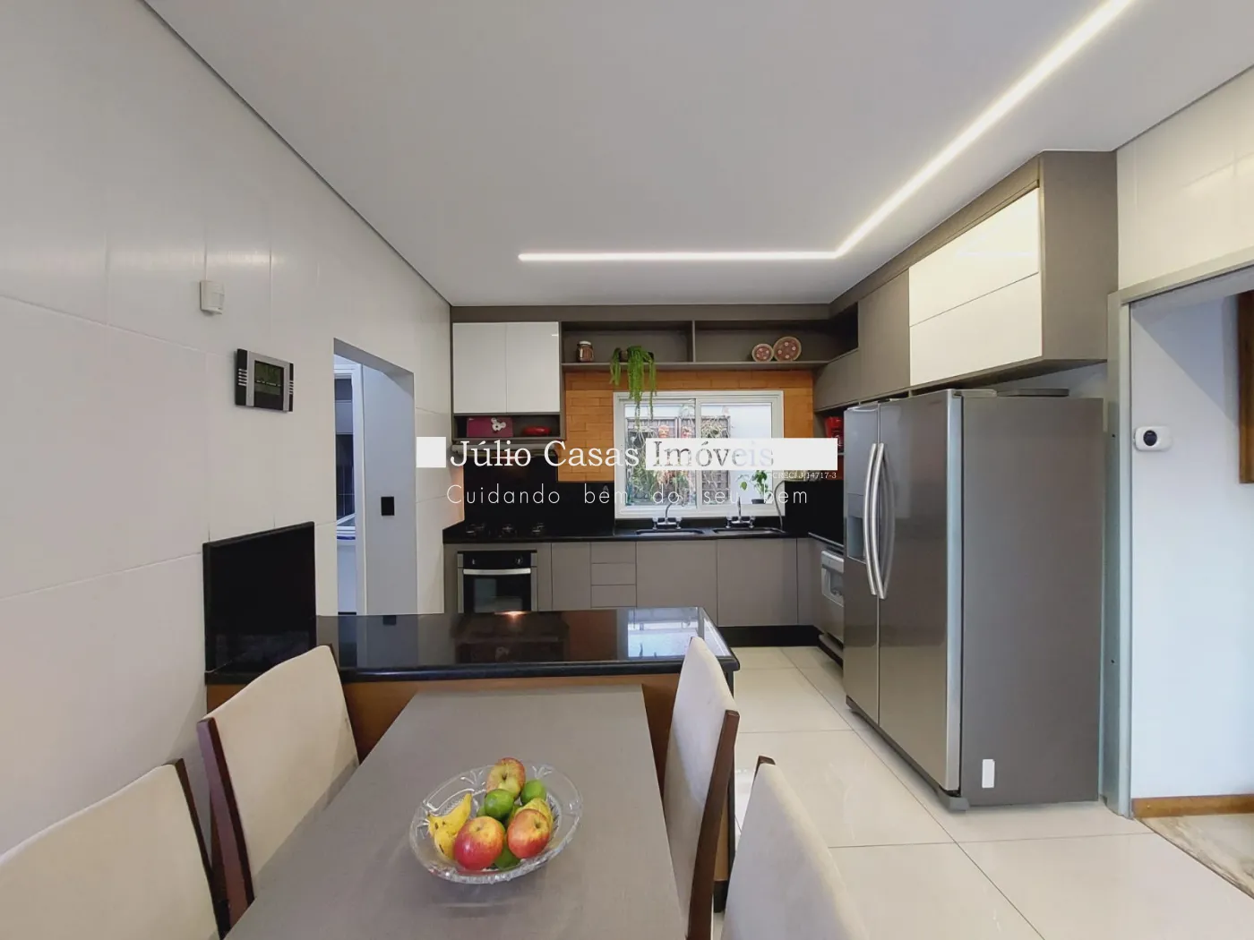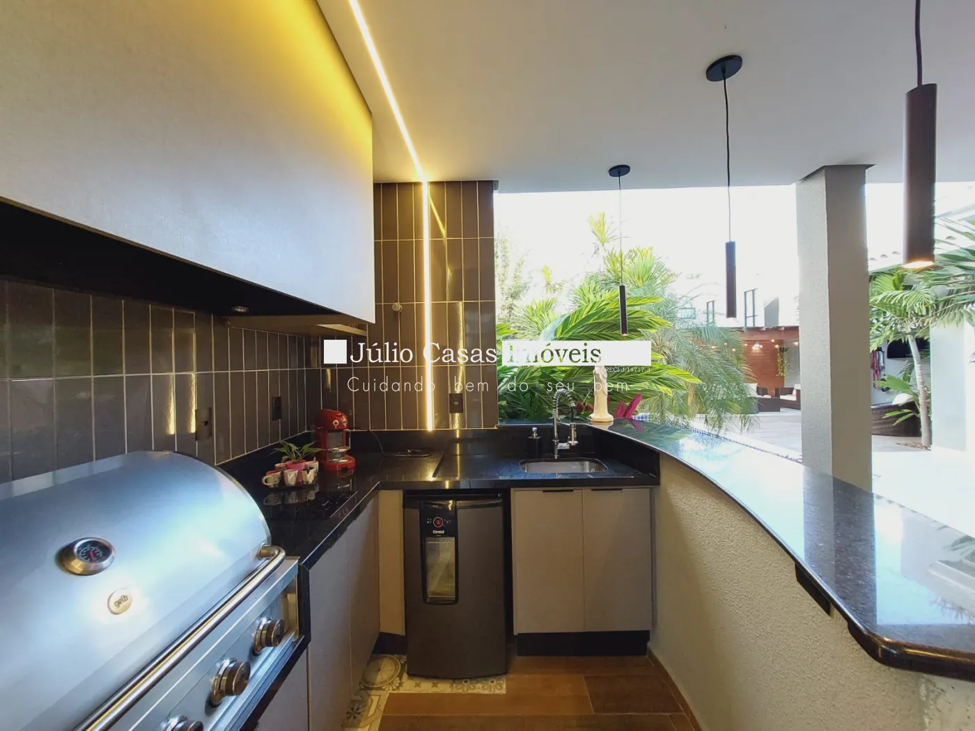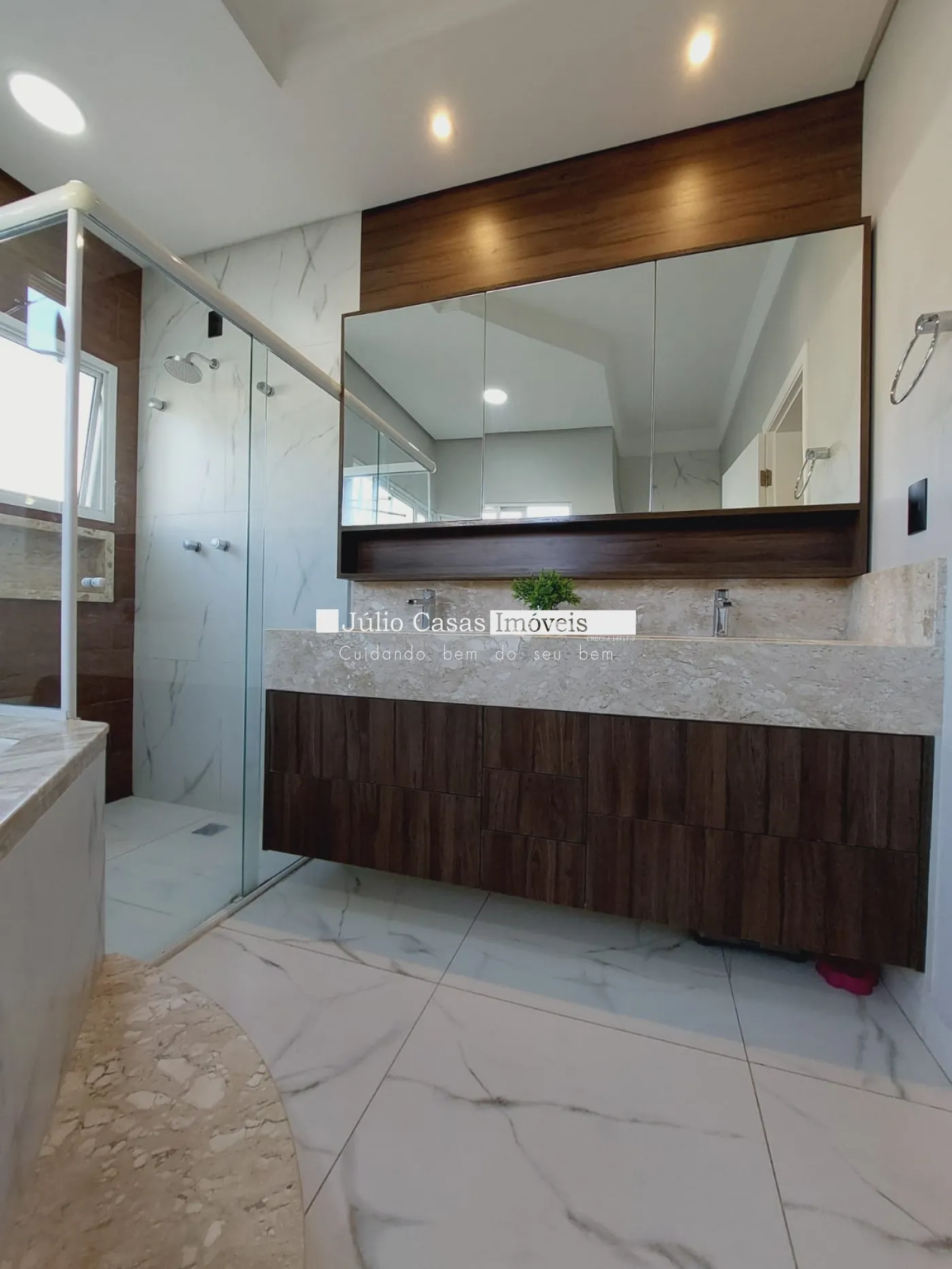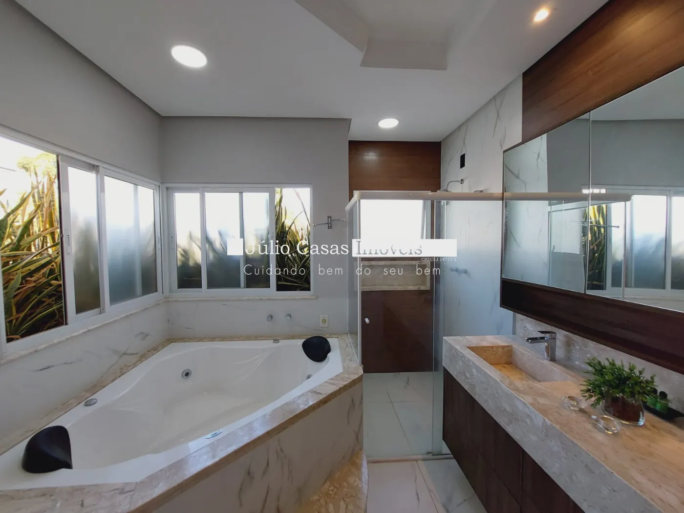 Casa sobrado em ótima localização no condomínio, excelente projeto. Na parte térrea, sala 03 ambientes sendo 01 com pd duplo, salas integradas porém bem divididas em sala de estar, jantar e tv. Suíte completa, lavabo, a sala de jantar integra ao espaço goumert, pelos fundos e lateral esquerda no lado direito com a cozinha. Bar montada com bancada de mesa para refeições, despensa, área de serviço isolada mas de fácil acesso pela cozinha. Suíte de empregada. Acabamentos em porcelanato bege 60x60 com papel de parede, rebaixo de gesso com detalhes em sanca e iluminação embutida, esquadrias de alumínio, painéis de mof na parede, armários modulados na cozinha, despensa e suíte de empregada. Varanda goumert com porcelanato churrasqueira, pia de frente para piscina com spa Na parte superior são 03 suítes com closet e varanda, piso assoalho de madeira, forro rebaixado em gesso com detalhes, iluminação embutida, ar condicionado, armários embutidos, sala íntima de tv com painel de mdf na parede, banheiros com box em vidro, bancadas em mármore travertino, cuba de sobrepor, metais e louças deca, forro rebaixado e luminárias, escada toda revestida em mármore crema marfil com acabamento , fachada com telhado aparente, vãos de vidro grande, casa recém reformada.
