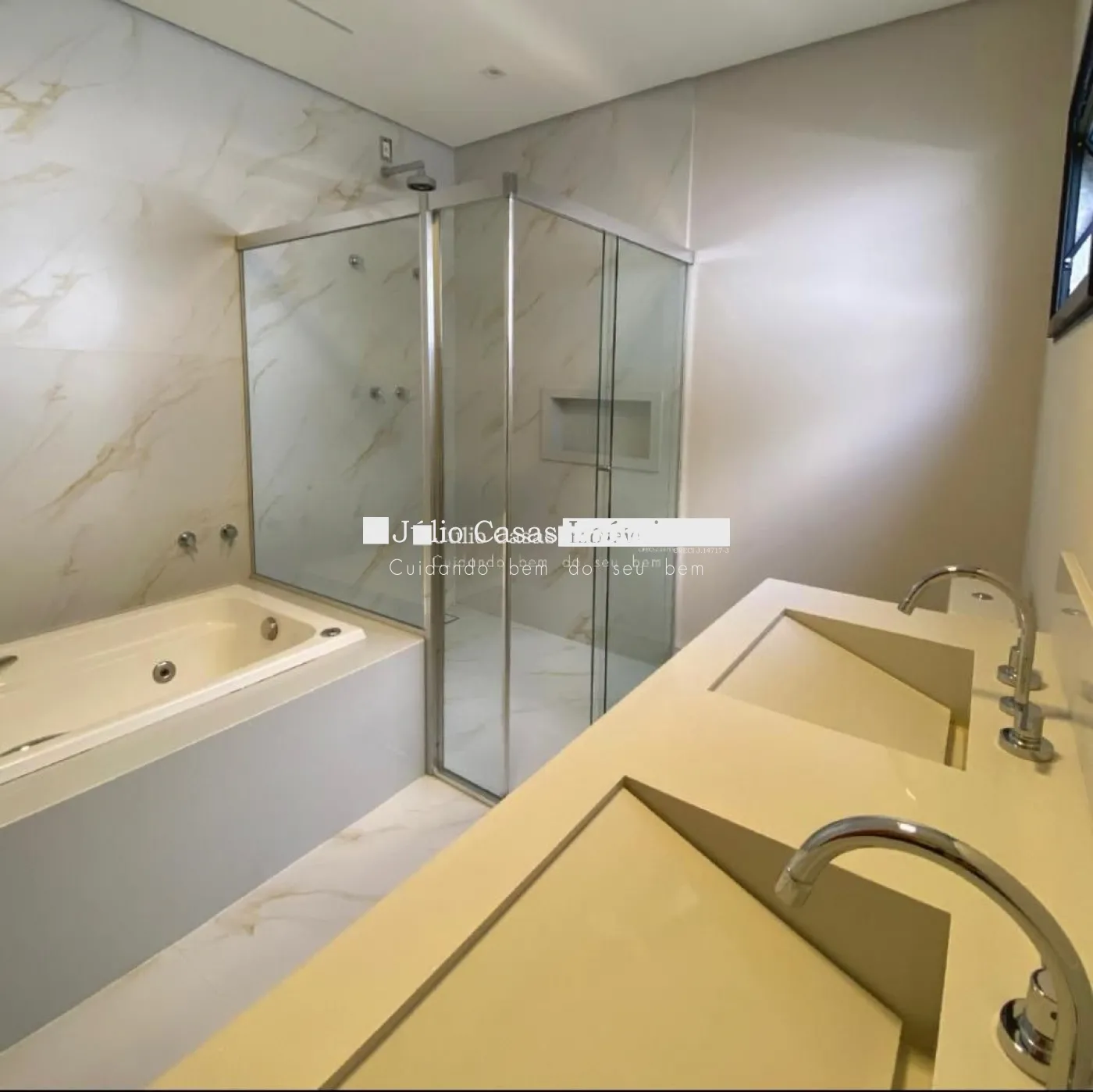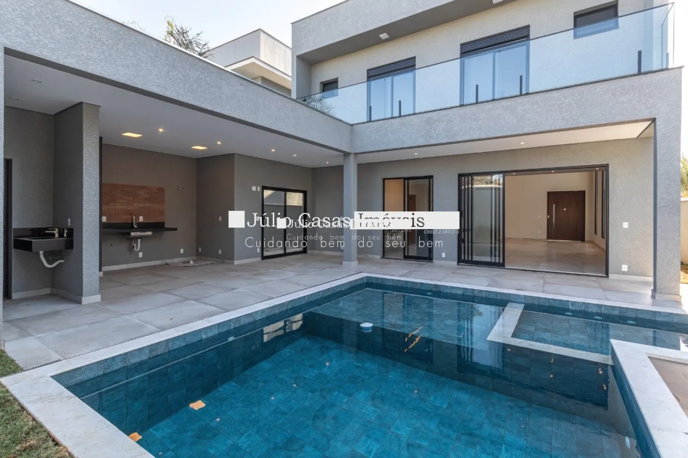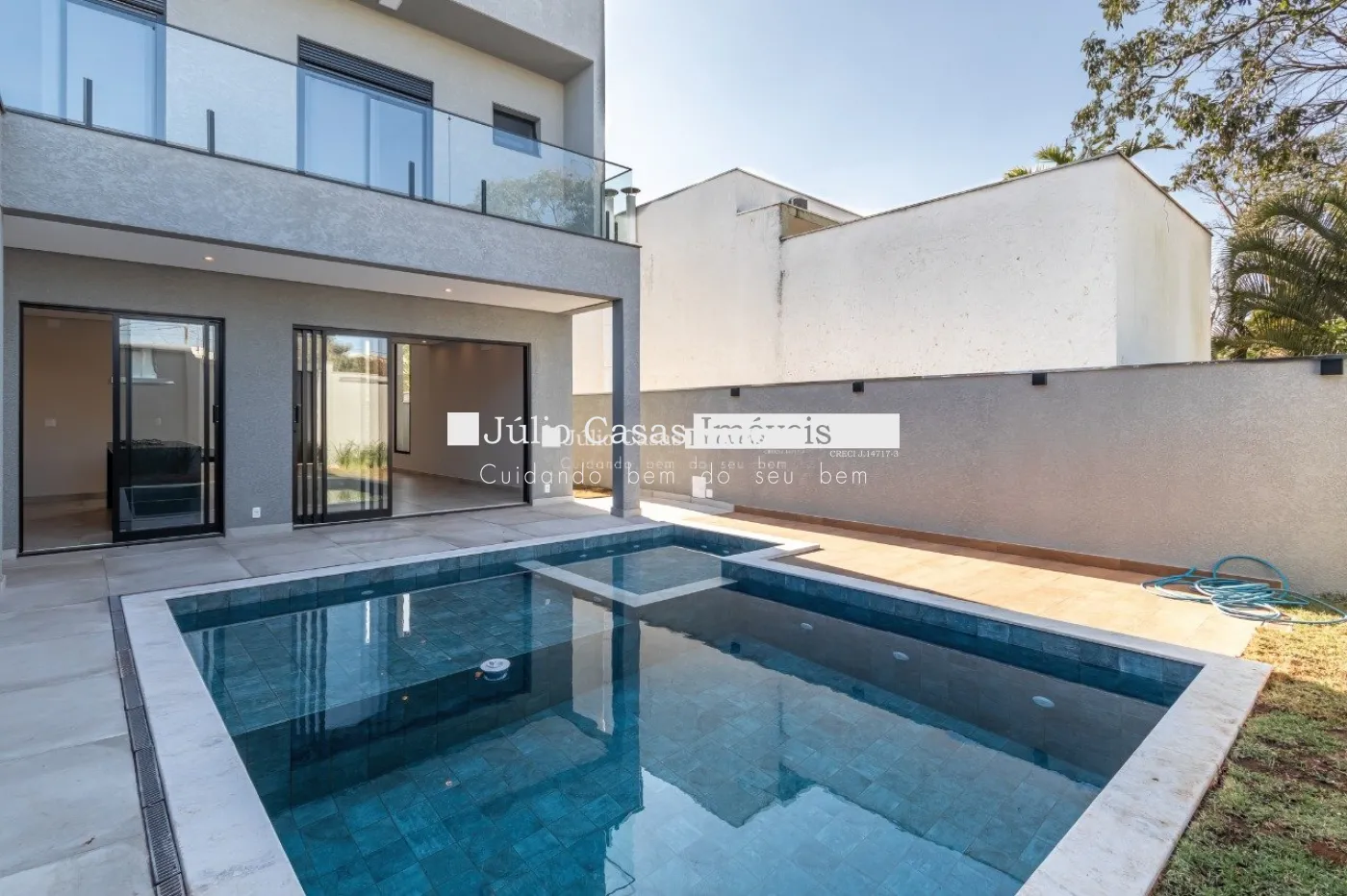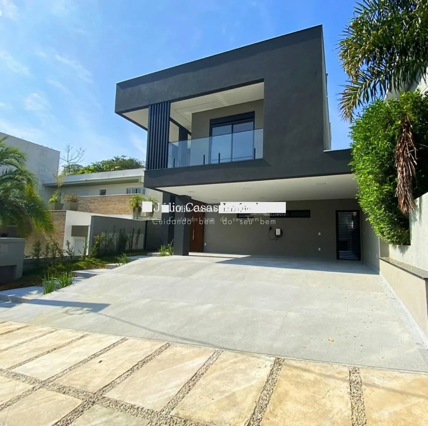 Sobrado com sala de estar com pé direito duplo, sala de jantar e cozinha (com ilha, cooktop e coifa) integrada com área gourmet, lavabo, escritório (podendo ser revertido para uma suíte no piso inferior, área de lazer com piscina com prainha, hidro, iluminação e preparação para aquecimento.