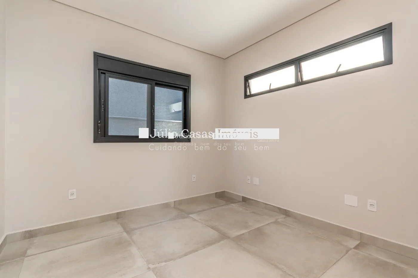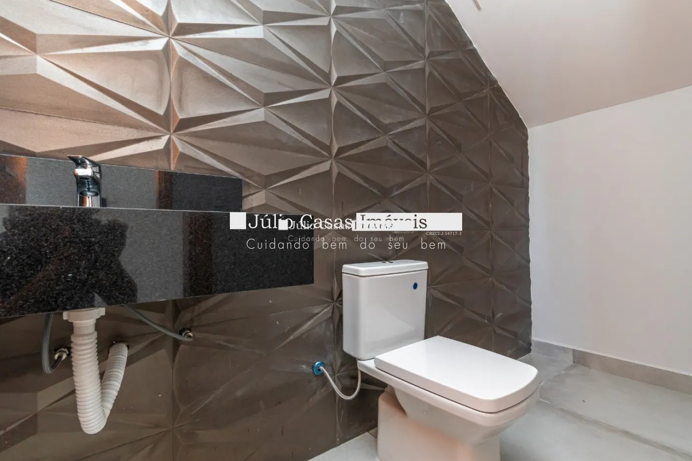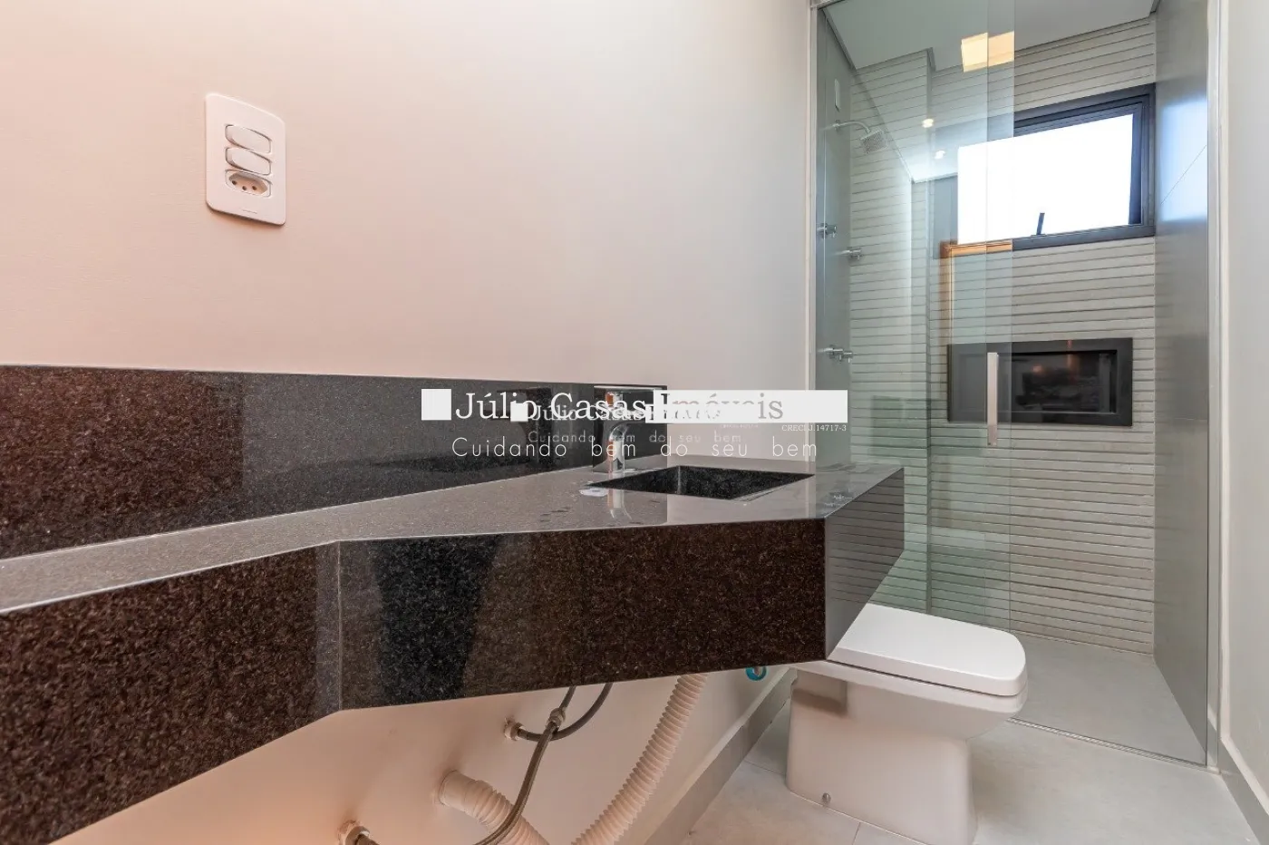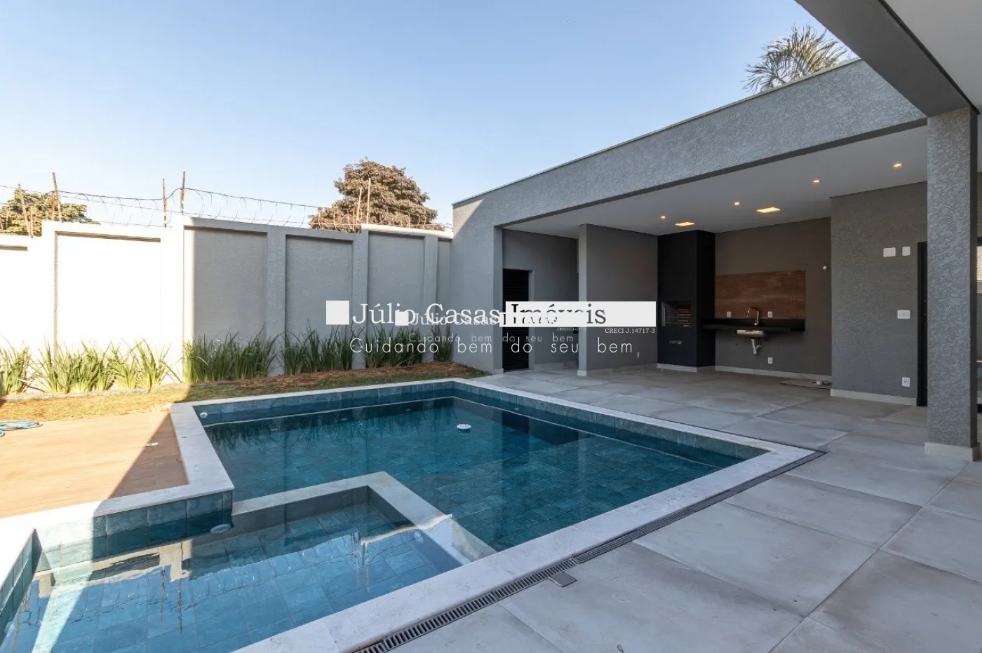 Sobrado com sala de estar com pé direito duplo, sala de jantar e cozinha (com ilha, cooktop e coifa) integrada com área gourmet, lavabo, escritório (podendo ser revertido para uma suíte no piso inferior, área de lazer com piscina com prainha, hidro, iluminação e preparação para aquecimento.