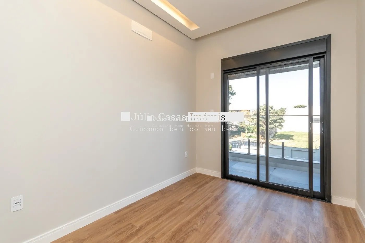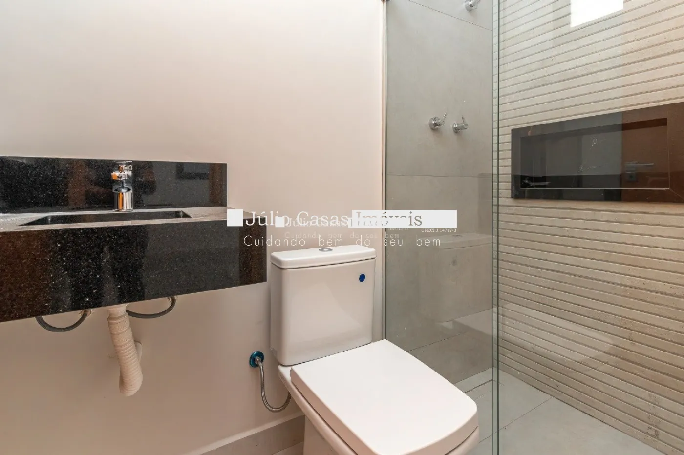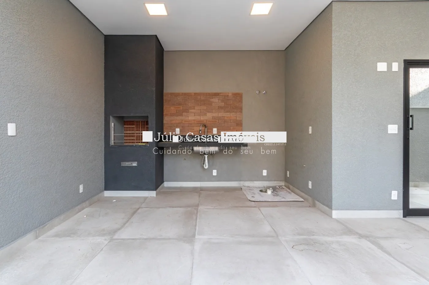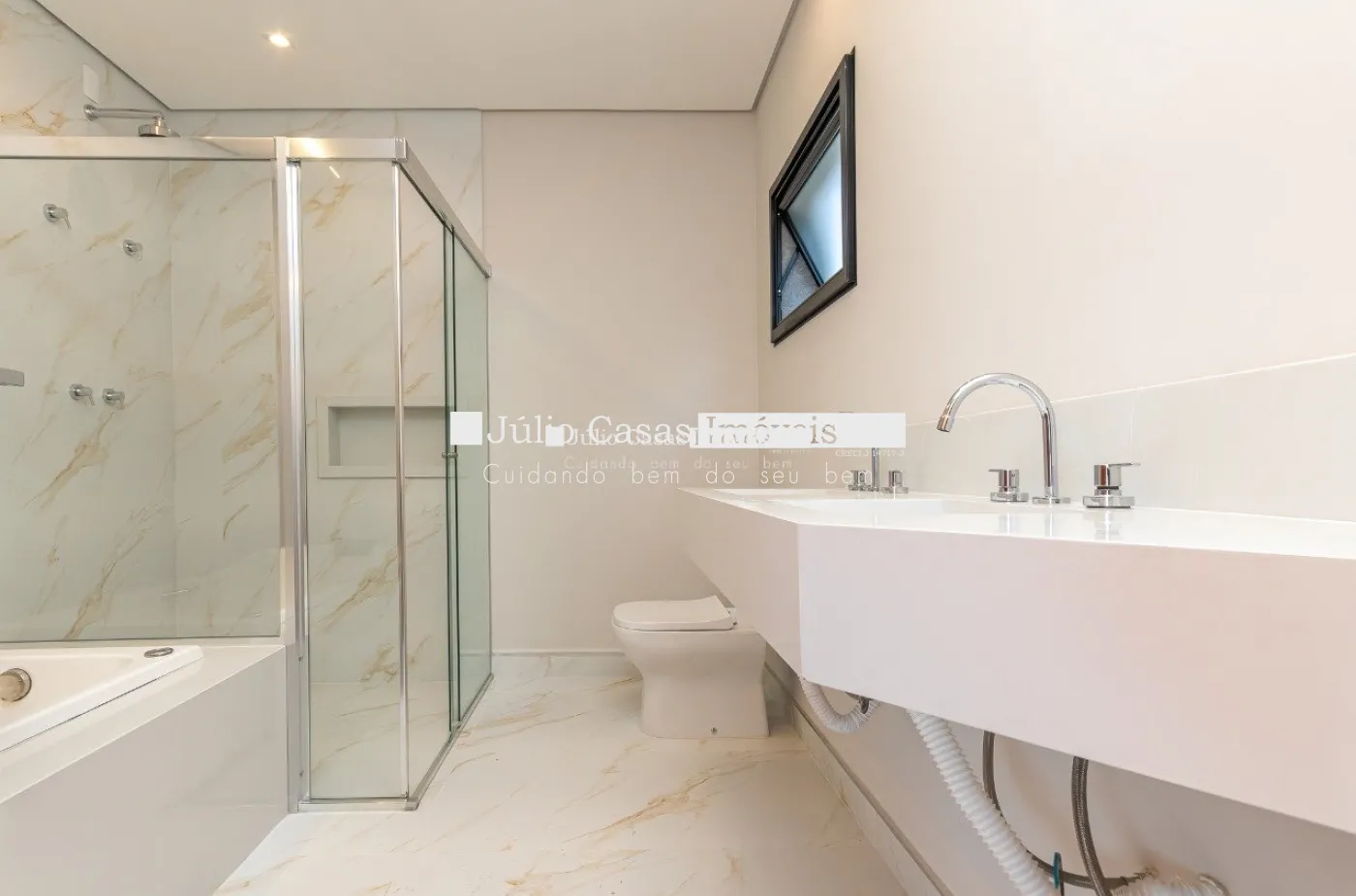 Sobrado com sala de estar com pé direito duplo, sala de jantar e cozinha (com ilha, cooktop e coifa) integrada com área gourmet, lavabo, escritório (podendo ser revertido para uma suíte no piso inferior, área de lazer com piscina com prainha, hidro, iluminação e preparação para aquecimento.