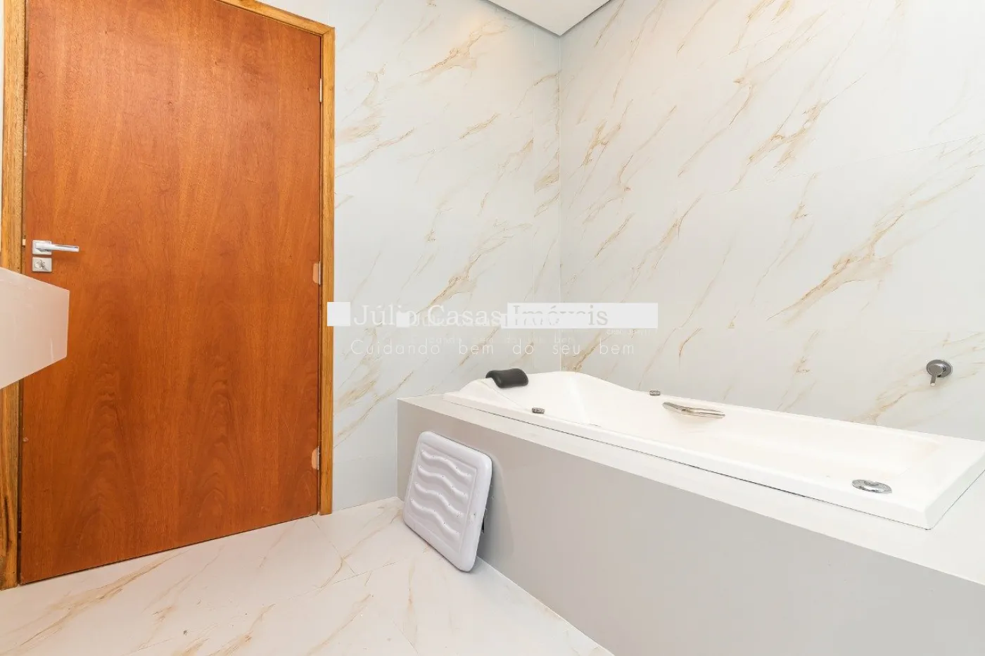 Piso superior 03 suítes sendo uma master, casa possui aquecimento de água com placas solares e preparação para instalação de geração de energia solar, preparação para ar-condicionado (suítes, escritório, sala de estar e jantar), acabamento de primeira linha.
