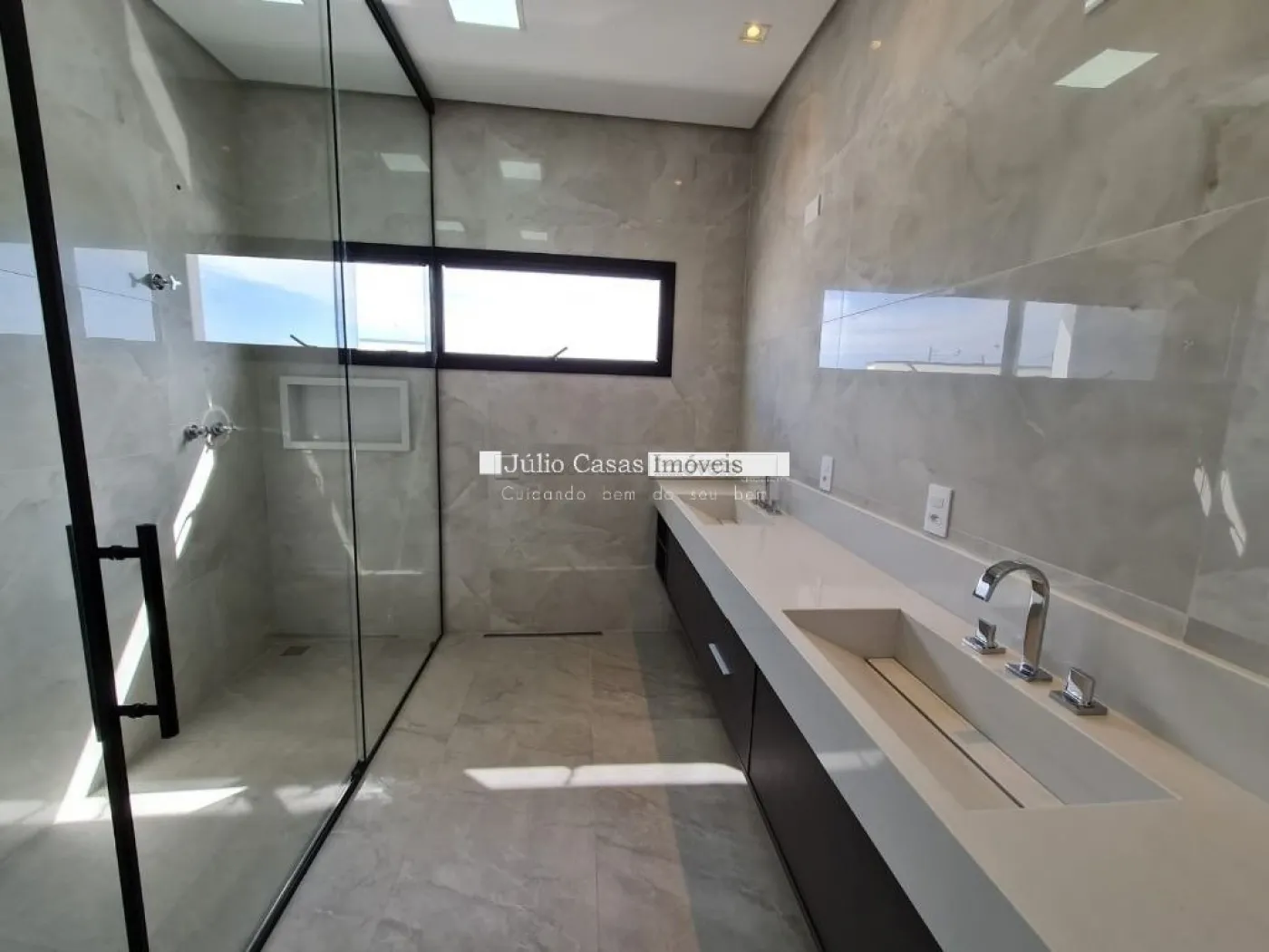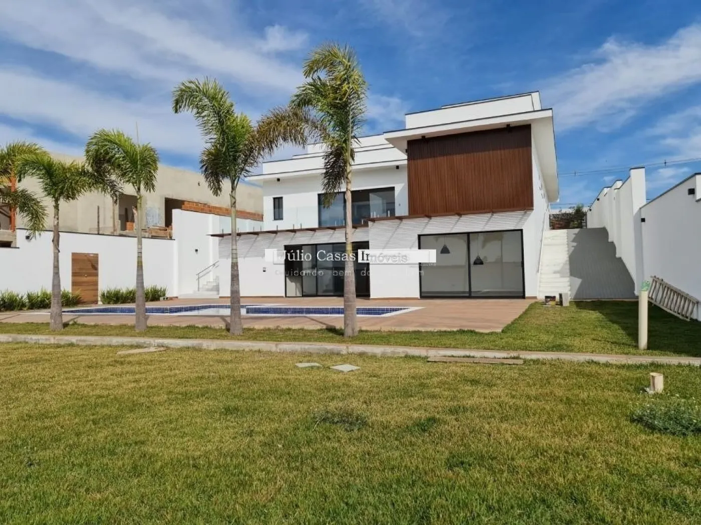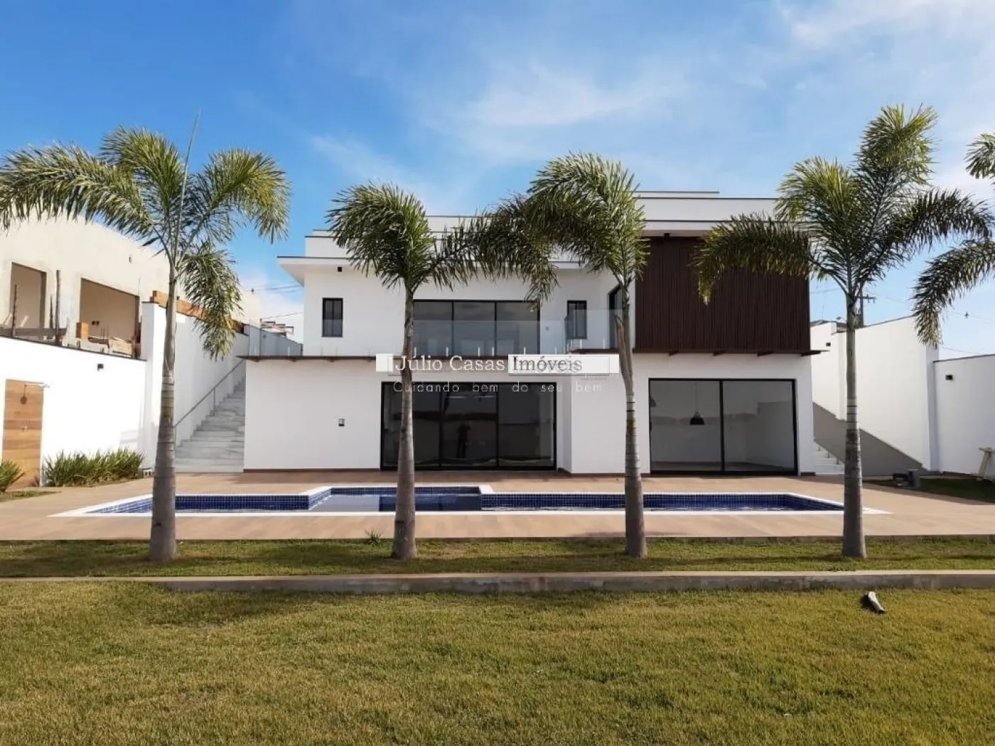 Casa em condomínio de alto padrão, Sala 4 ambientes com pé direito duplo, lavabo, escritório com entrada independente, cozinha integrada com a sala, área gourmet em estilo aberto, modulados, pia e bancada em granito, lavanderia com área externa privativa, área gourmet com pia de apoio, churrasqueira e forno, piscina climatizada, com raia e prainha, playground, pomar, sauna integrada a piscina, academia de ginastica, jardim. Aquecimento solar, cisterna, sistema de energia fotovoltaico, andar superior com ampla brinquedoteca, suíte máster com closet amplo, e mezanino com hidromassagem, 3 suítes com closet, todas com mezanino. Toda a casa com piso Portobello, e todos os ambientes modulados. Garagem para 3 veículos cobertos e 3 descobertos. Estamos à disposição para te atender. Gostaria saber mais informações deste imóvel ou agendar uma visita?