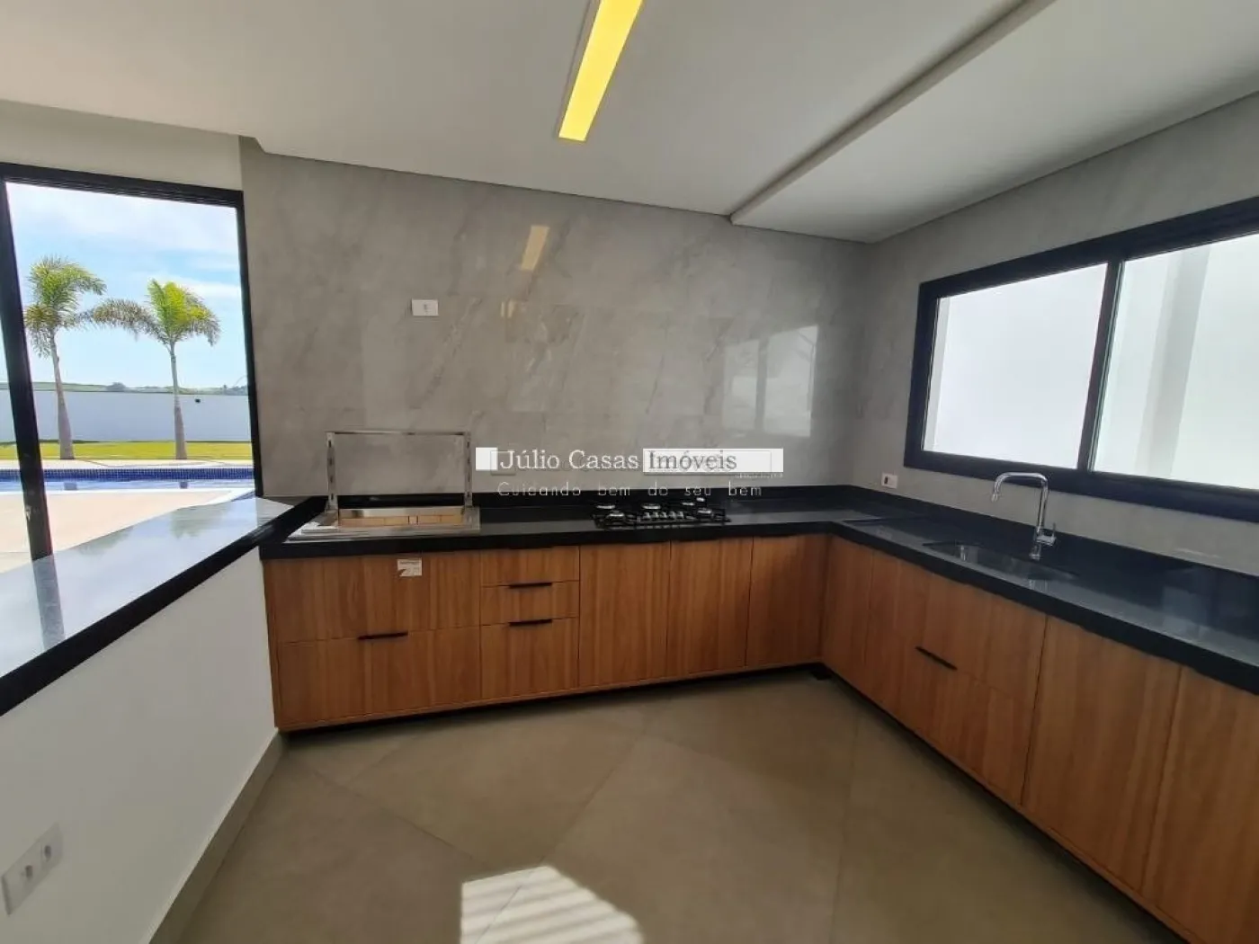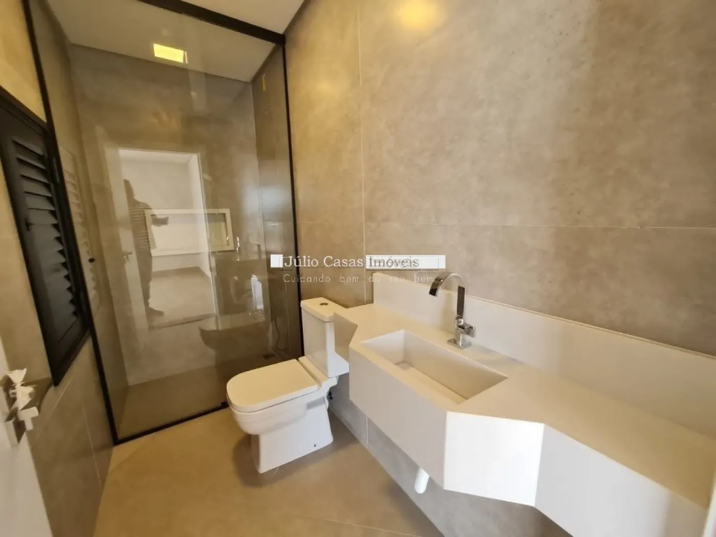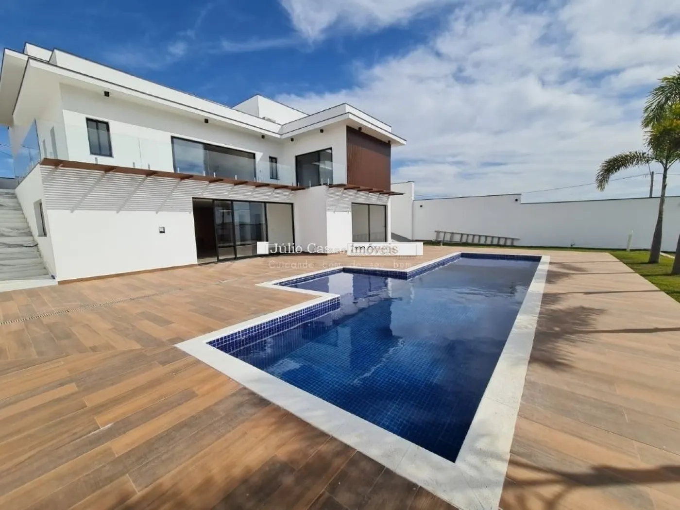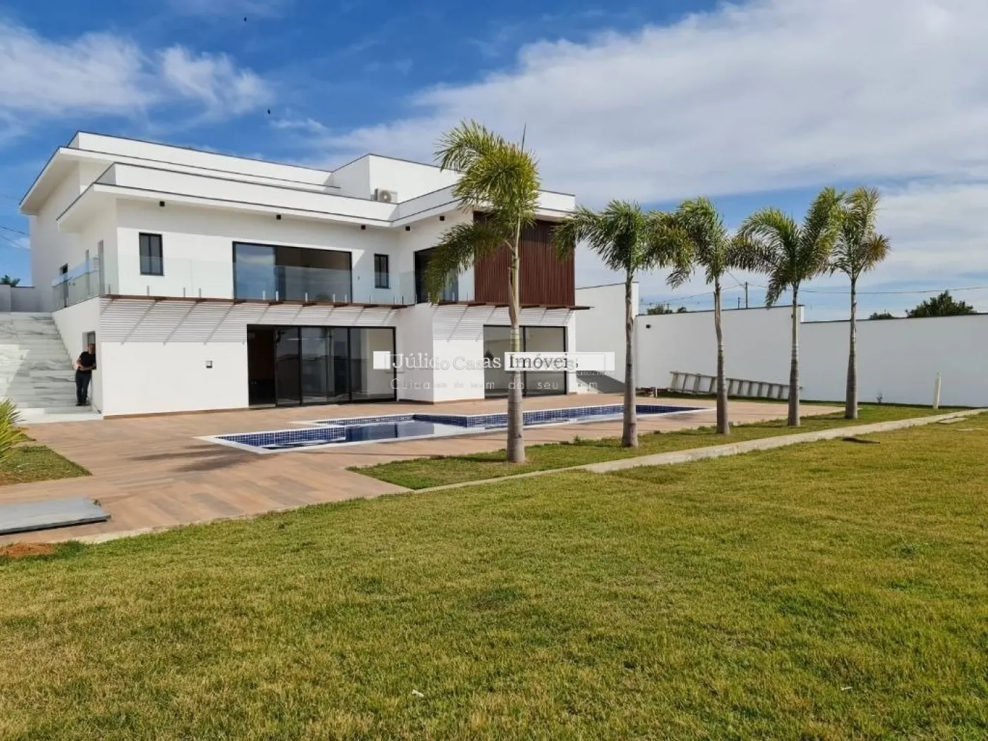 Casa em condomínio de alto padrão, Sala 4 ambientes com pé direito duplo, lavabo, escritório com entrada independente, cozinha integrada com a sala, área gourmet em estilo aberto, modulados, pia e bancada em granito, lavanderia com área externa privativa, área gourmet com pia de apoio, churrasqueira e forno, piscina climatizada, com raia e prainha, playground, pomar, sauna integrada a piscina, academia de ginastica, jardim. Aquecimento solar, cisterna, sistema de energia fotovoltaico, andar superior com ampla brinquedoteca, suíte máster com closet amplo, e mezanino com hidromassagem, 3 suítes com closet, todas com mezanino. Toda a casa com piso Portobello, e todos os ambientes modulados. Garagem para 3 veículos cobertos e 3 descobertos. Estamos à disposição para te atender. Gostaria saber mais informações deste imóvel ou agendar uma visita?