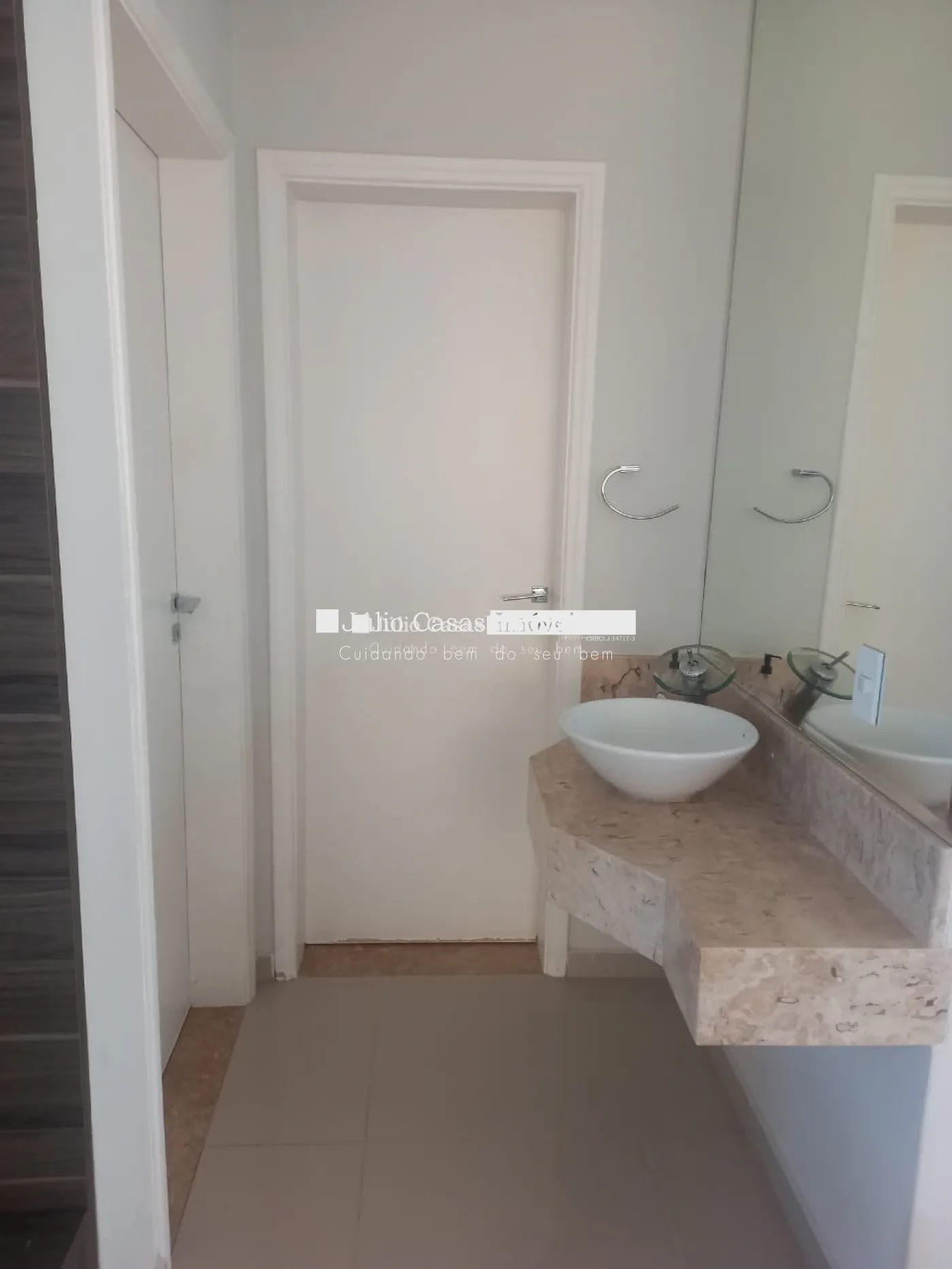 Casa à venda em condomínio no Residencial Sunlake Esta elegante residência oferece: 3 suítes espaçosas, com destaque para uma delas, que conta com área adicional para um closet. Sala e cozinha gourmet integradas, ambas com piso em porcelanato de primeira linha. Cozinha gourmet equipada com churrasqueira e ilha, ideal para receber amigos e familiares. Lavabo. Quintal com piscina, ducha e lavanderia. Entrada de serviço independente. Iluminação em LED e teto com acabamento em gesso. Banheiros sofisticados, com cubas esculpidas, box em vidro e nicho. Garagem coberta para 2 veículos. Infraestrutura para ar condicionado pronta e aquecedor solar. Uma casa perfeita para quem busca conforto e sofisticação em um excelente condomínio.