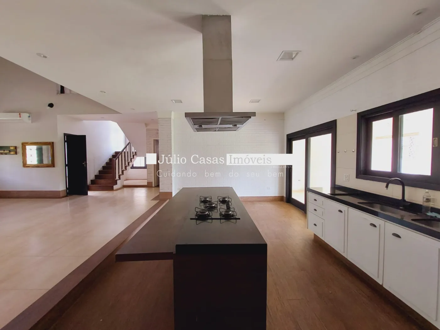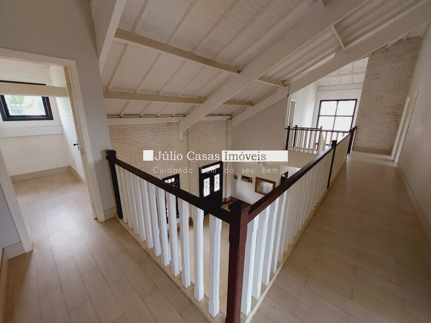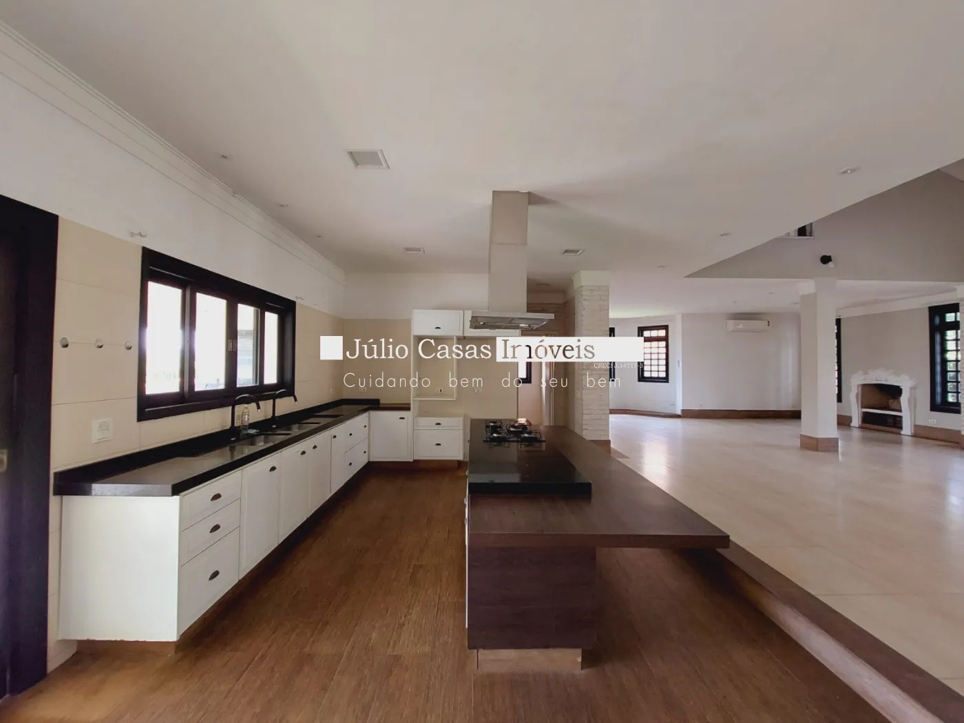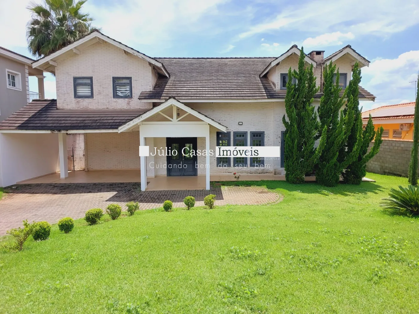 Excelente imóvel com padrão de construção diferenciado, com tijolinhos aparentes, acabamento de ótima qualidade. Casa com ótima iluminação, portas de vidro, telhado em madeira, espaço amplo entre as salas!! Sala 3 ambientes integrada , lareira com a cozinha modulada com uma ampla ilha, lavabo. São 5 suítes , quarto de hóspedes, sala de tv, sala lareira, de estar, escritório, home theater, cozinha, despensa, lavanderia, dependência de empregada!