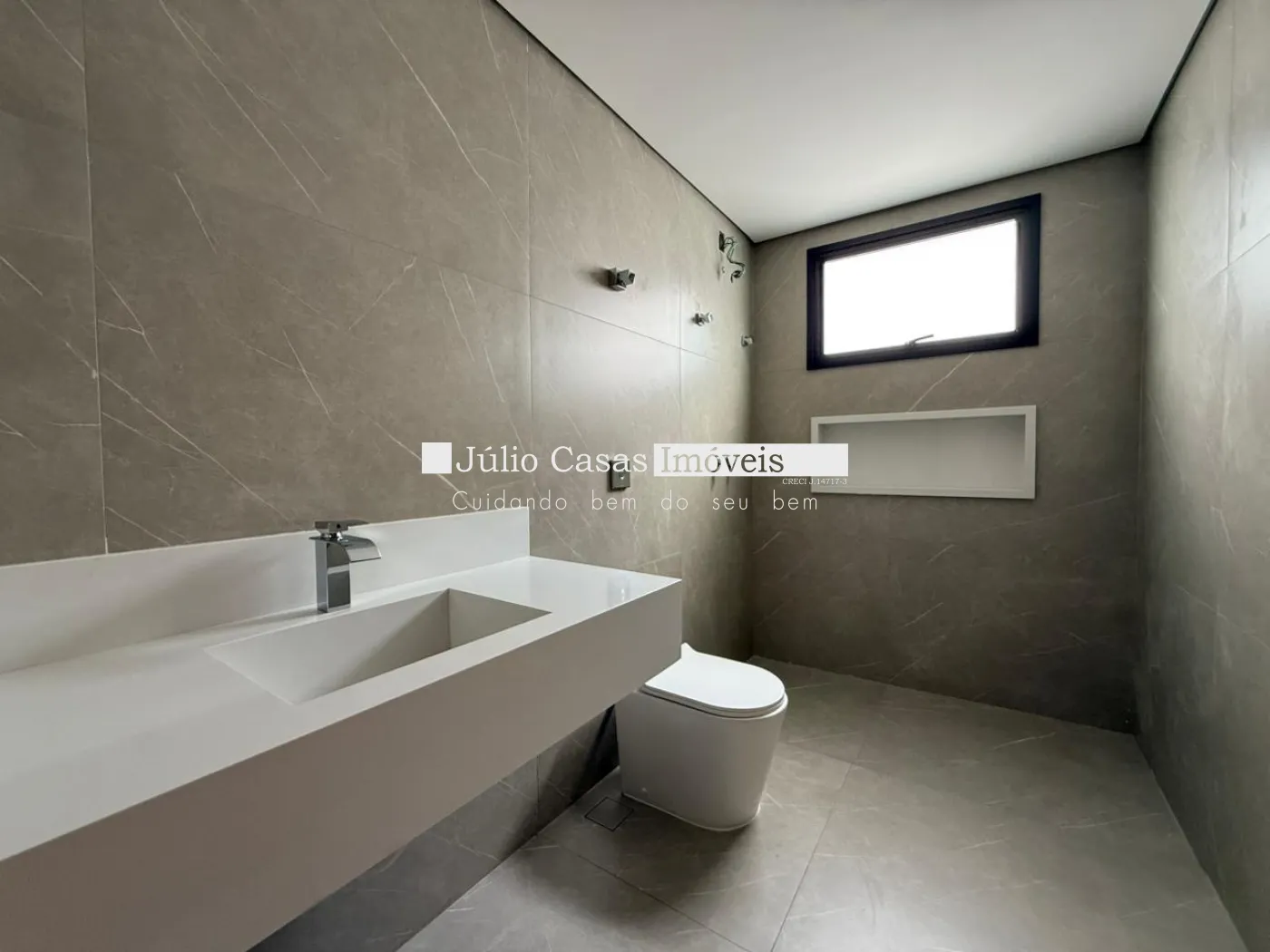 5 suítes amplas sendo uma máster com banheira com vista para a mata verde, todos os quartos com ponto para ar condicionado.