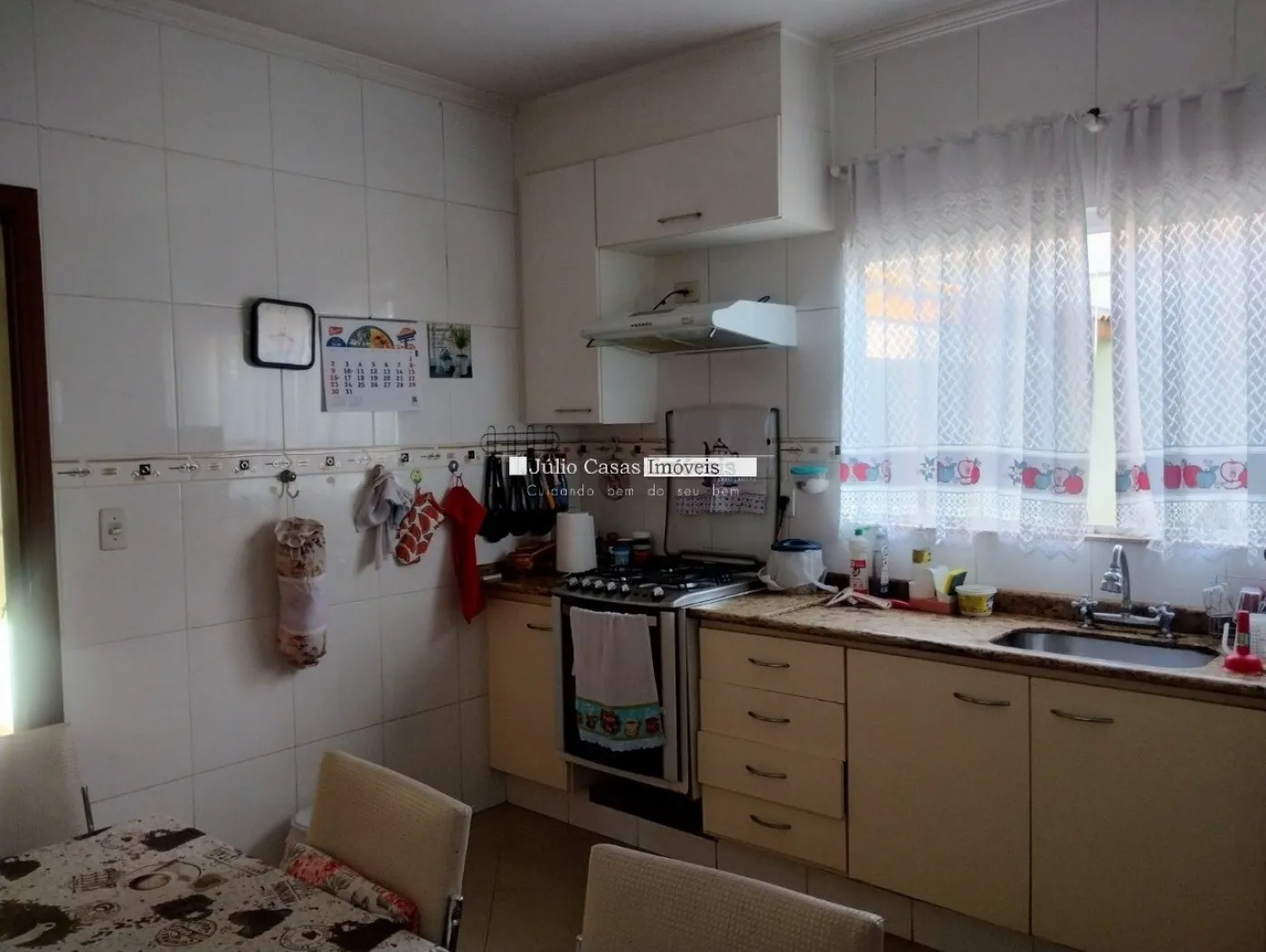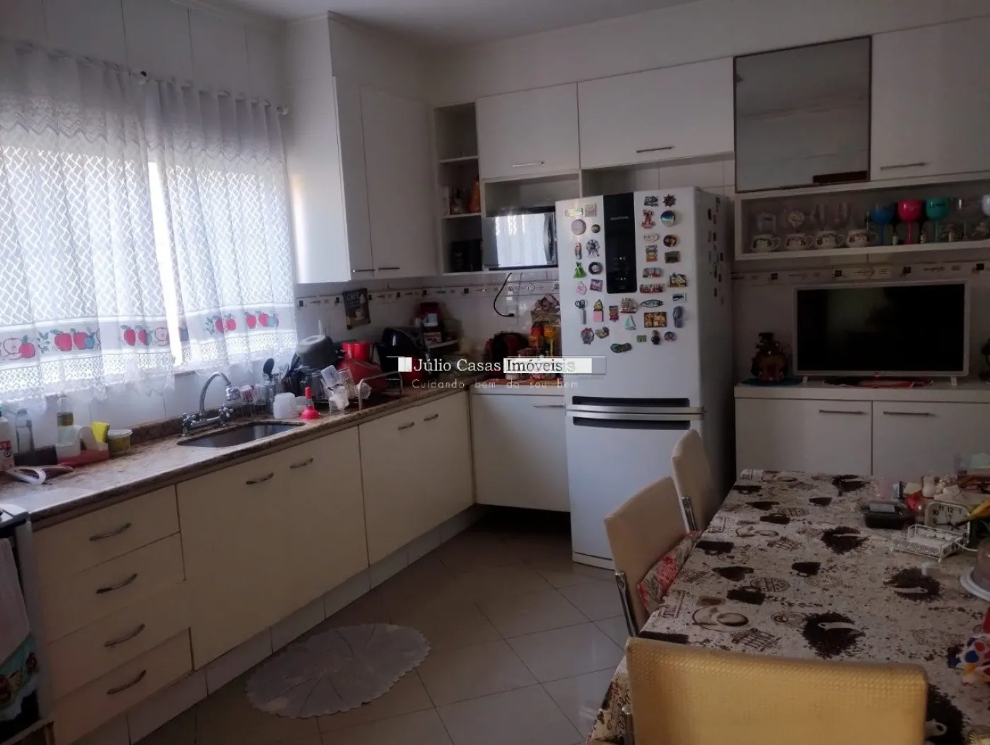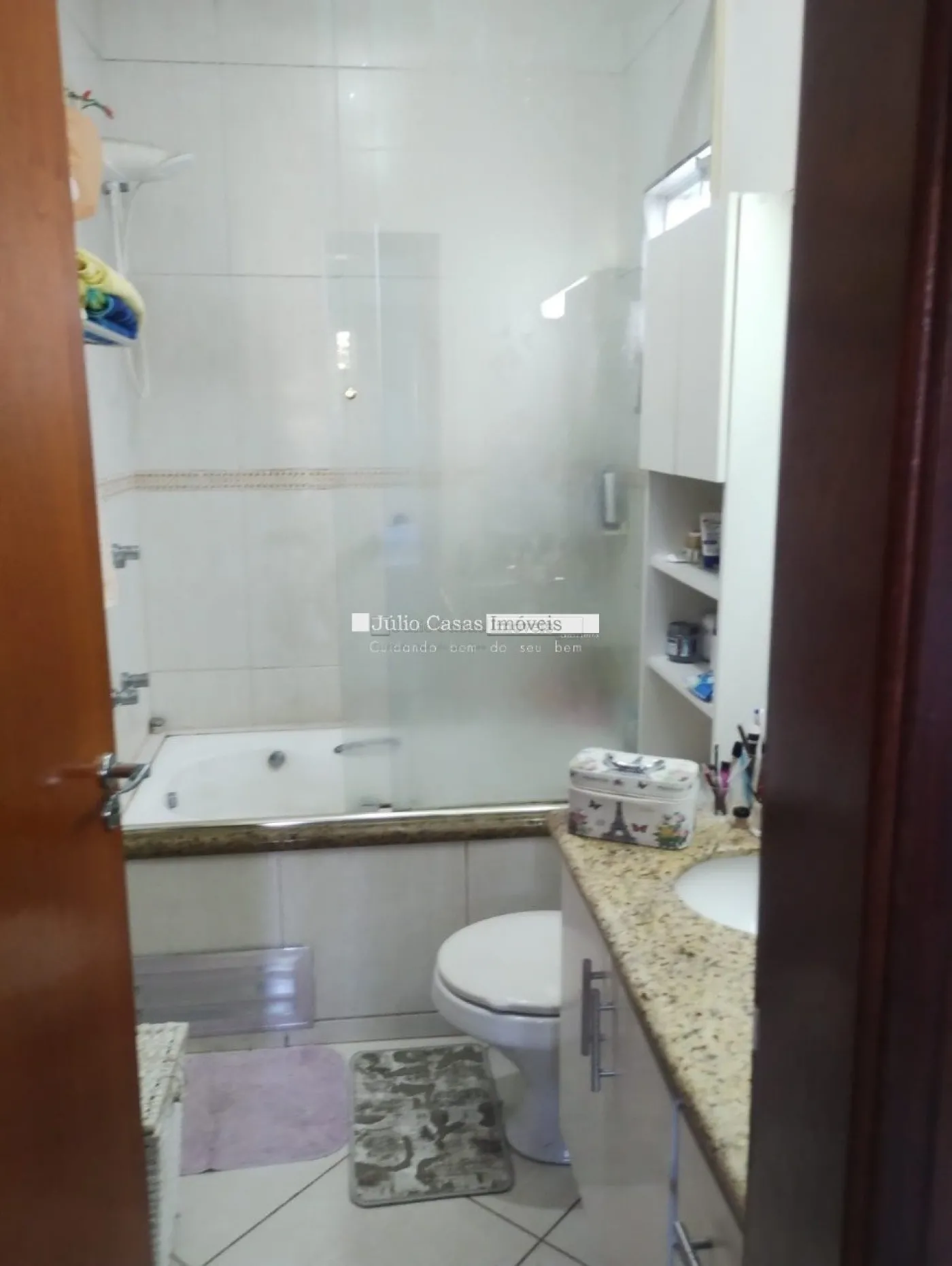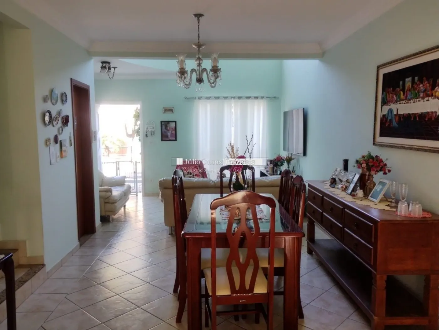 Sobrado com 2 salas integradas (estar e jantar) e cozinha ampla com armários planejados. O imóvel possui lavabo, quarto de despejo e 3 dormitórios com armários planejados, sendo 1 suíte com hidromassagem.