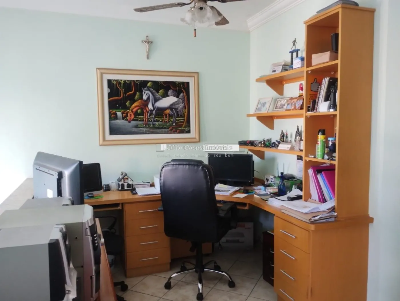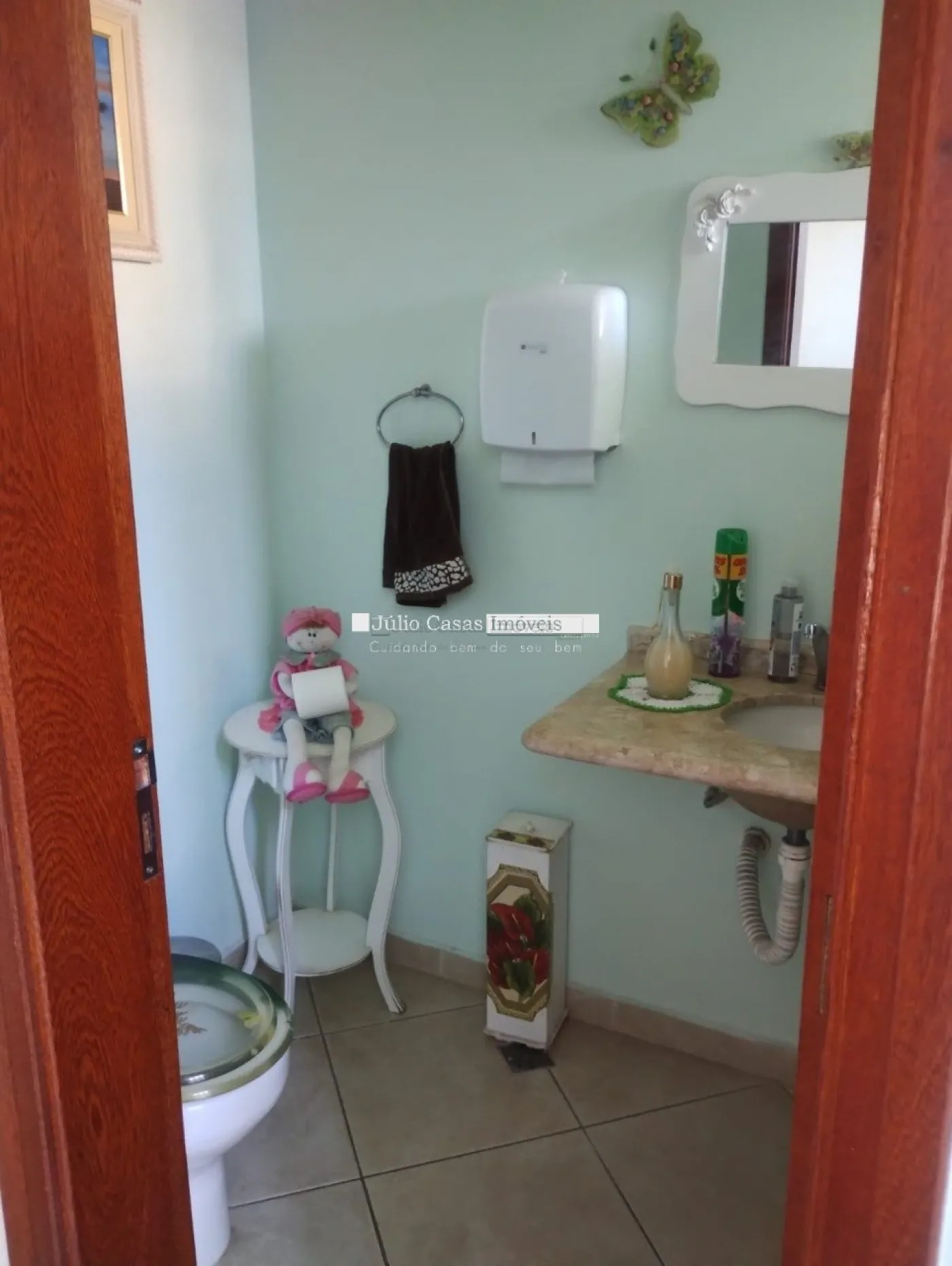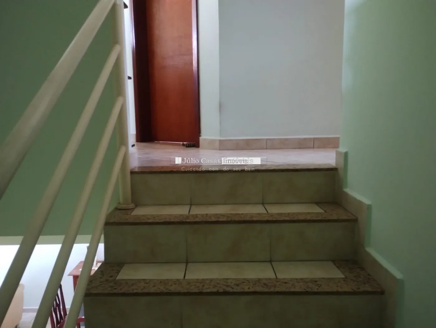 Sobrado com 2 salas integradas (estar e jantar) e cozinha ampla com armários planejados. O imóvel possui lavabo, quarto de despejo e 3 dormitórios com armários planejados, sendo 1 suíte com hidromassagem.
