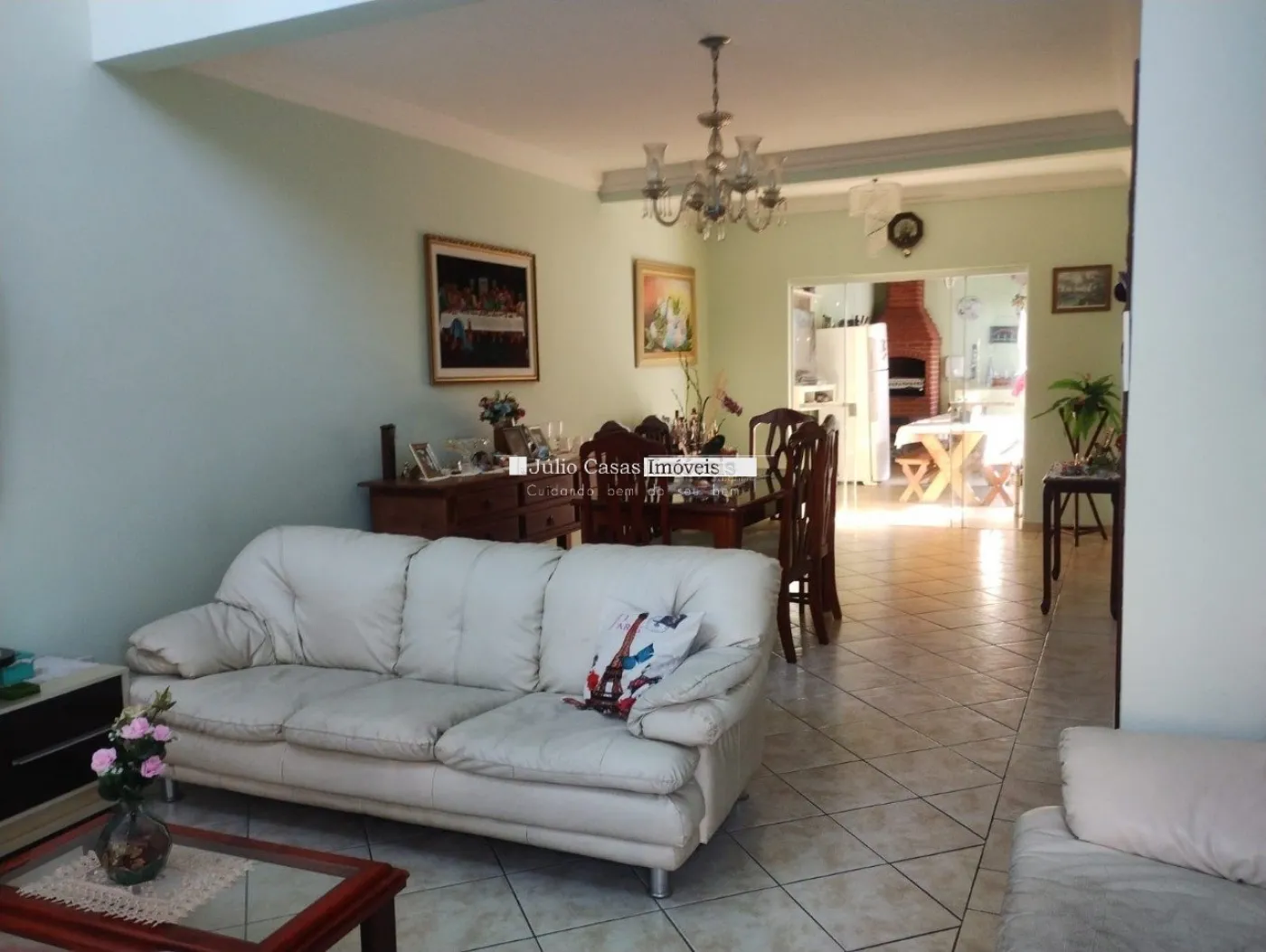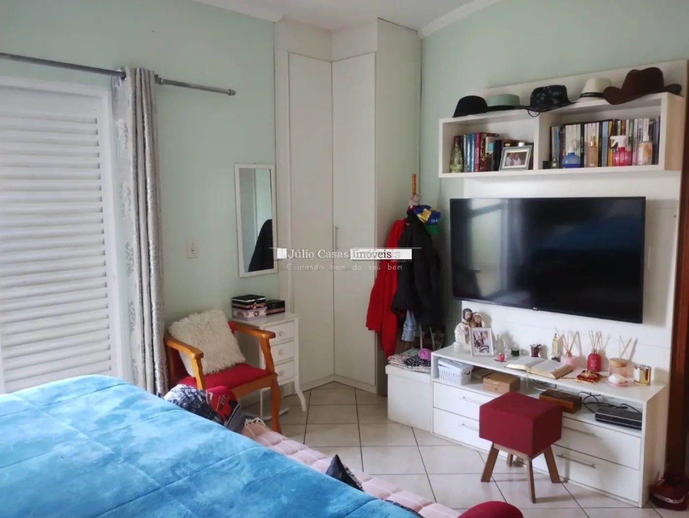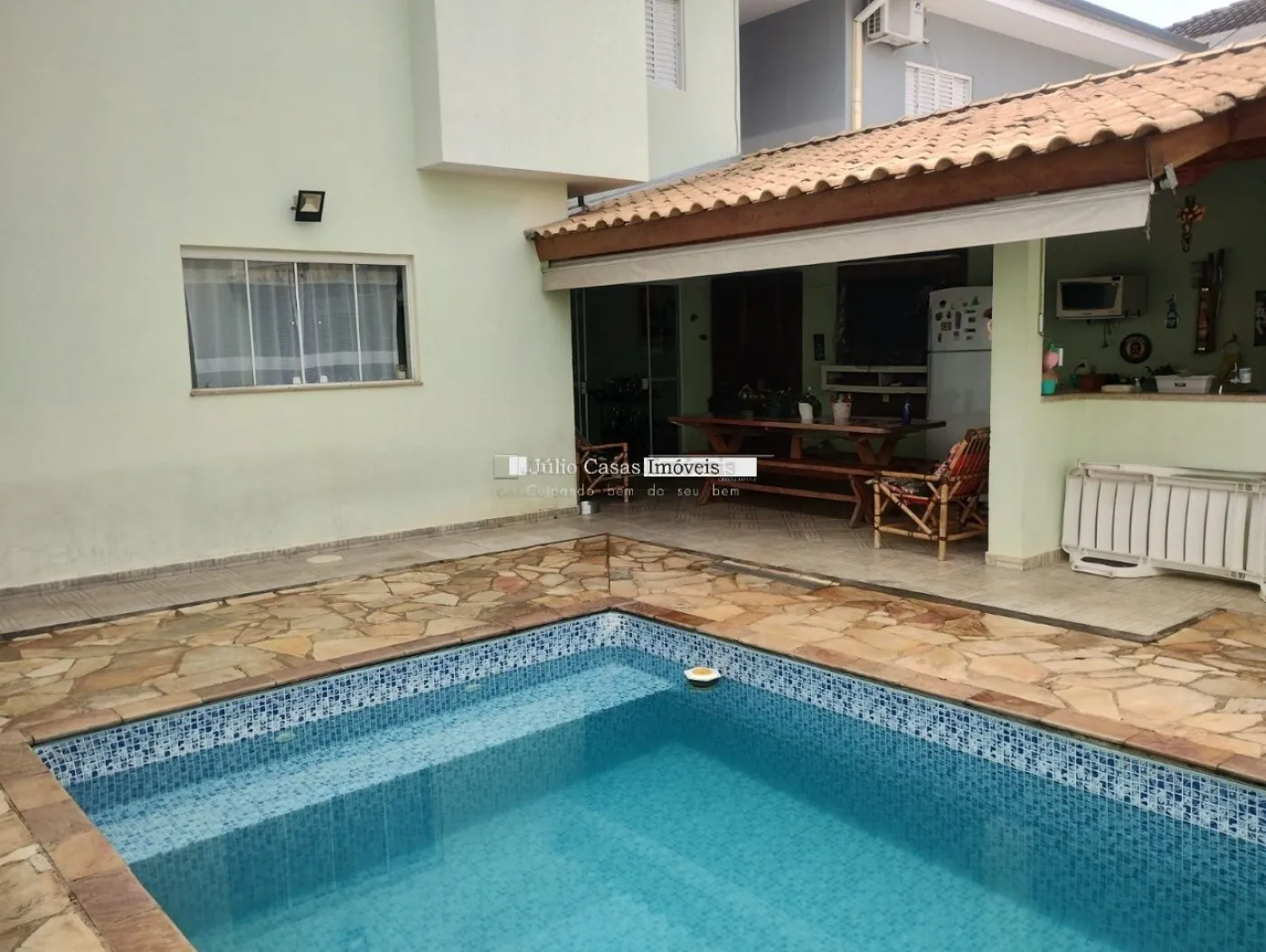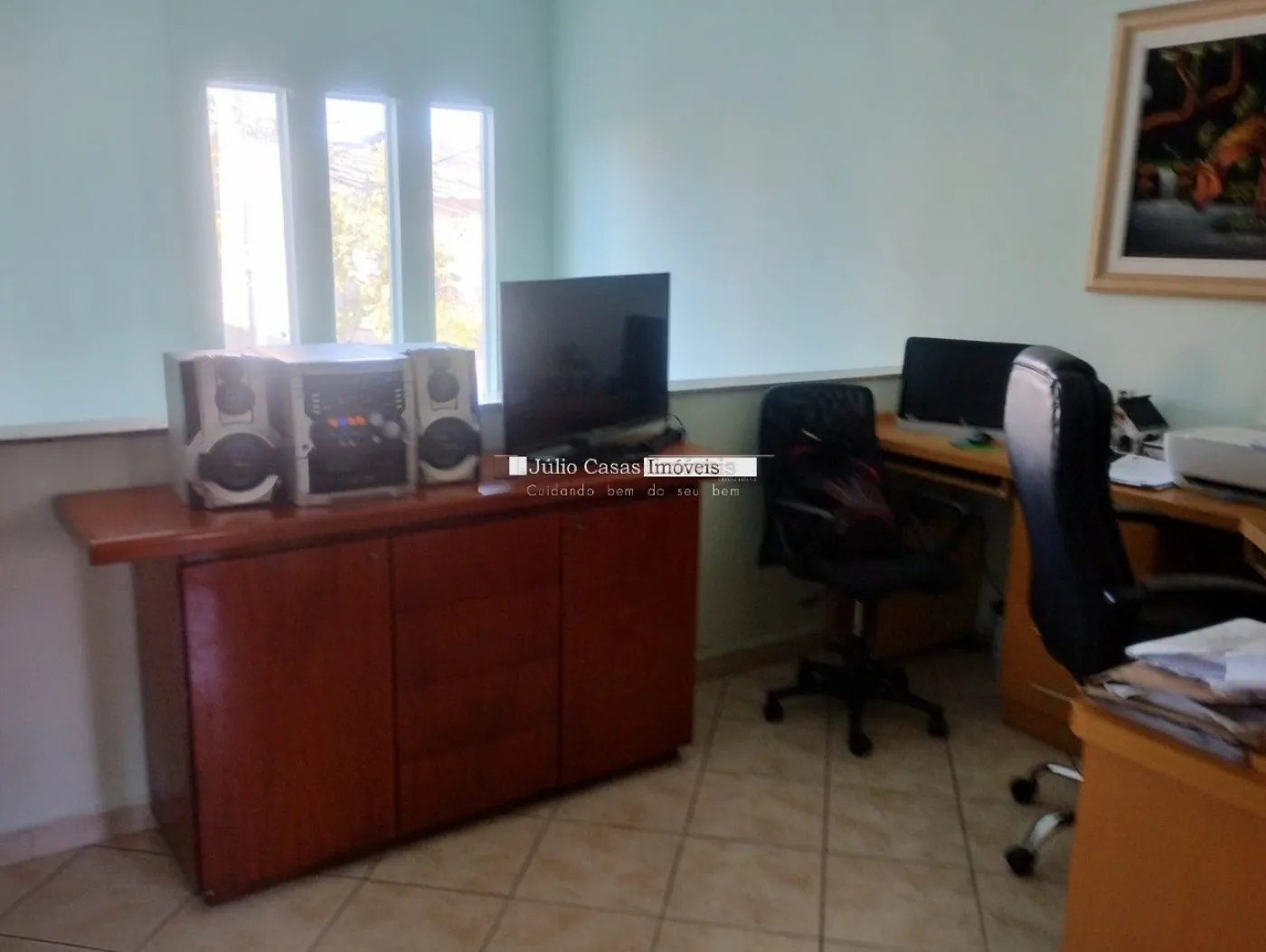 Sobrado com 2 salas integradas (estar e jantar) e cozinha ampla com armários planejados. O imóvel possui lavabo, quarto de despejo e 3 dormitórios com armários planejados, sendo 1 suíte com hidromassagem.