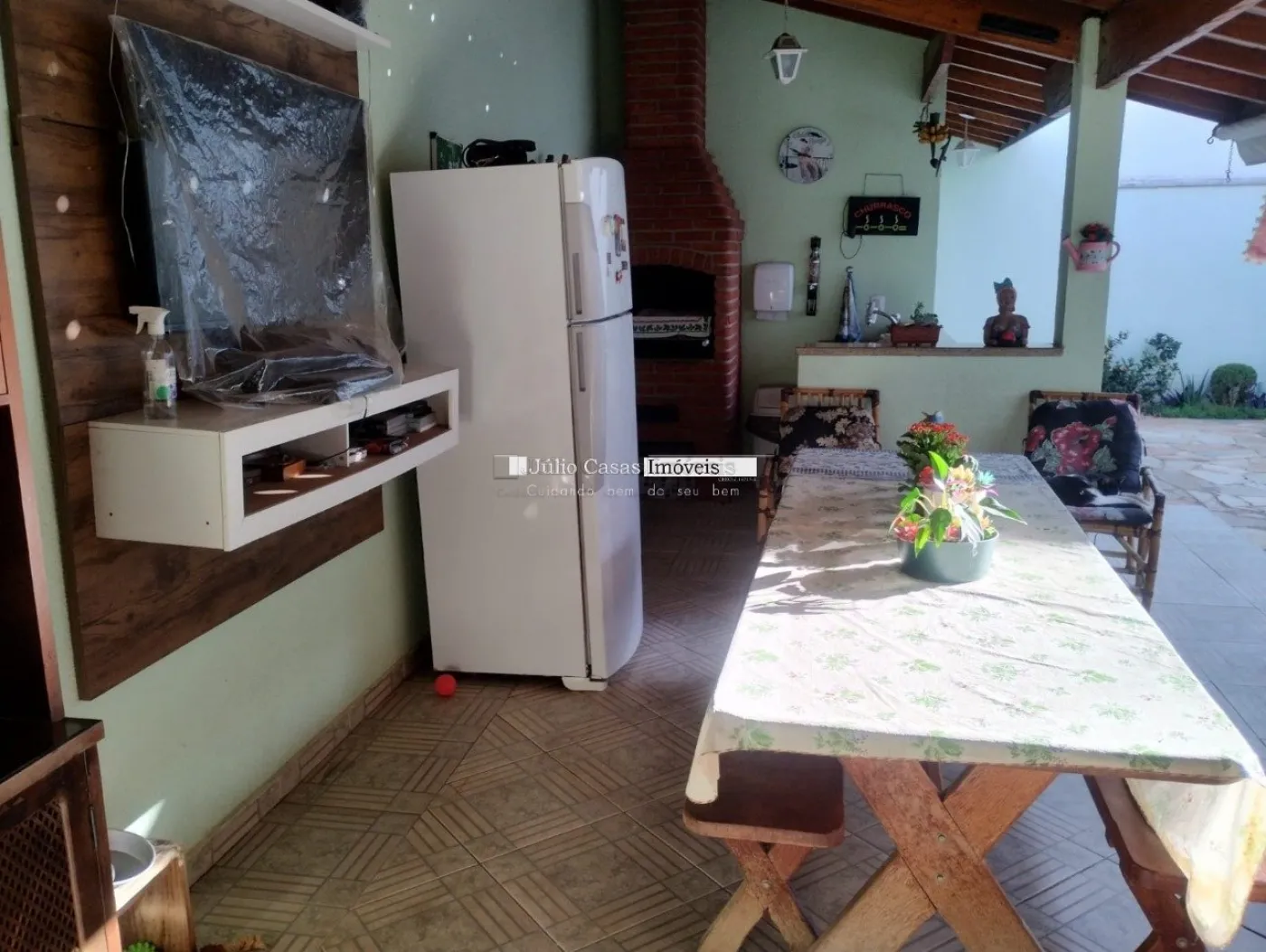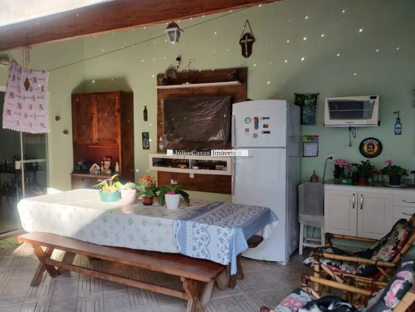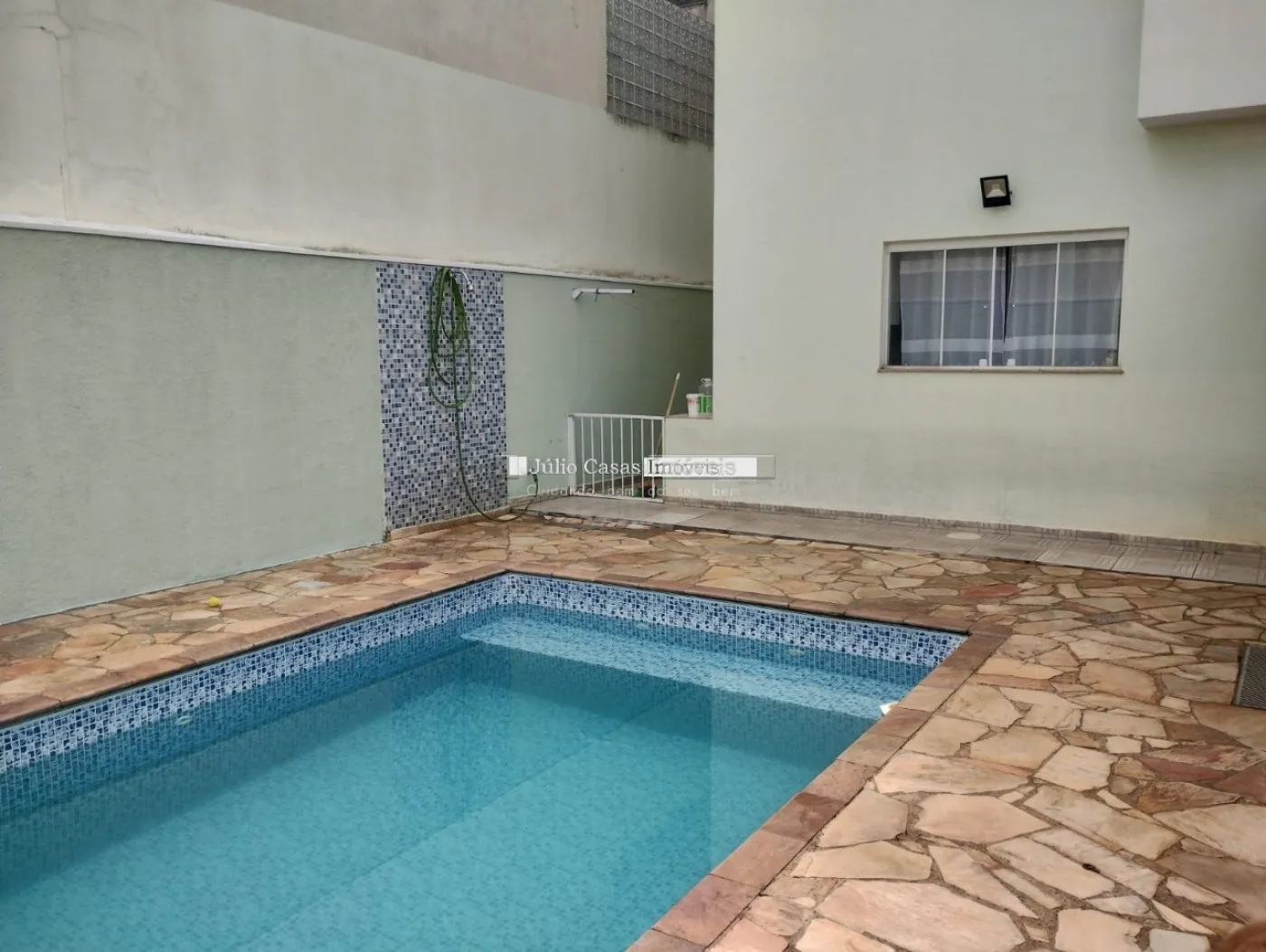 A área gourmet é completa, com piscina e banheiro. Toda a casa é revestida em piso cerâmico. A garagem oferece 4 vagas, sendo 2 cobertas.