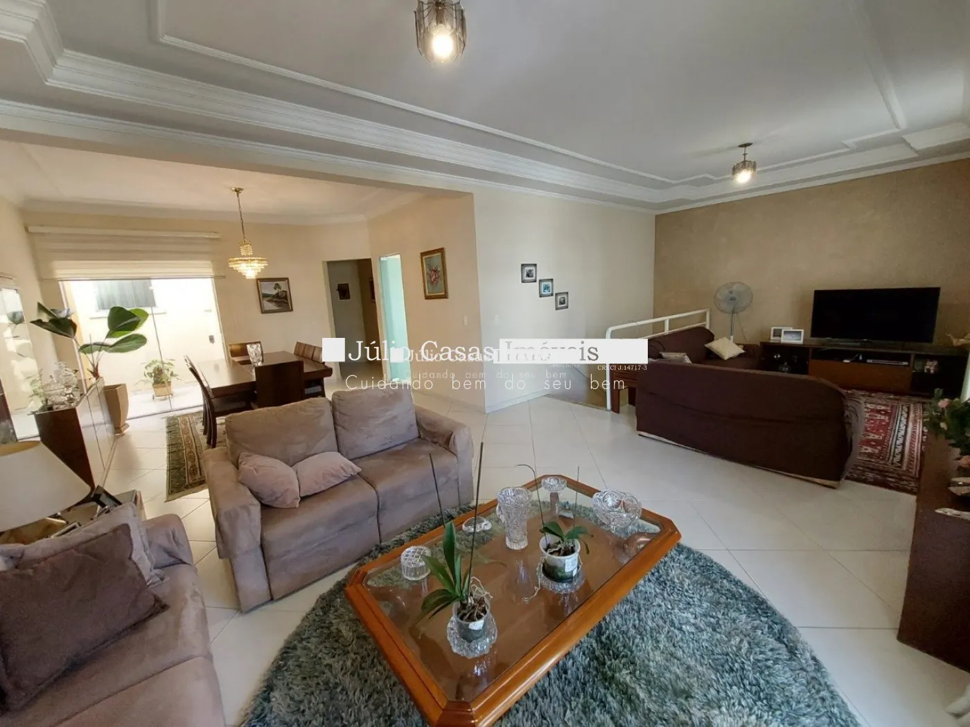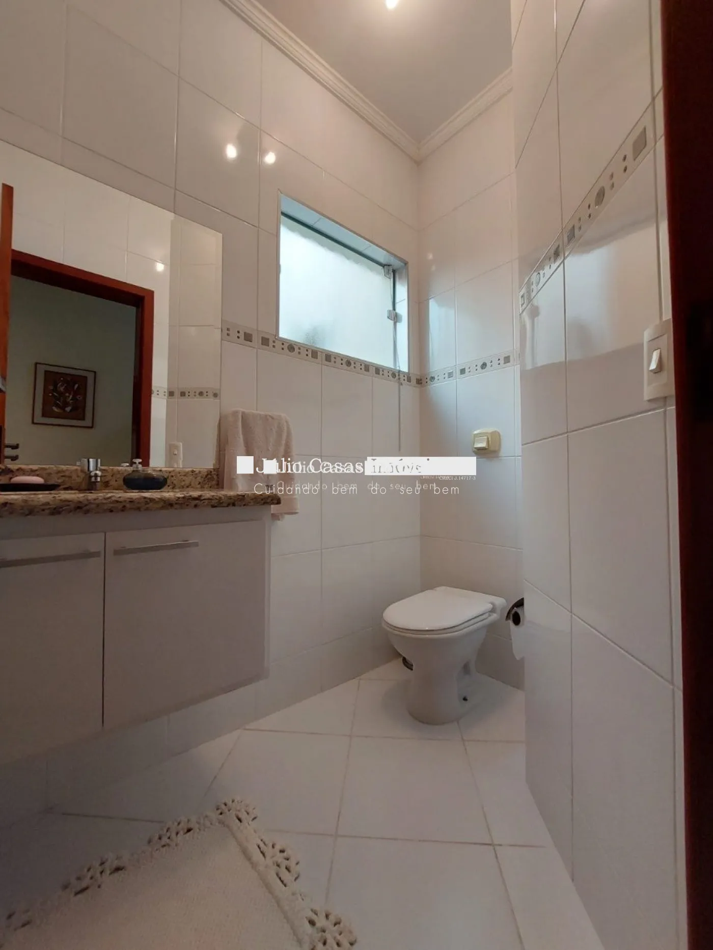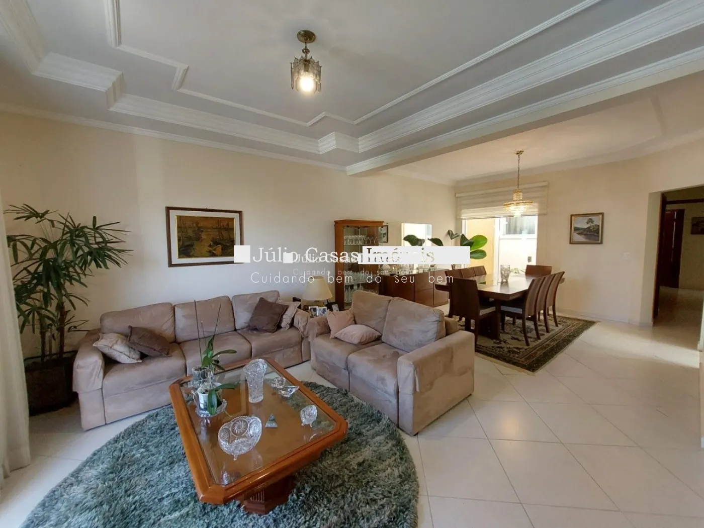 Casa com sala 3 ambientes com varanda, lavabo, cozinha modulada, edícula com wc, quarto, lavanderia e churrasqueira com pia de apoio, 3 suítes 1 sendo máster, todas moduladas, aquecedor solar, garagem para 4 veículos sendo 2 cobertos e escritório .