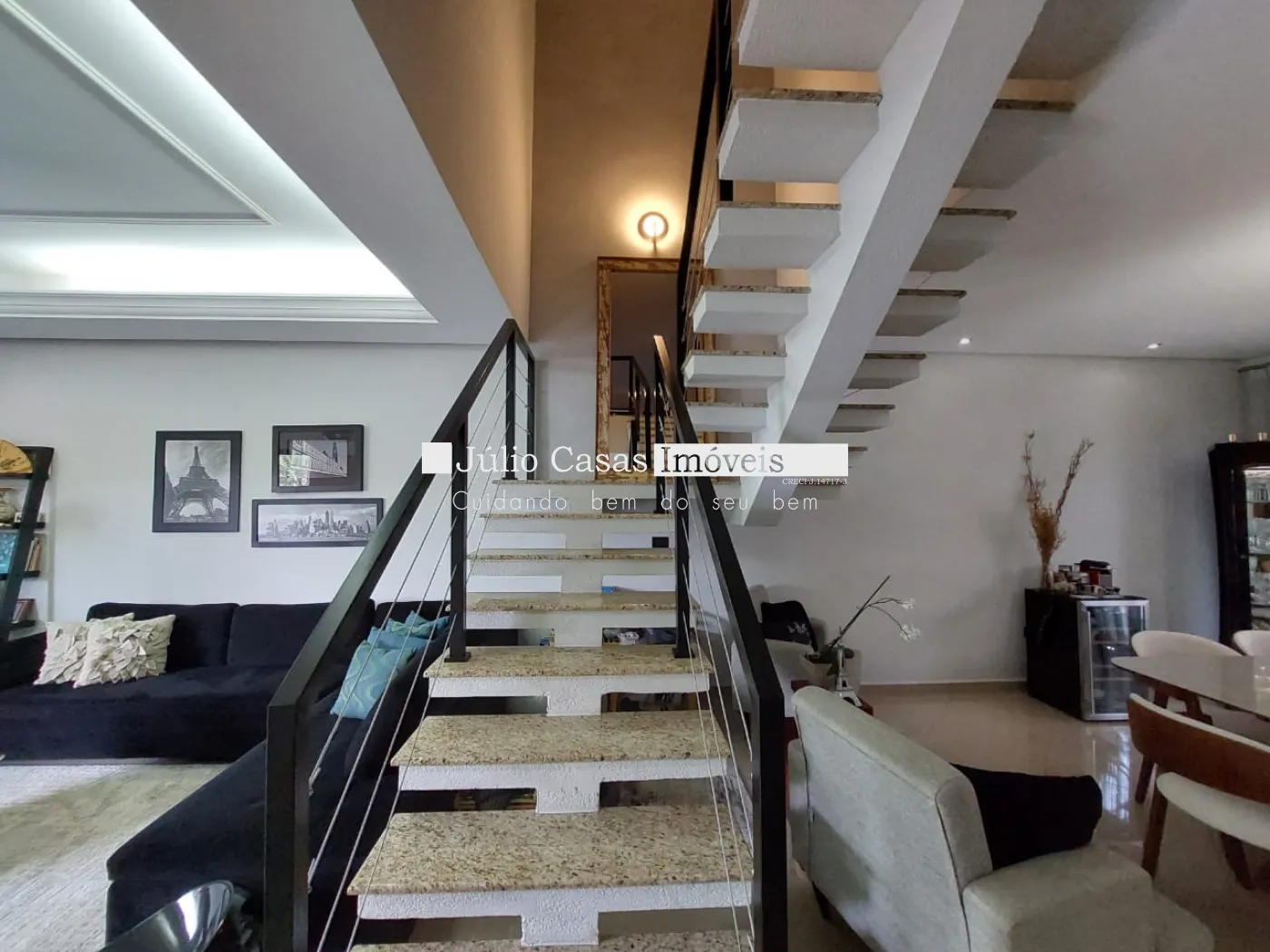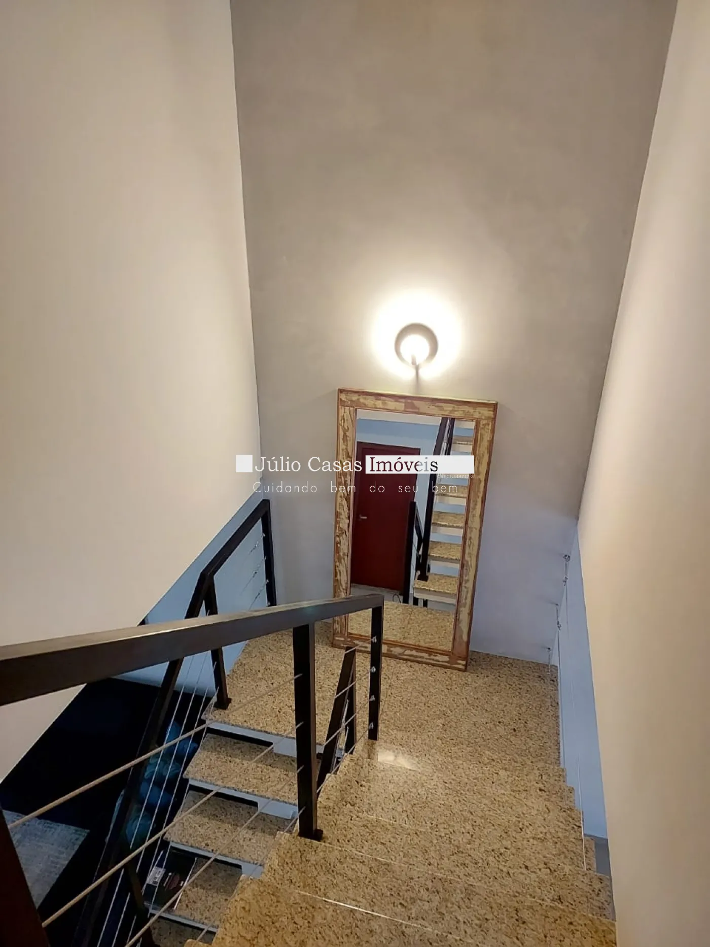 No andar superior, você encontrará três suítes espaçosas, sendo uma delas a suíte máster, que inclui uma ampla varanda, closet e hidromassagem. Todos os quartos têm armários modulados e piso laminado, garantindo conforto e elegância. As escadas são revestidas em granito, conferindo um toque de requinte ao ambiente.