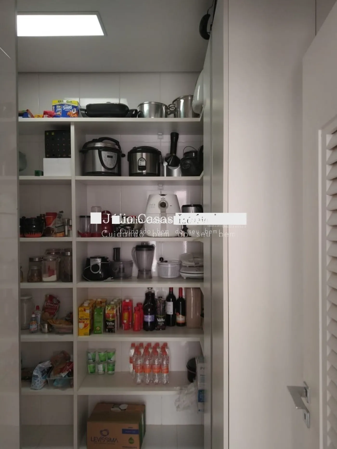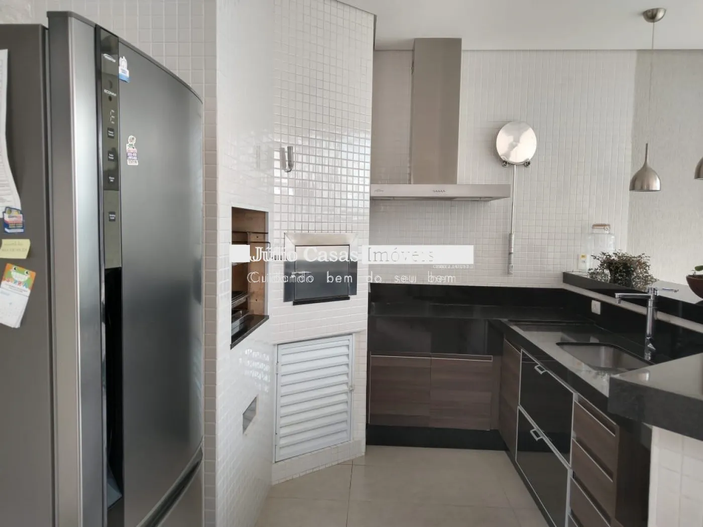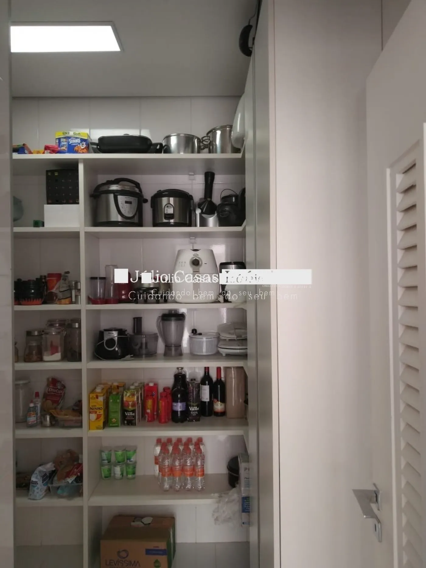 Suítes com varandas e duas cubas nos wc. Área gourmet com piscina, 2 wc, depósito, sauna, churrasqueira com pia de apoio e coifa, cozinha toda modulada e mobiliada. Garagem para 3 veículos cobertos e 3 descobertos.