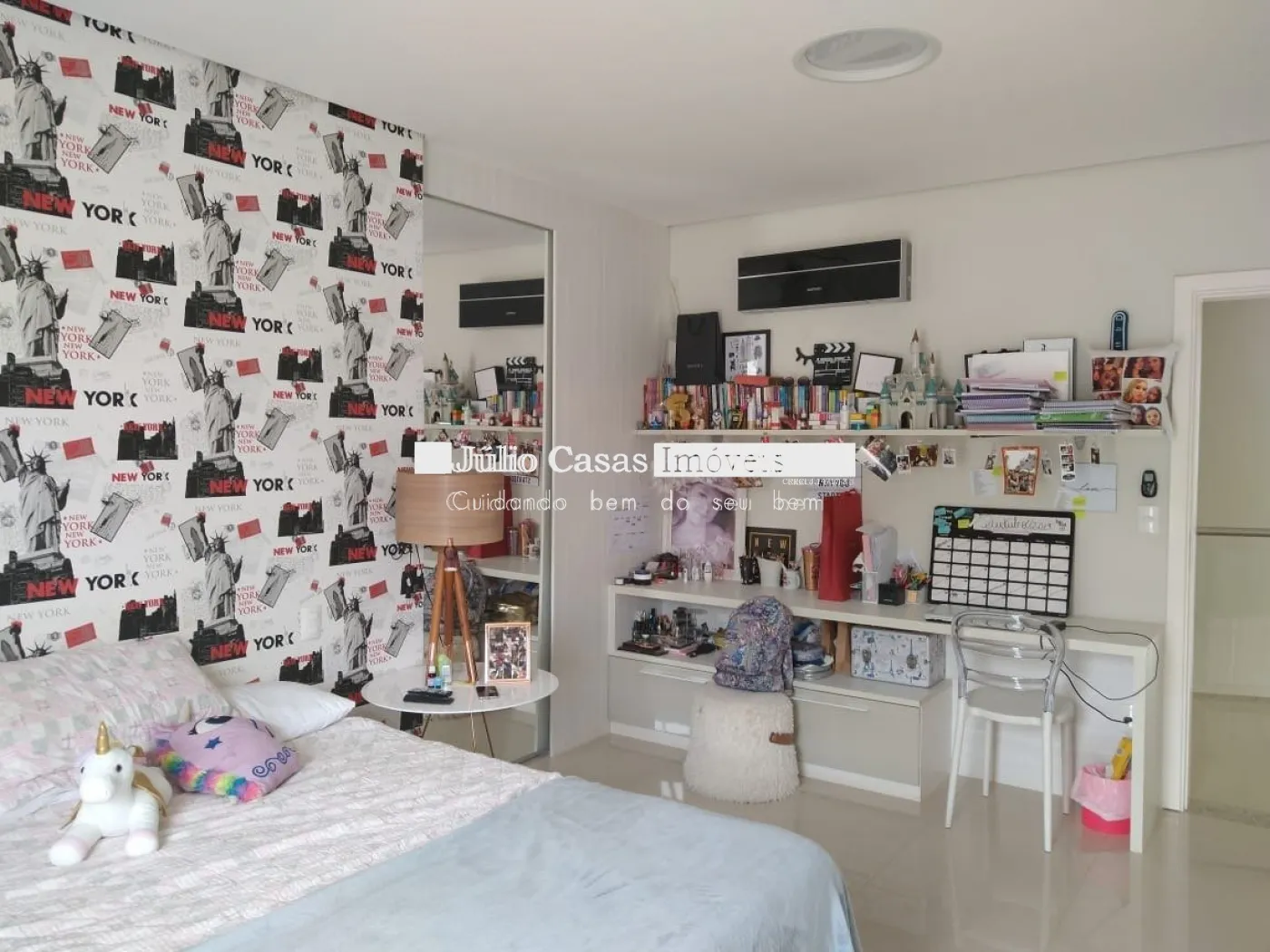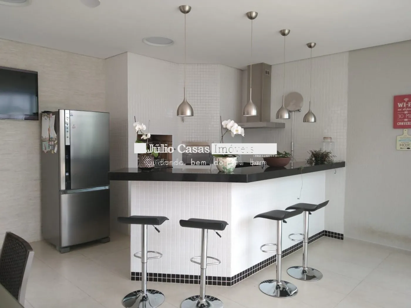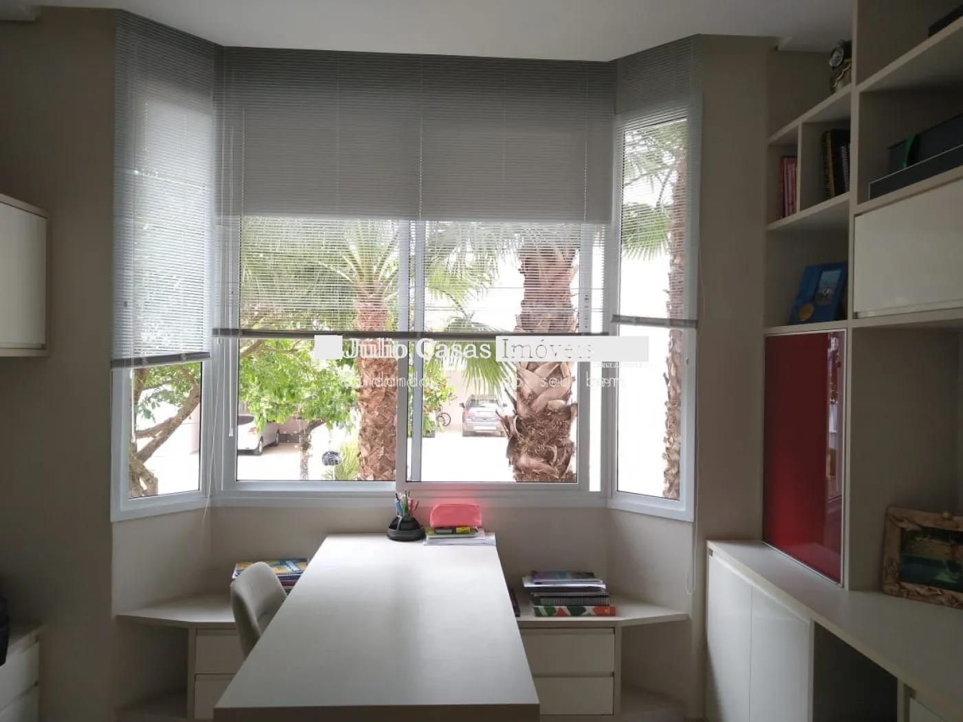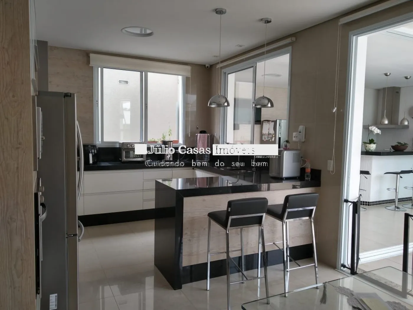 Suítes com varandas e duas cubas nos wc. Área gourmet com piscina, 2 wc, depósito, sauna, churrasqueira com pia de apoio e coifa, cozinha toda modulada e mobiliada. Garagem para 3 veículos cobertos e 3 descobertos.