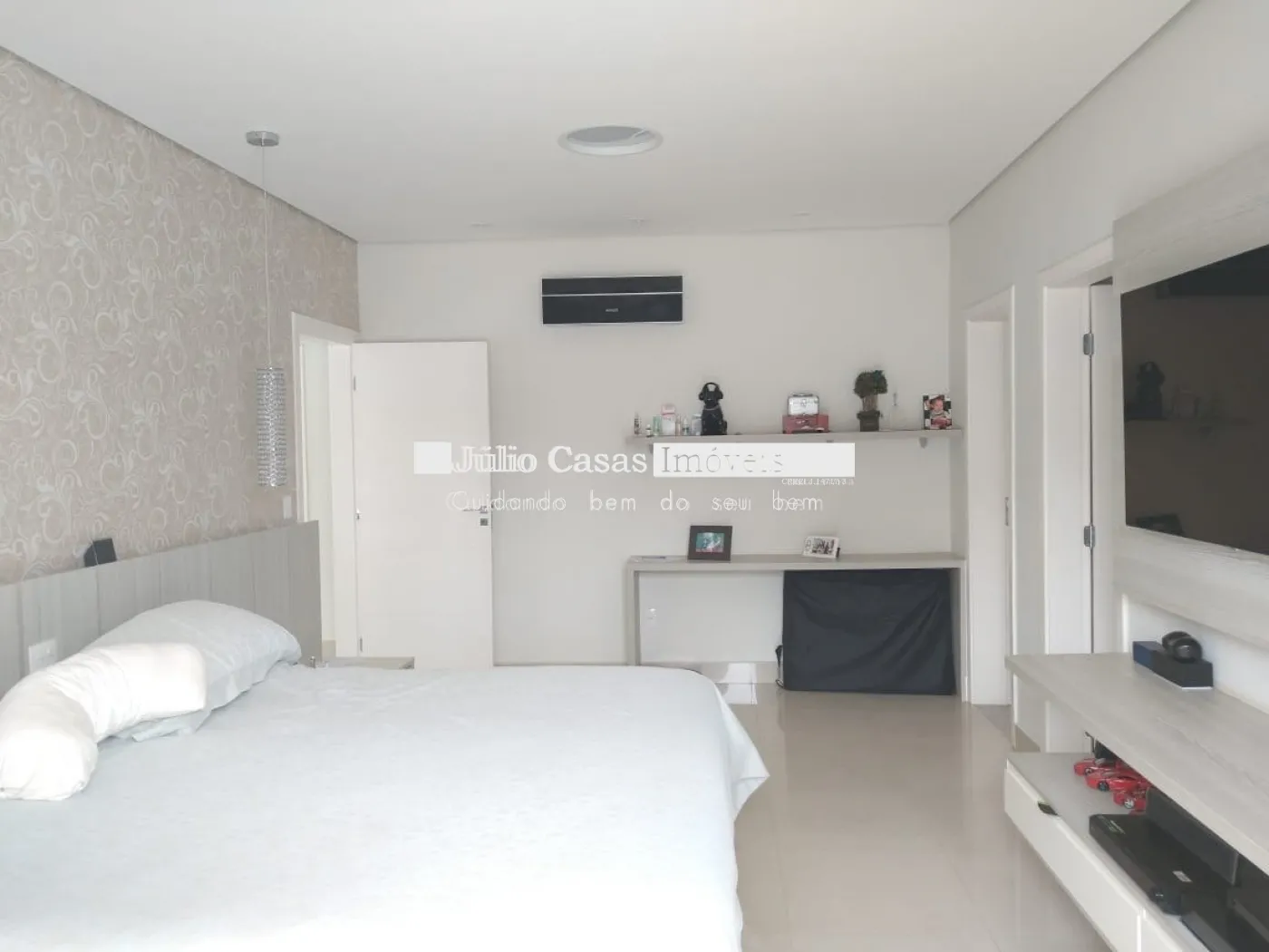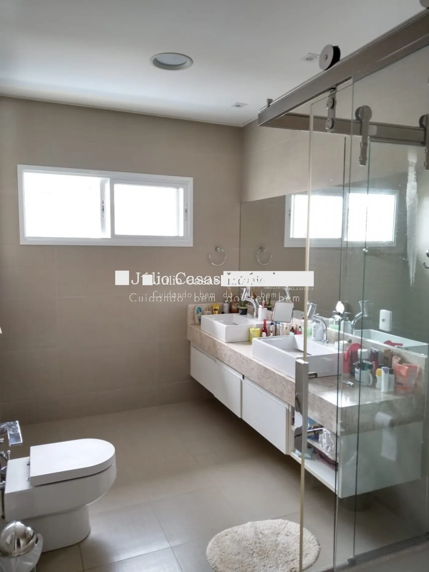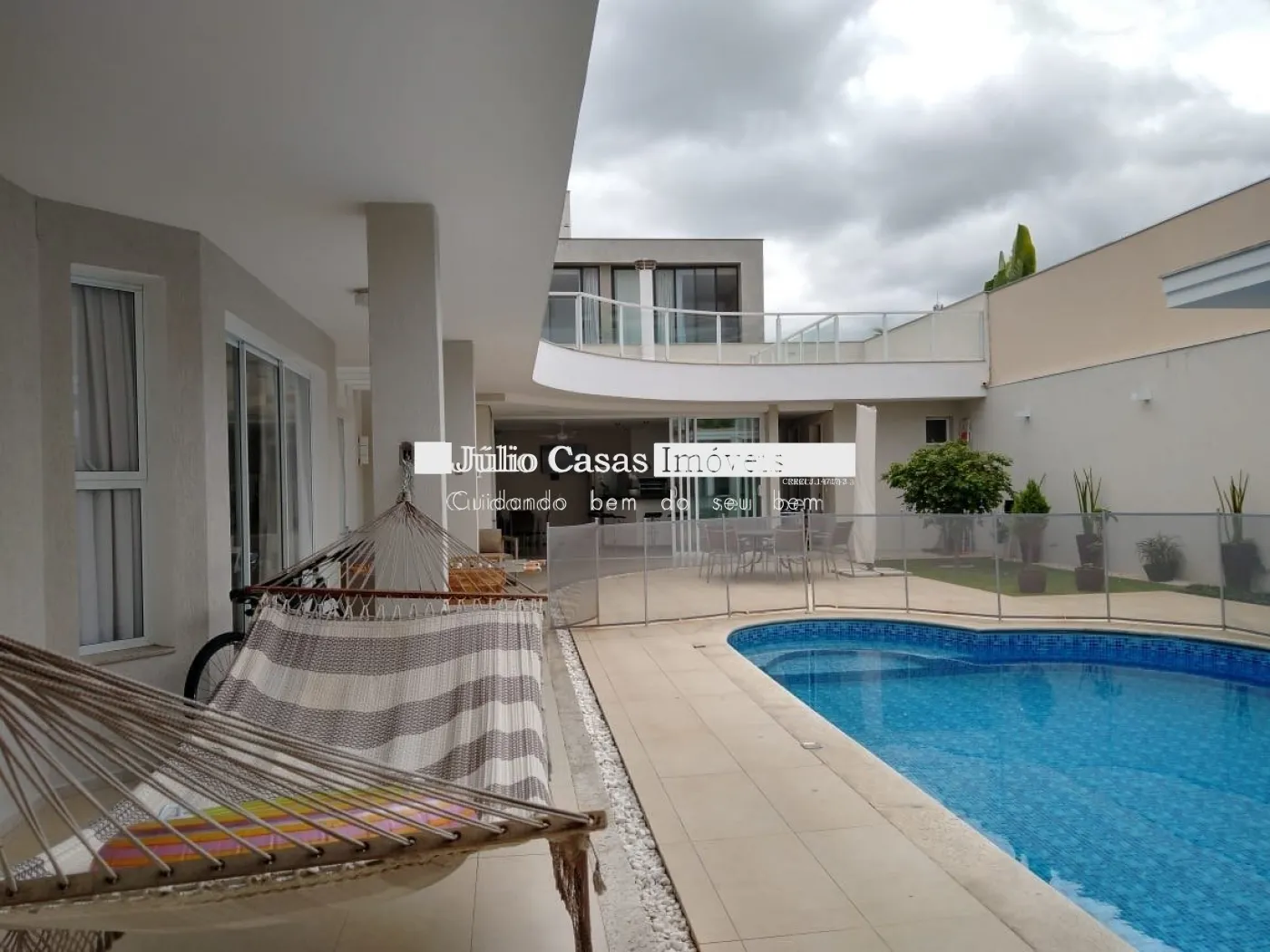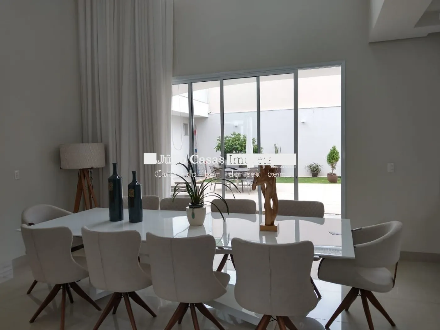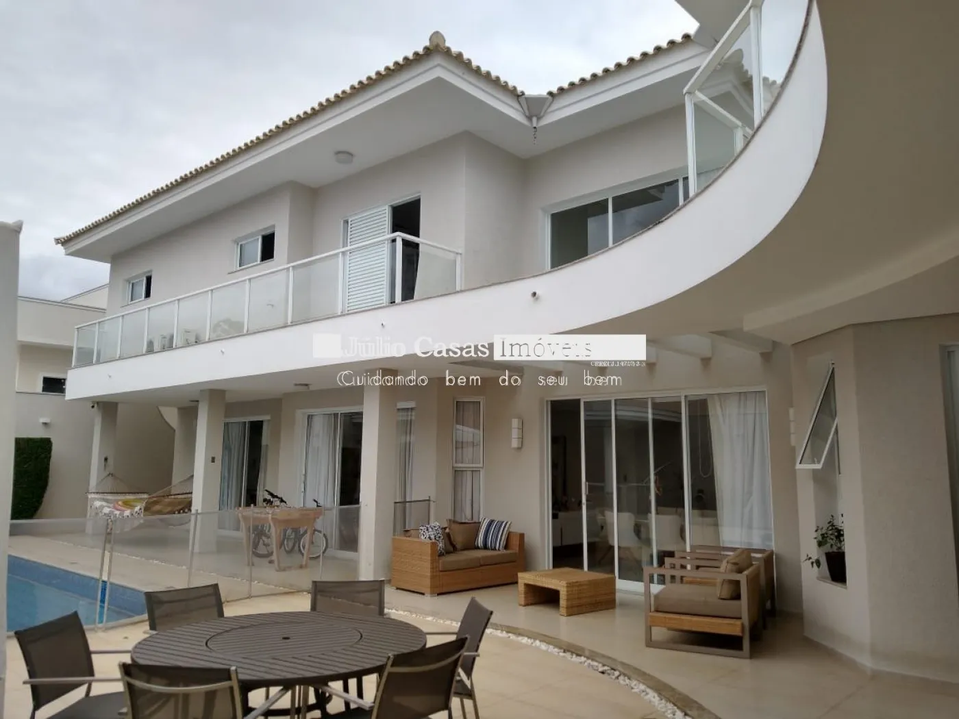 Casa modulada com sala 3 ambientes com pé direito 6 metros, integrada com a área gourmet com portas em alumínio branco e vidro temperado, proporcionando amplitude no ambiente, escritório com lavabo, 4 suítes uma sendo máster com varanda, hidro e duas duchas com duas cubas, toda em acabamento em porcelanato e gesso com closet.