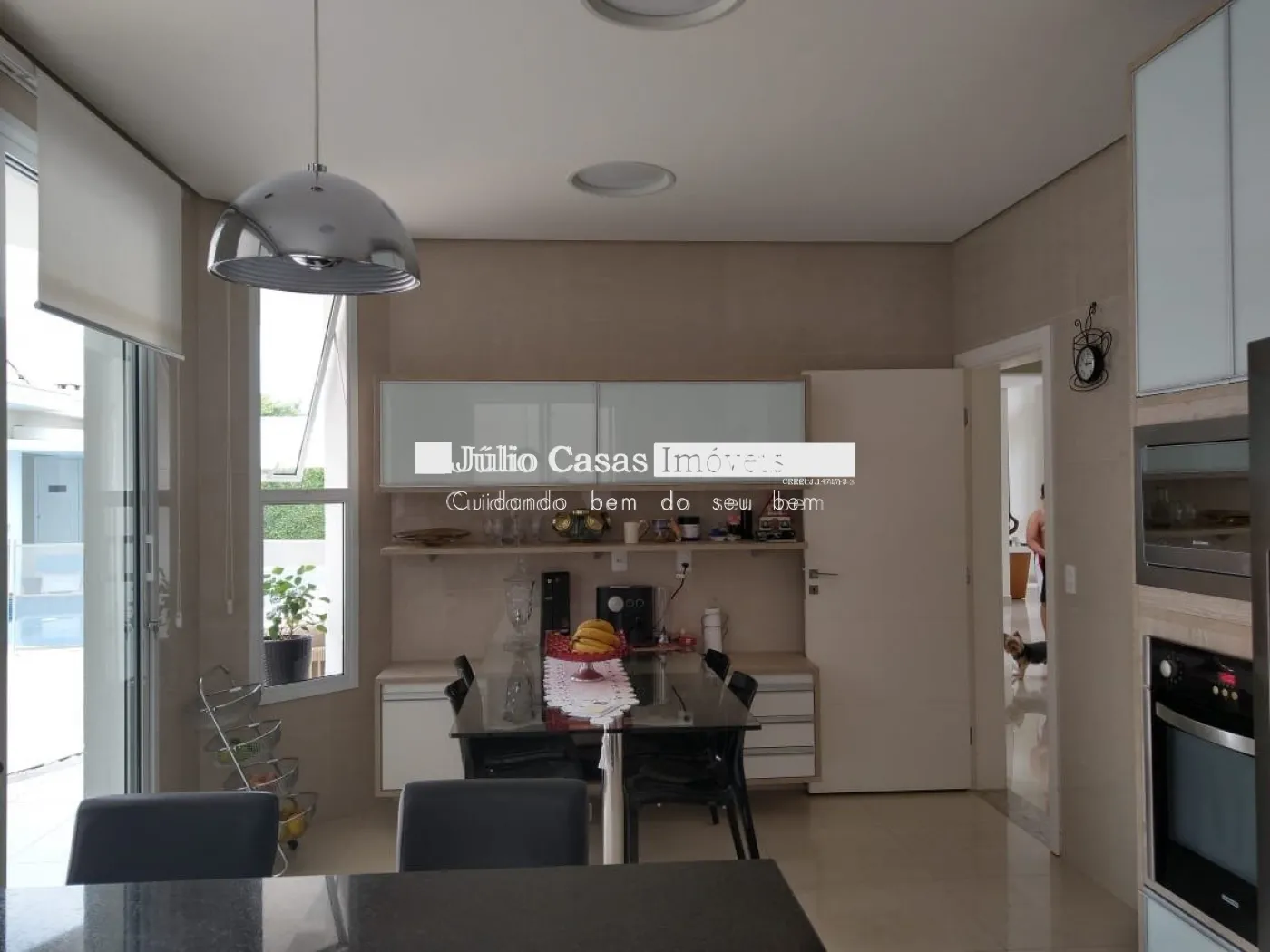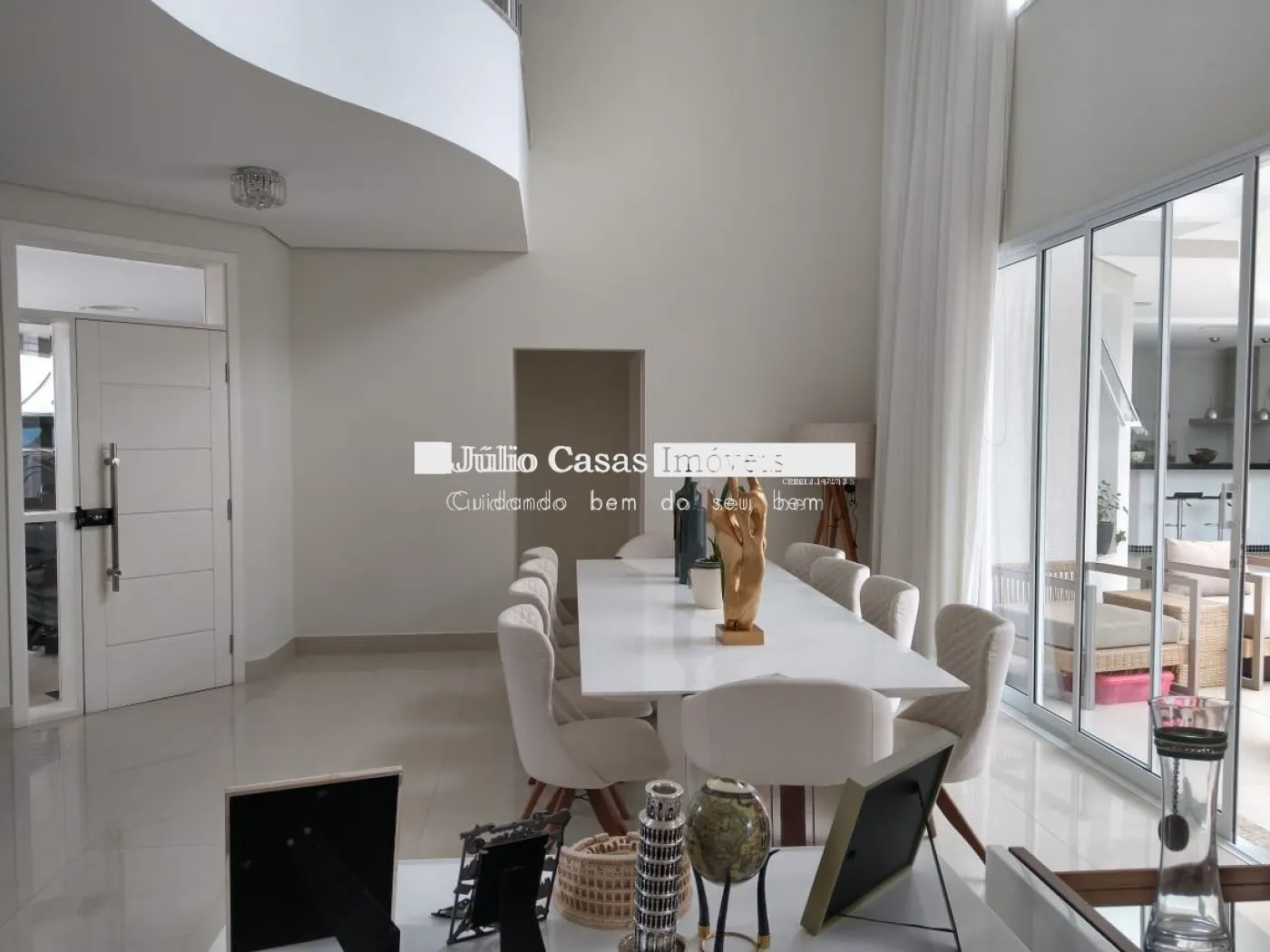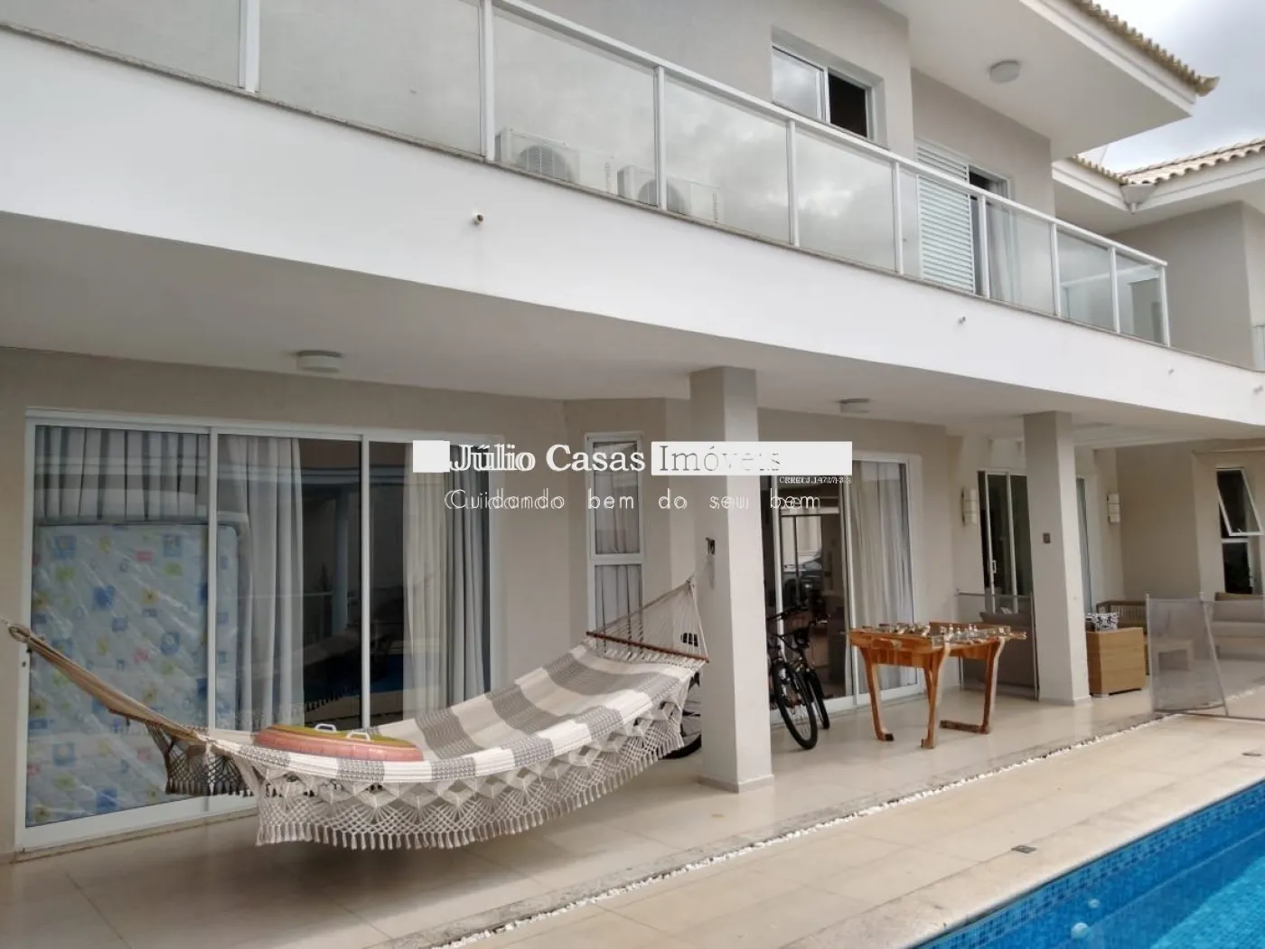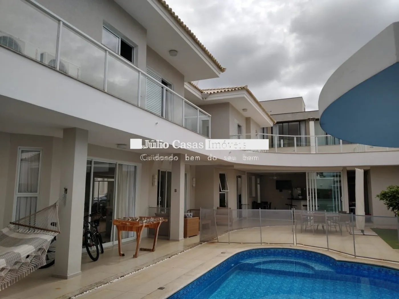 Casa modulada com sala 3 ambientes com pé direito 6 metros, integrada com a área gourmet com portas em alumínio branco e vidro temperado, proporcionando amplitude no ambiente, escritório com lavabo, 4 suítes uma sendo máster com varanda, hidro e duas duchas com duas cubas, toda em acabamento em porcelanato e gesso com closet.